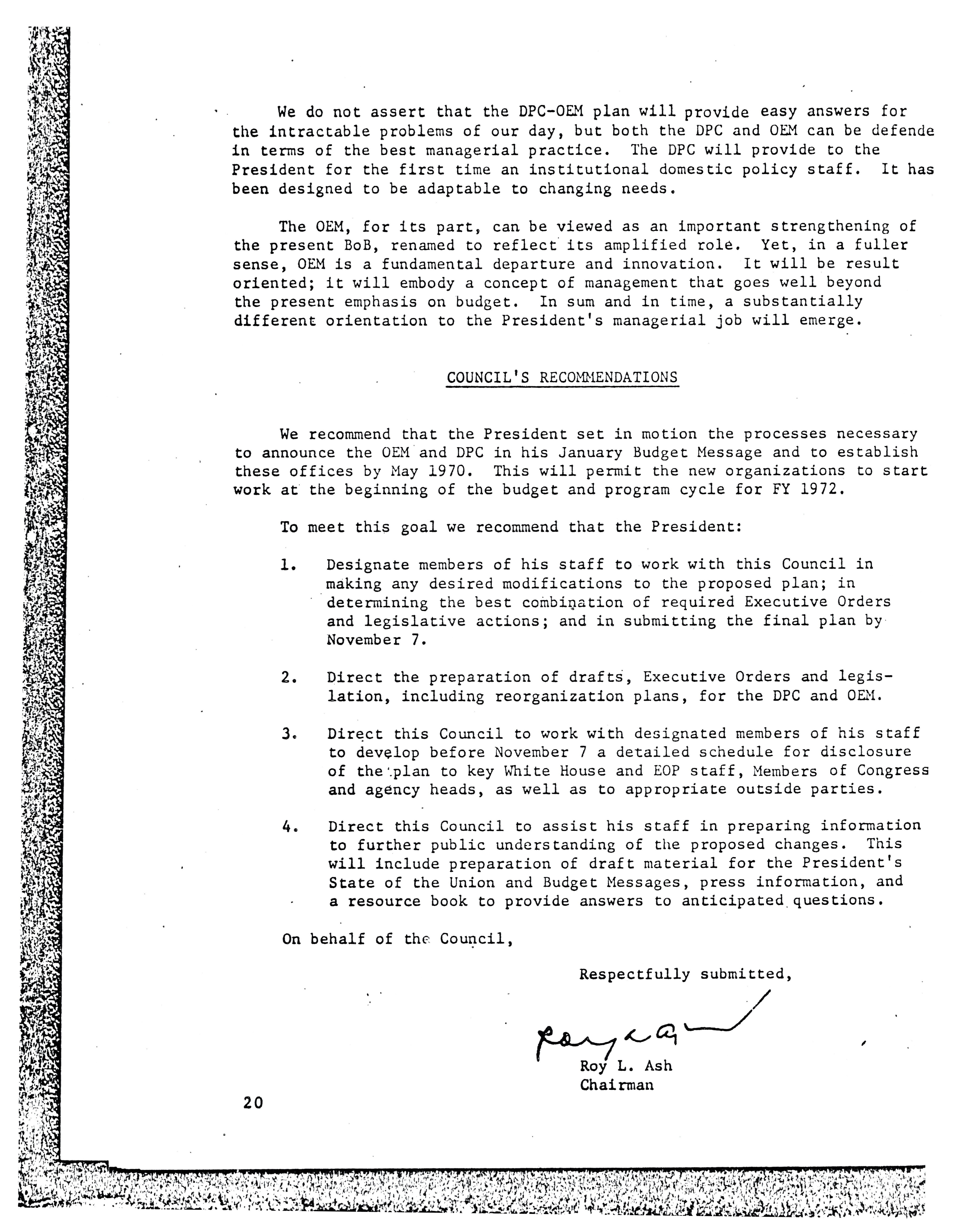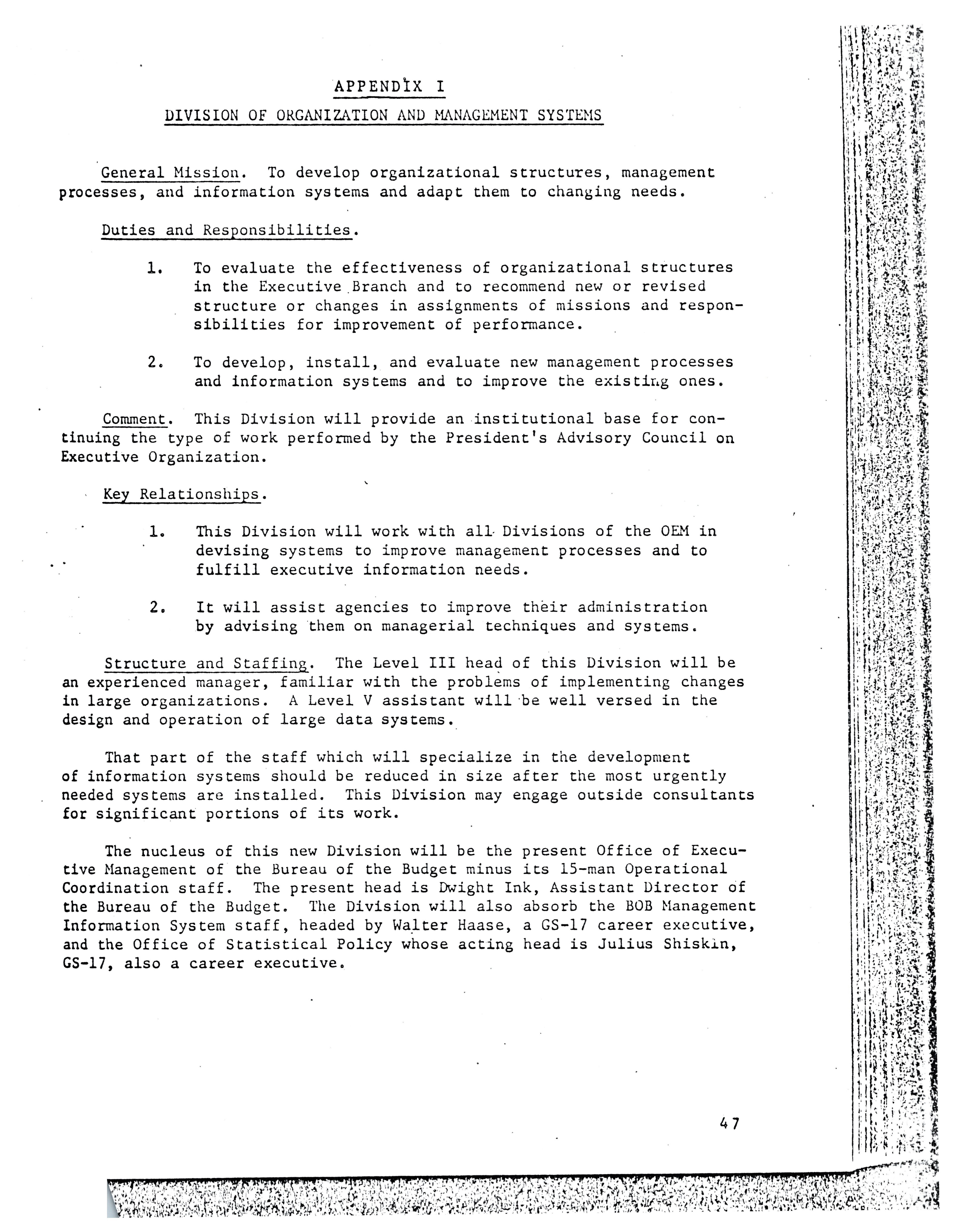 - "Proposed organization of the Executive Office of the President", Dwight Ink Collection, Iowa State University Library Digital Collections