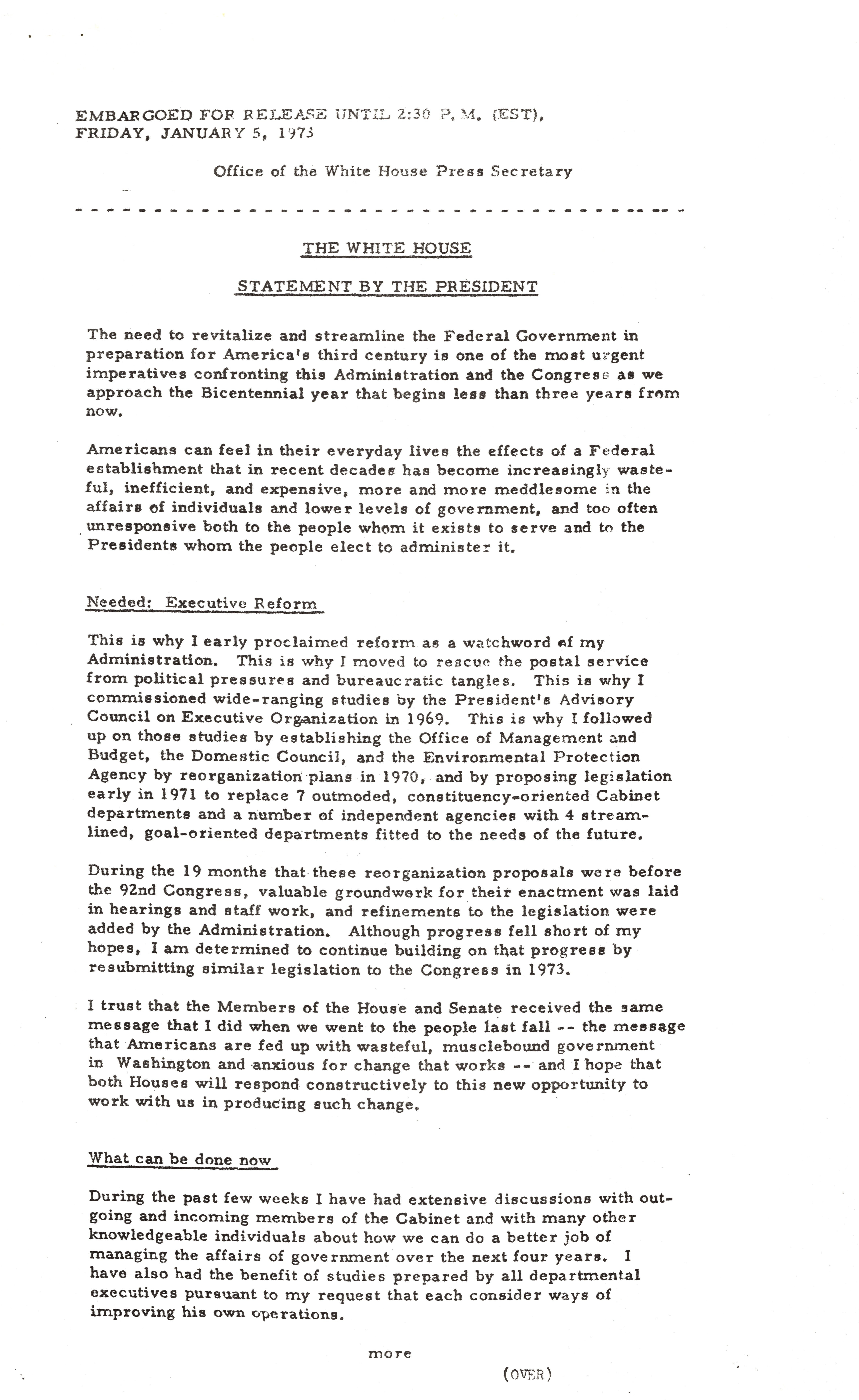 - Writings and background materials: President's Council on Executive Organization, 1970-1973, 2002
