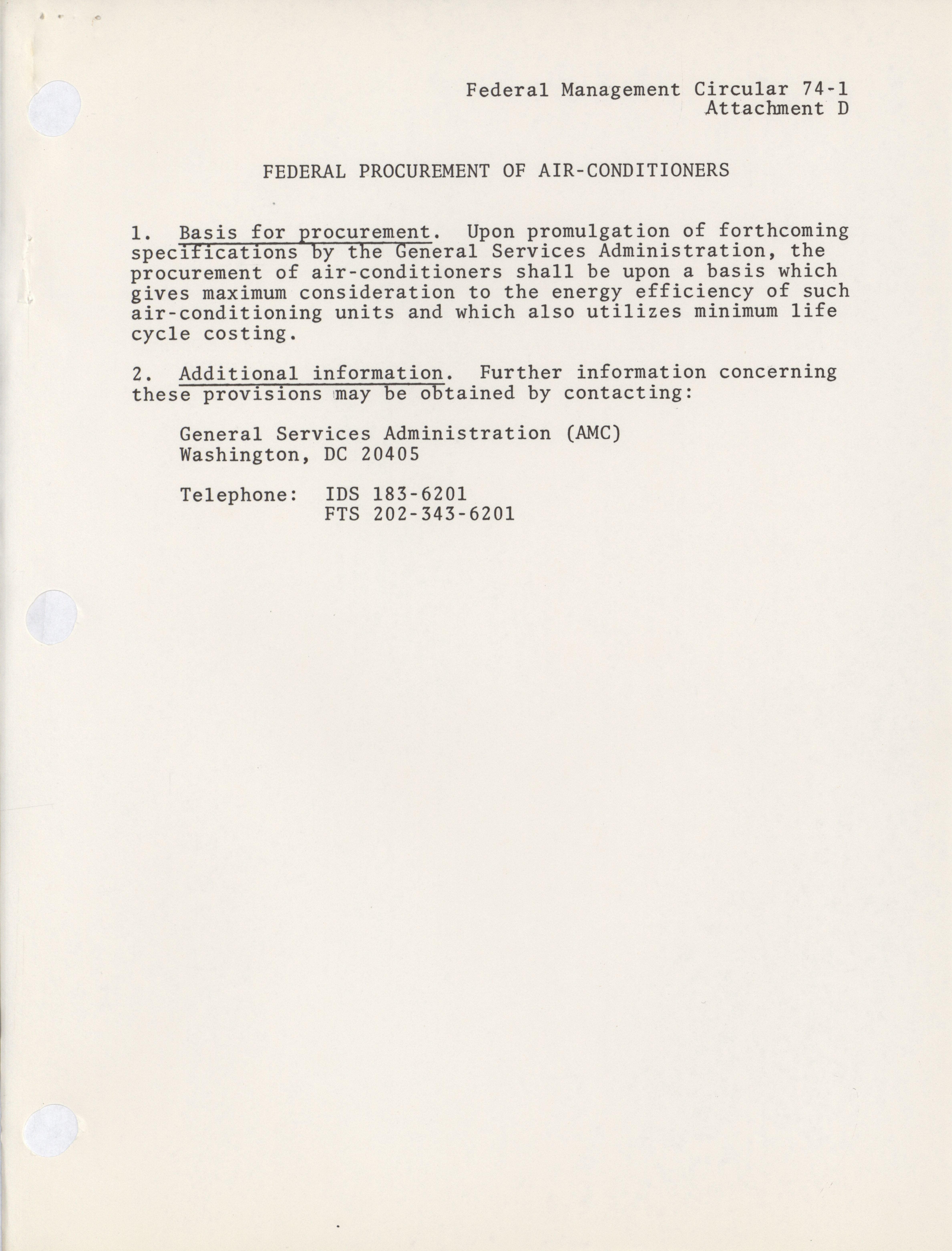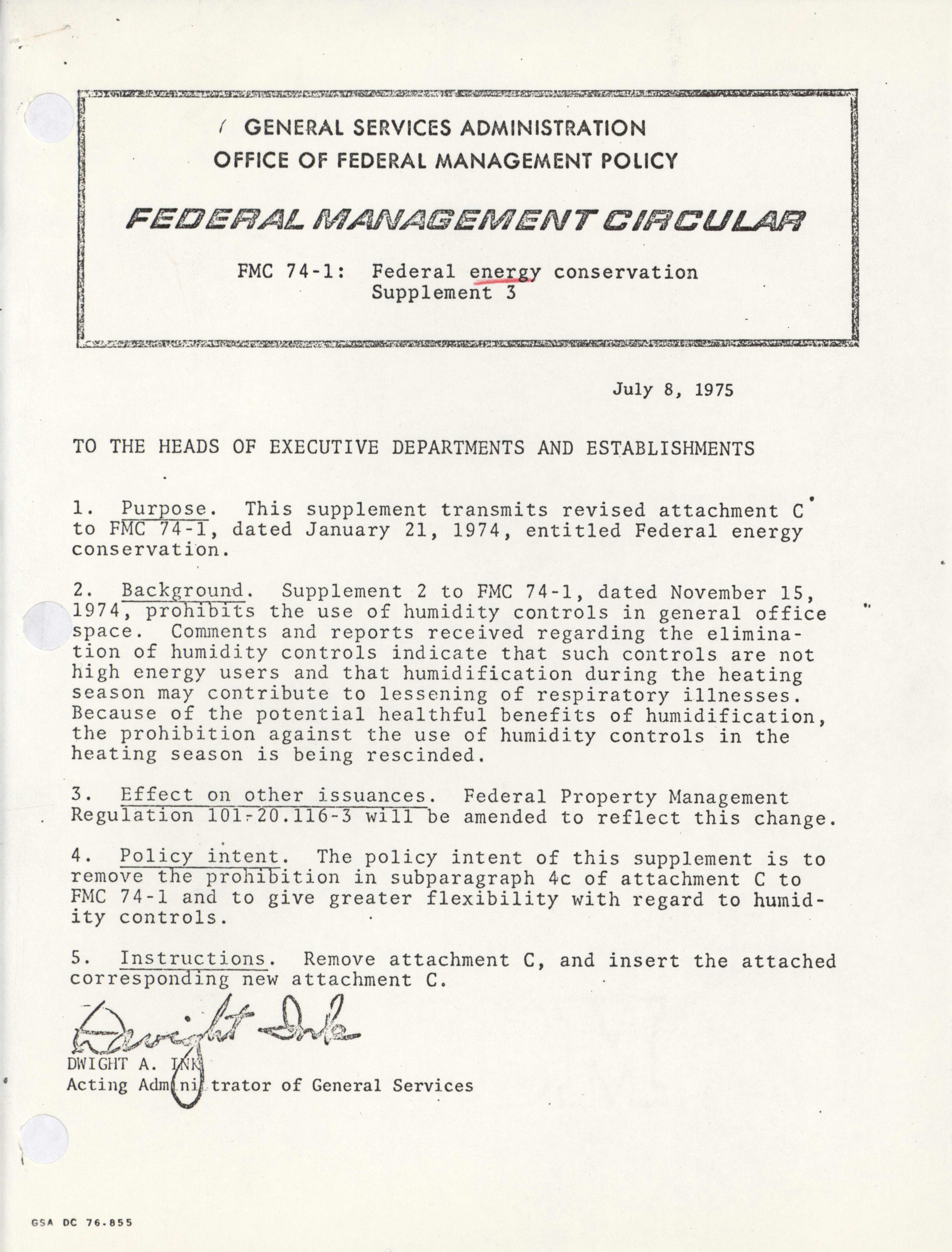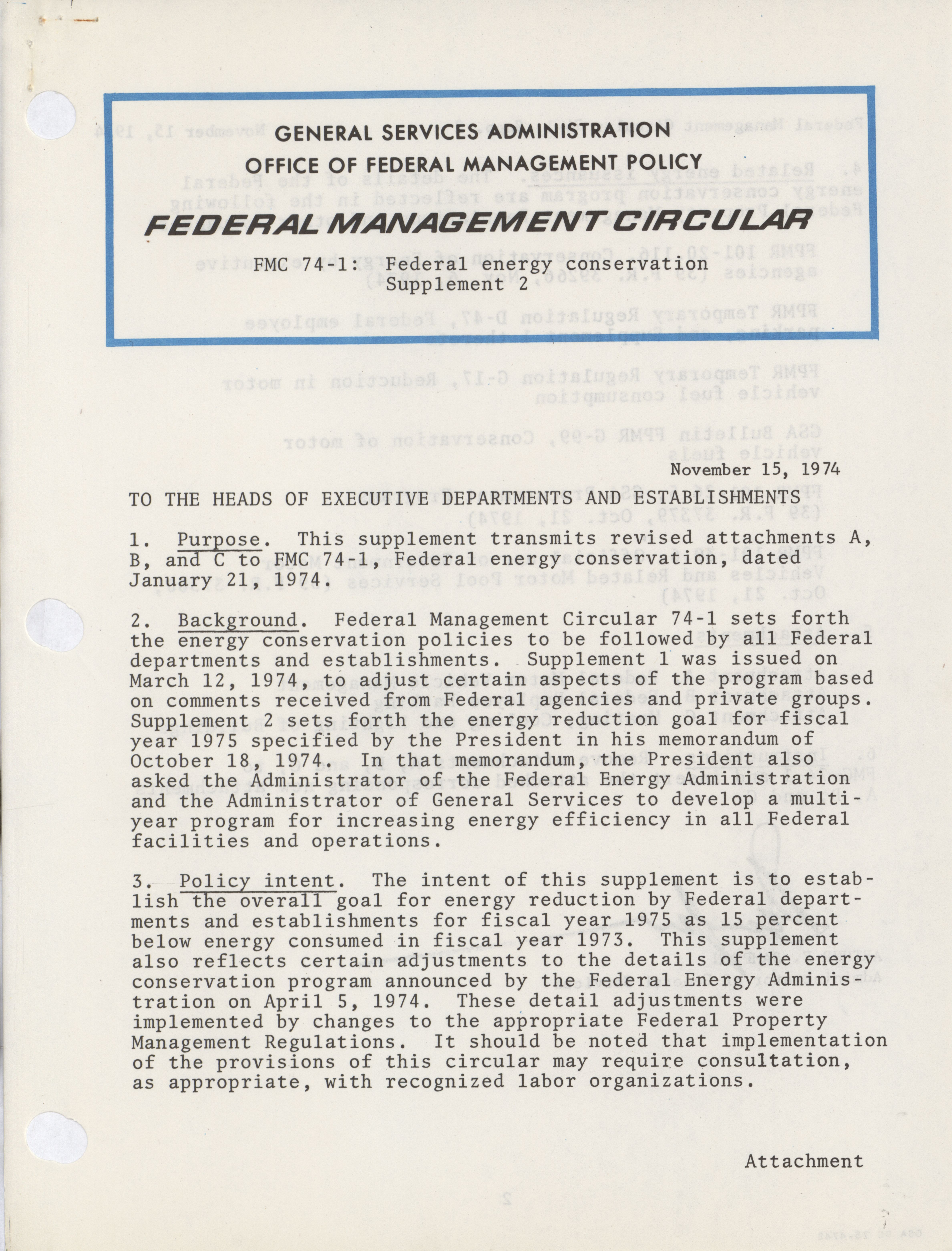 - "Federal management circular FMC 74-1", Dwight Ink Collection, Iowa State University Library Digital Collections