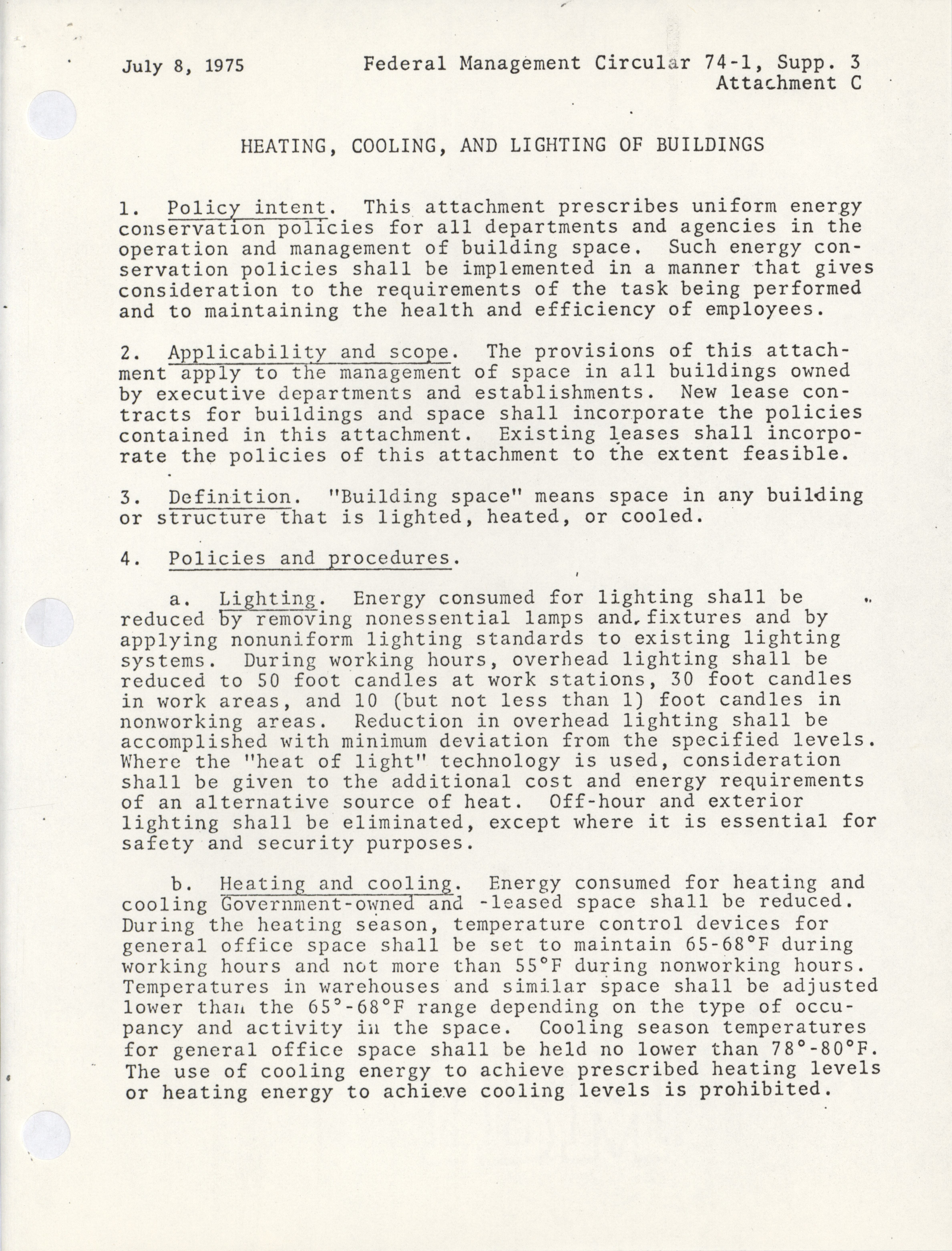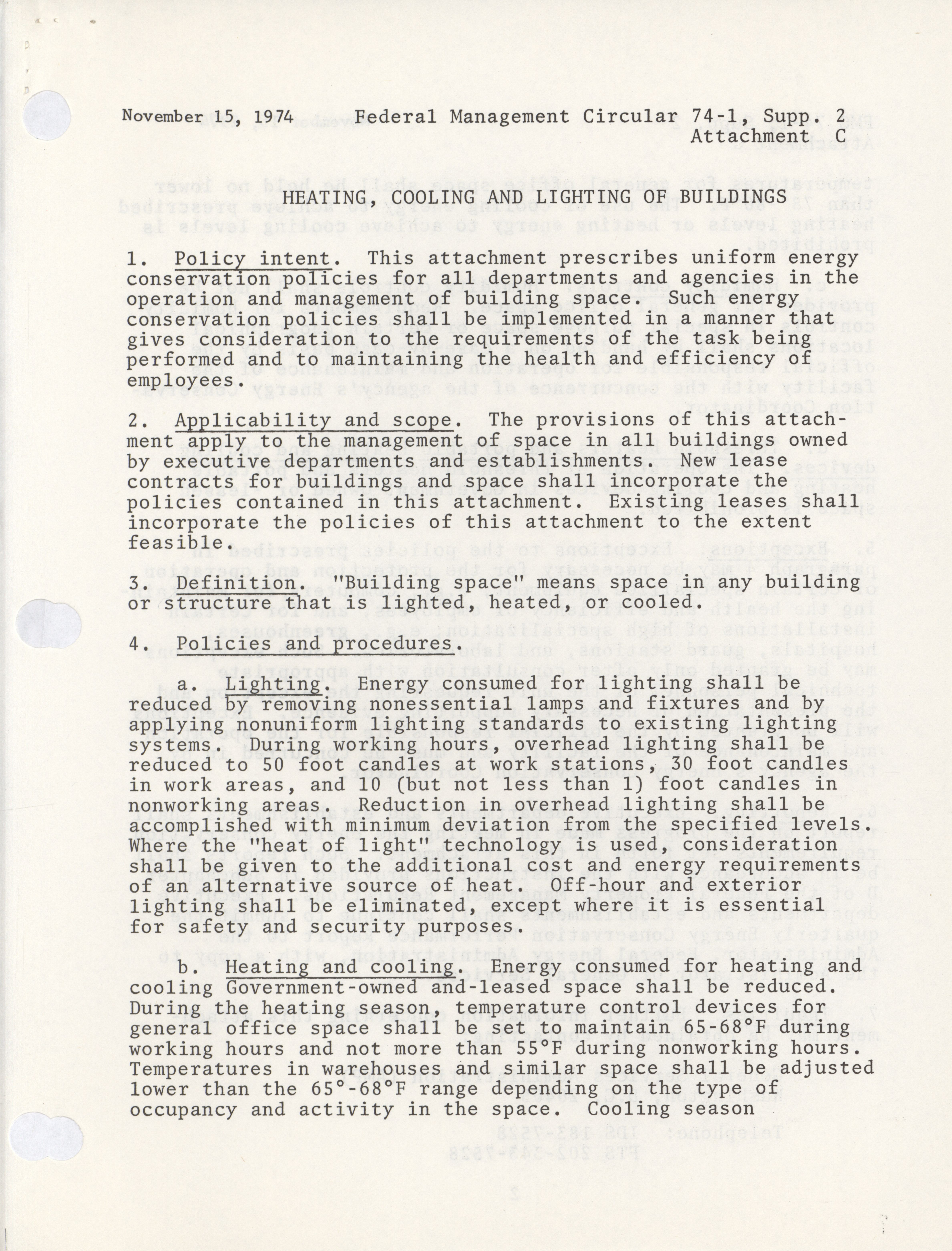 - Executive departments Heating--Energy conservation Air conditioning--Energy conservation Lighting--Energy conservation Motor vehicles--Energy conservation