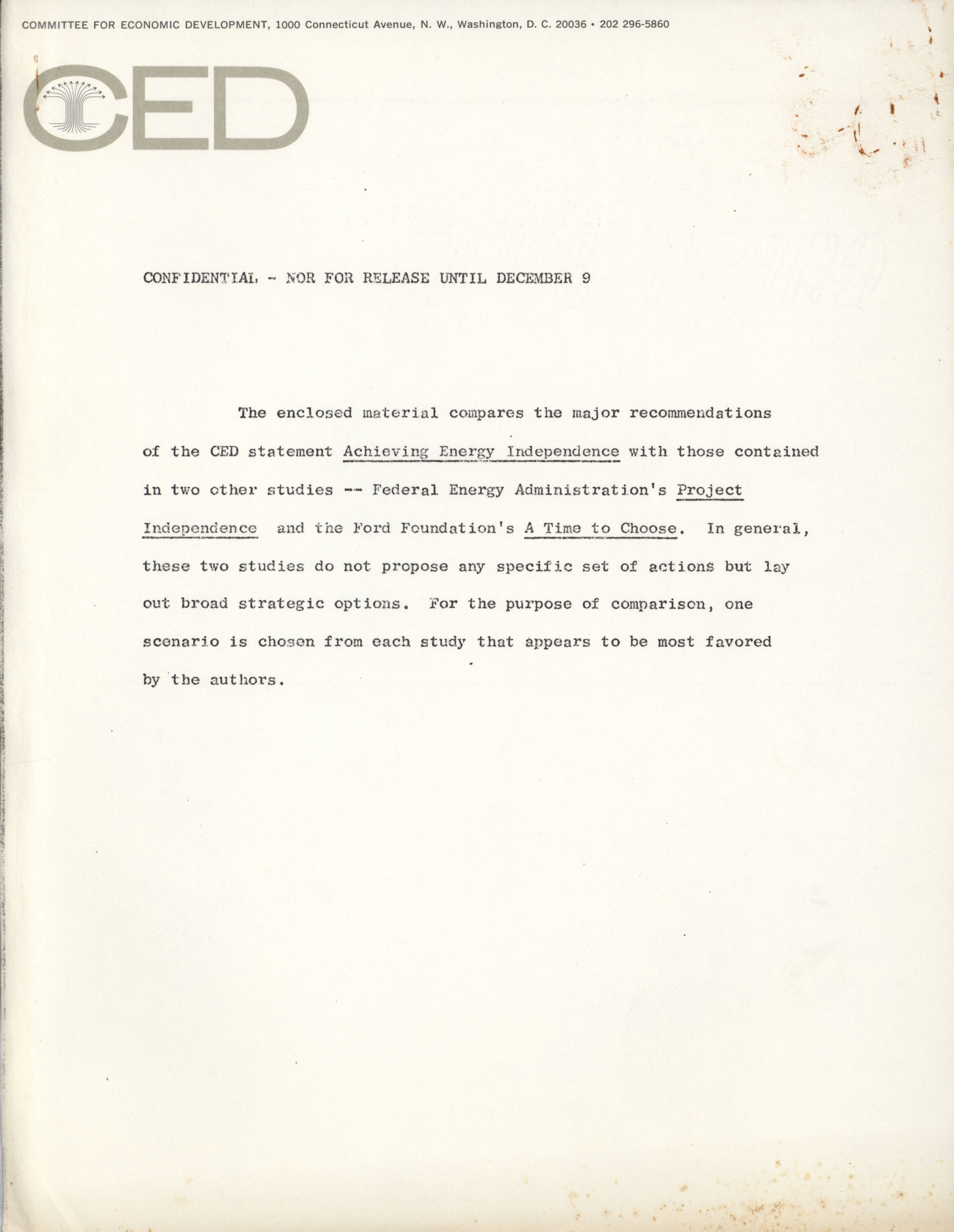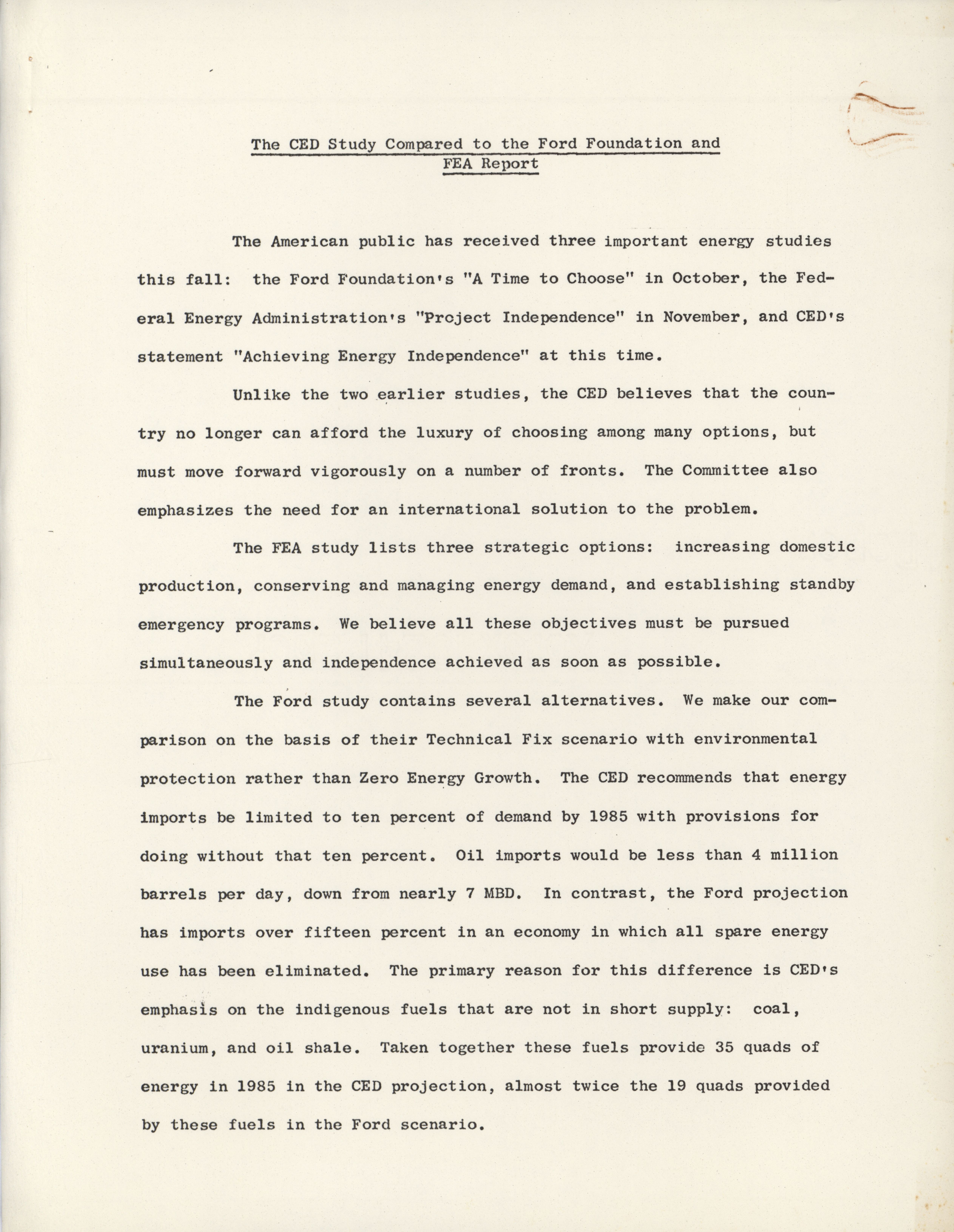 - "The CED study compared to the Ford Foundation and FEA report", Dwight Ink Collection, Iowa State University Library Digital Collections