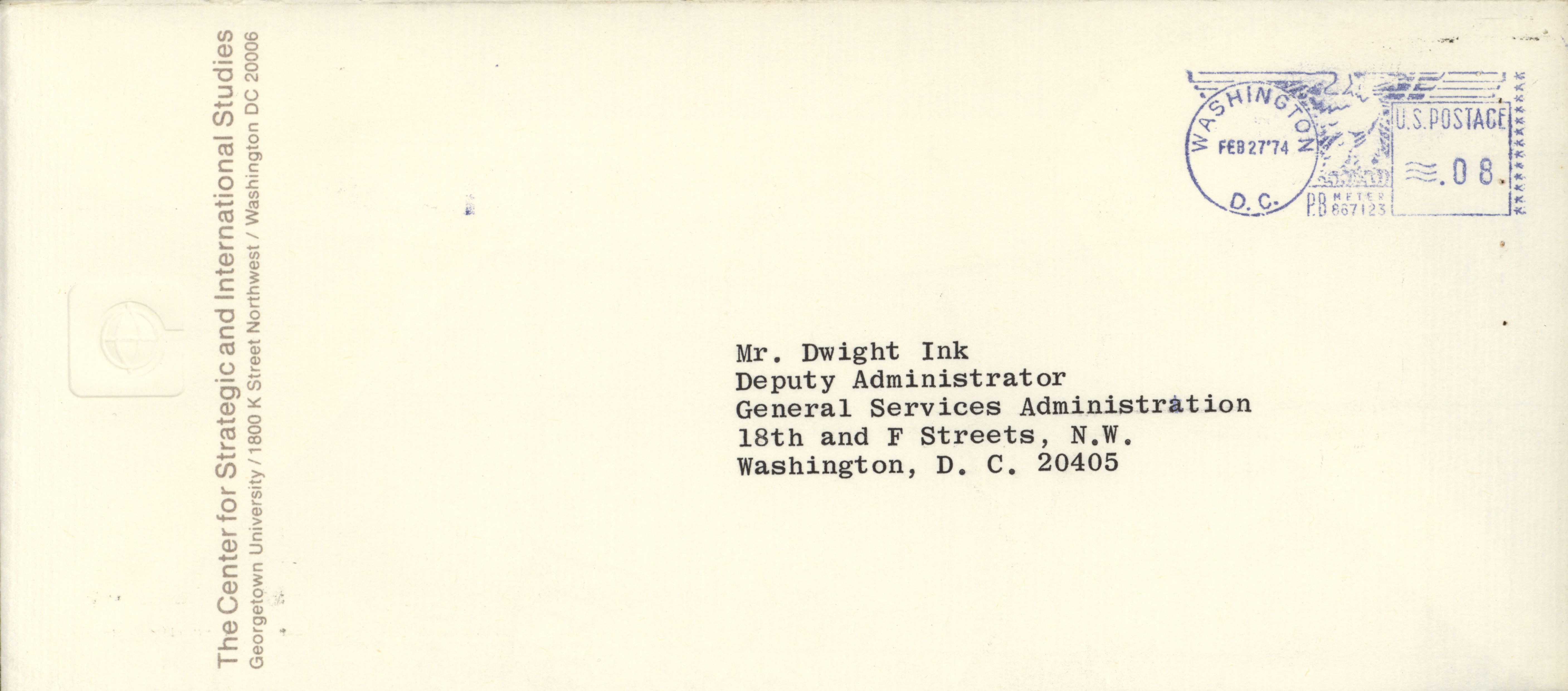 David M. Abshire letter to Dwight Ink, February 27, 1974, includes seminar description Item Info