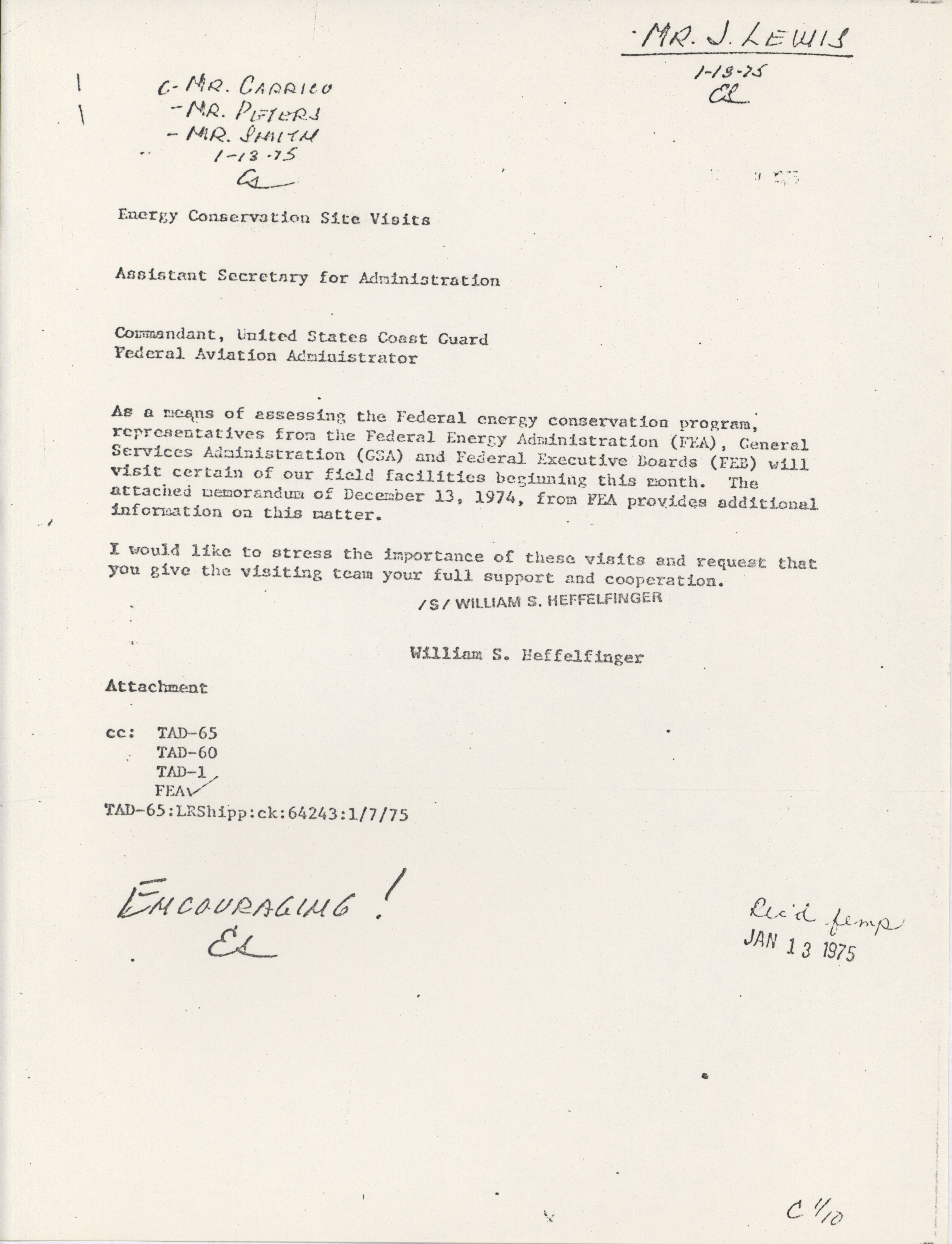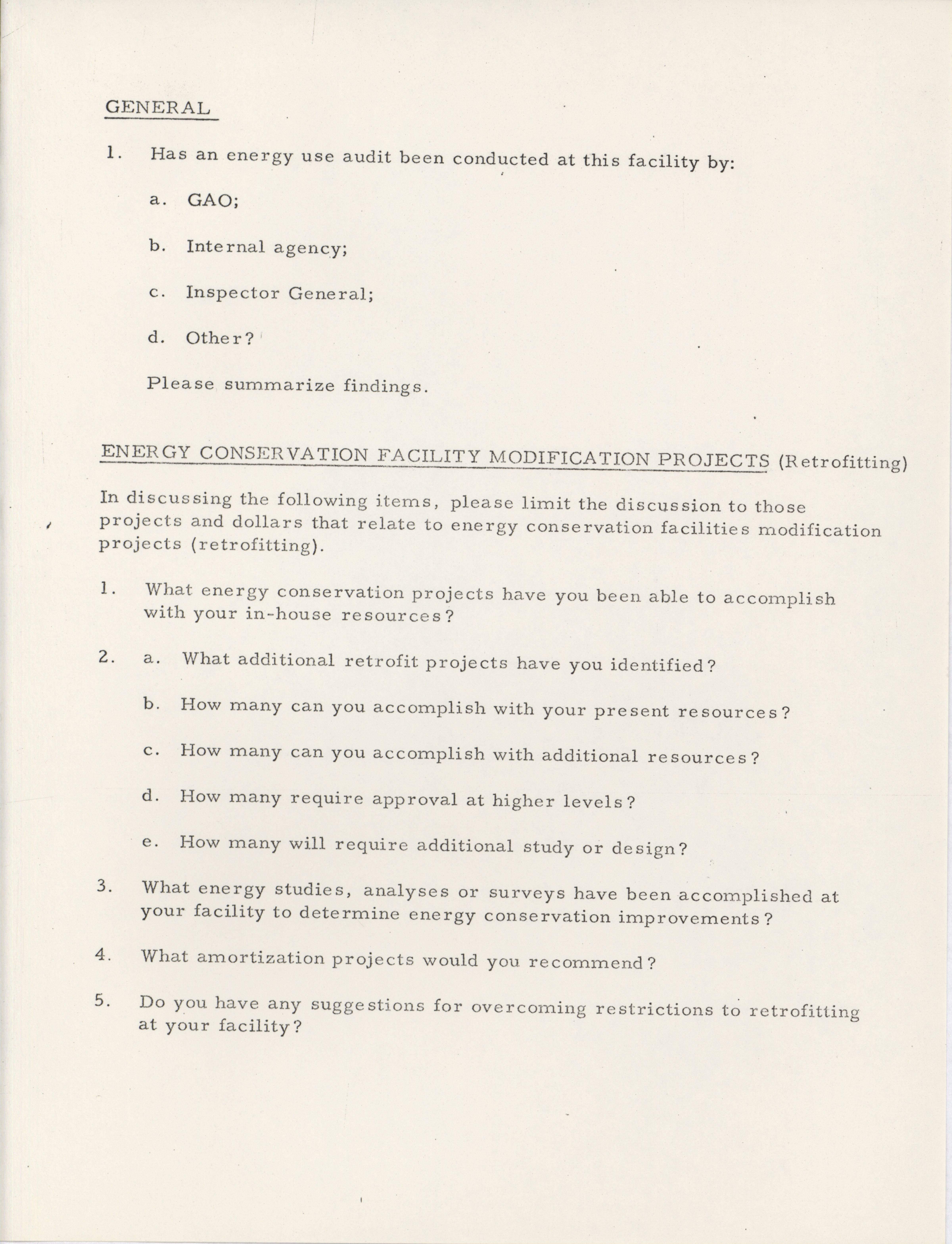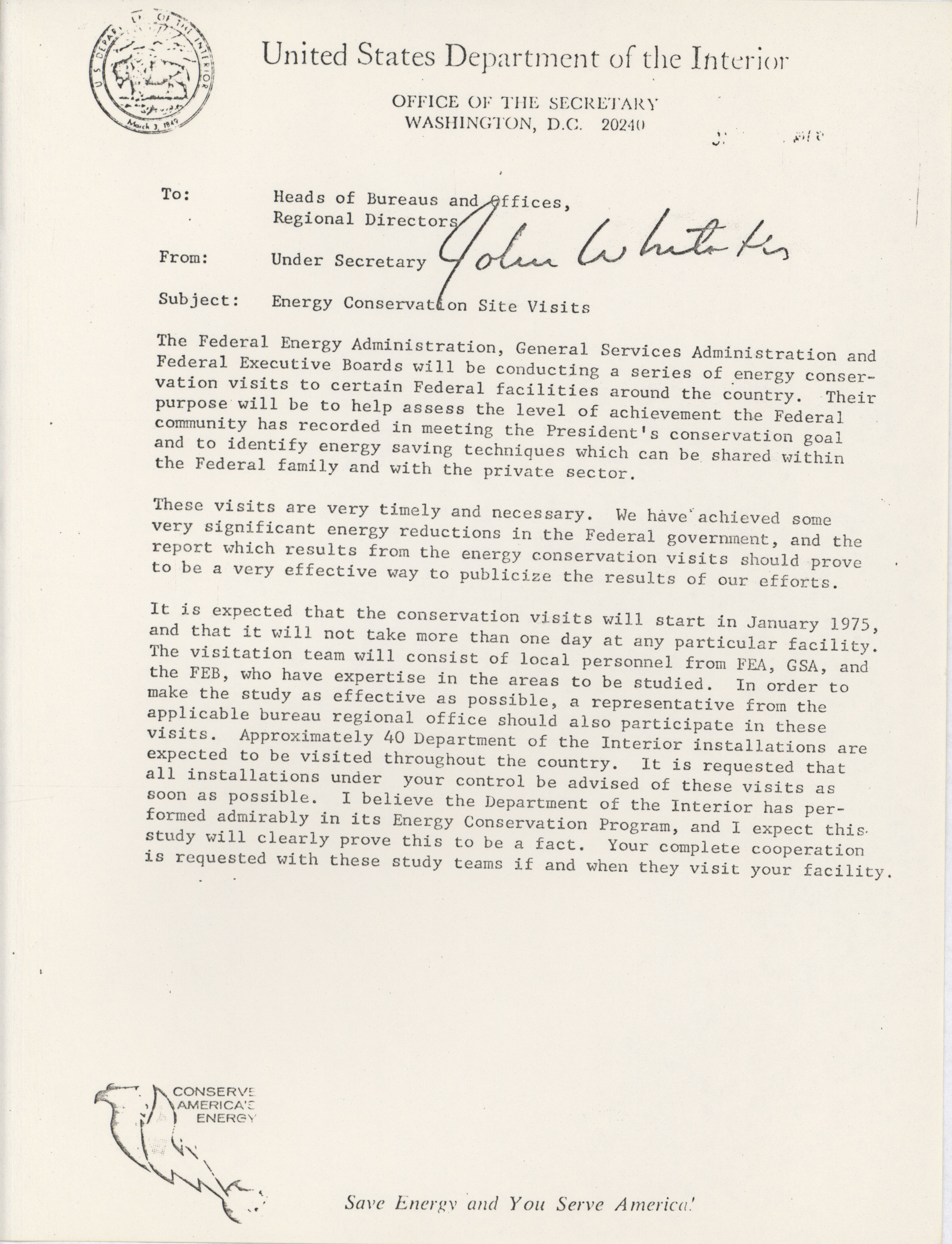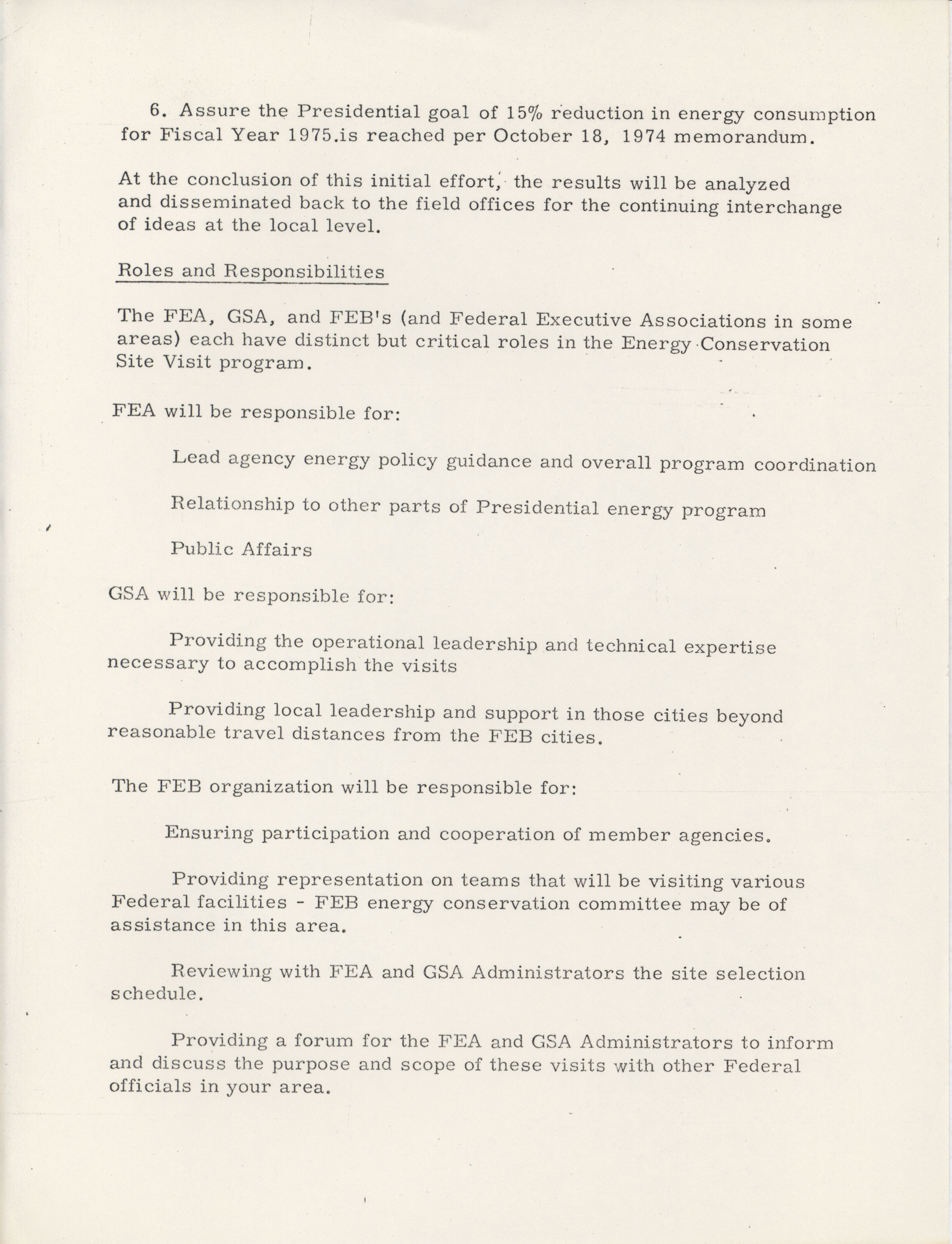 - Energy Conservation Site Visit Program overview and memorandums, 1975