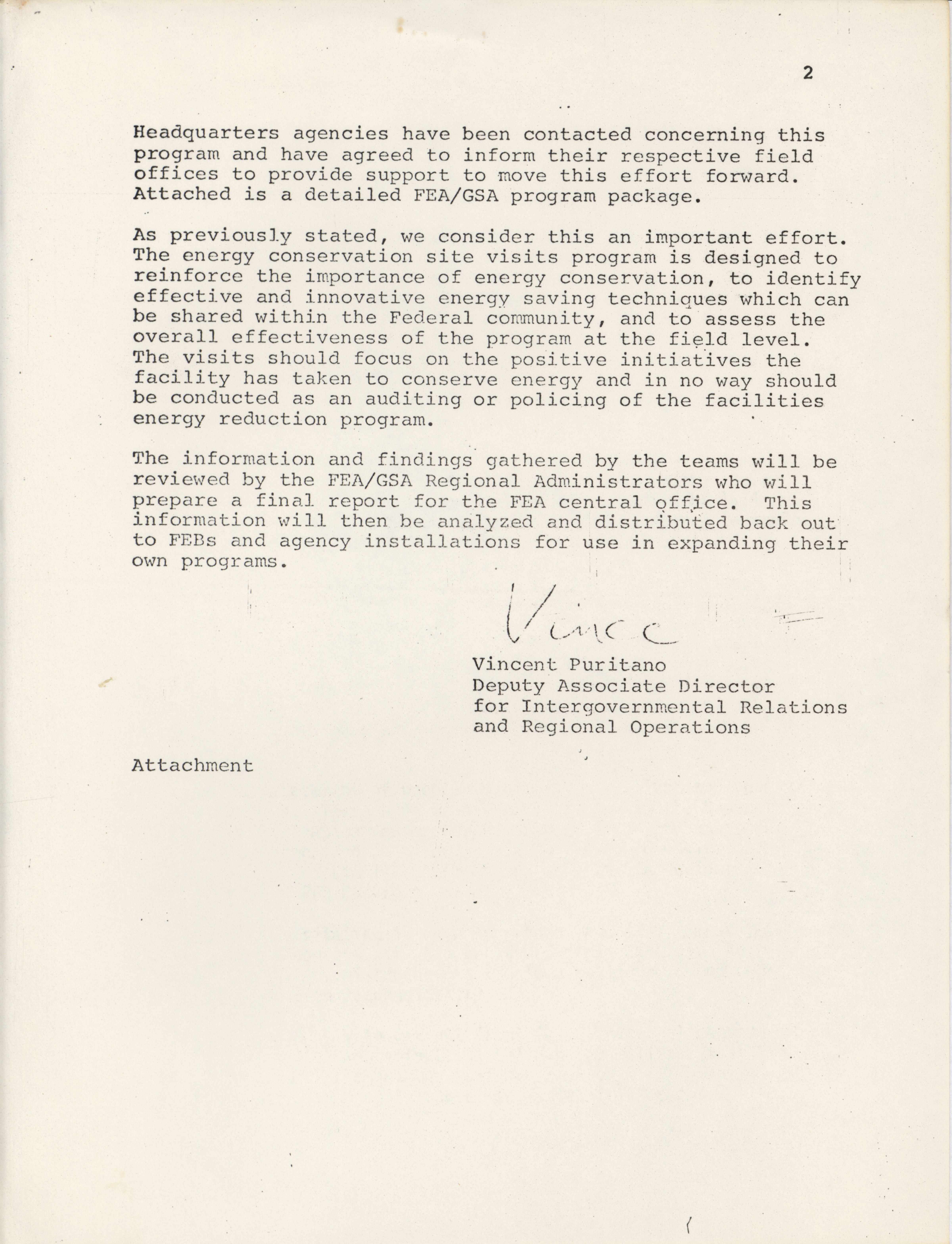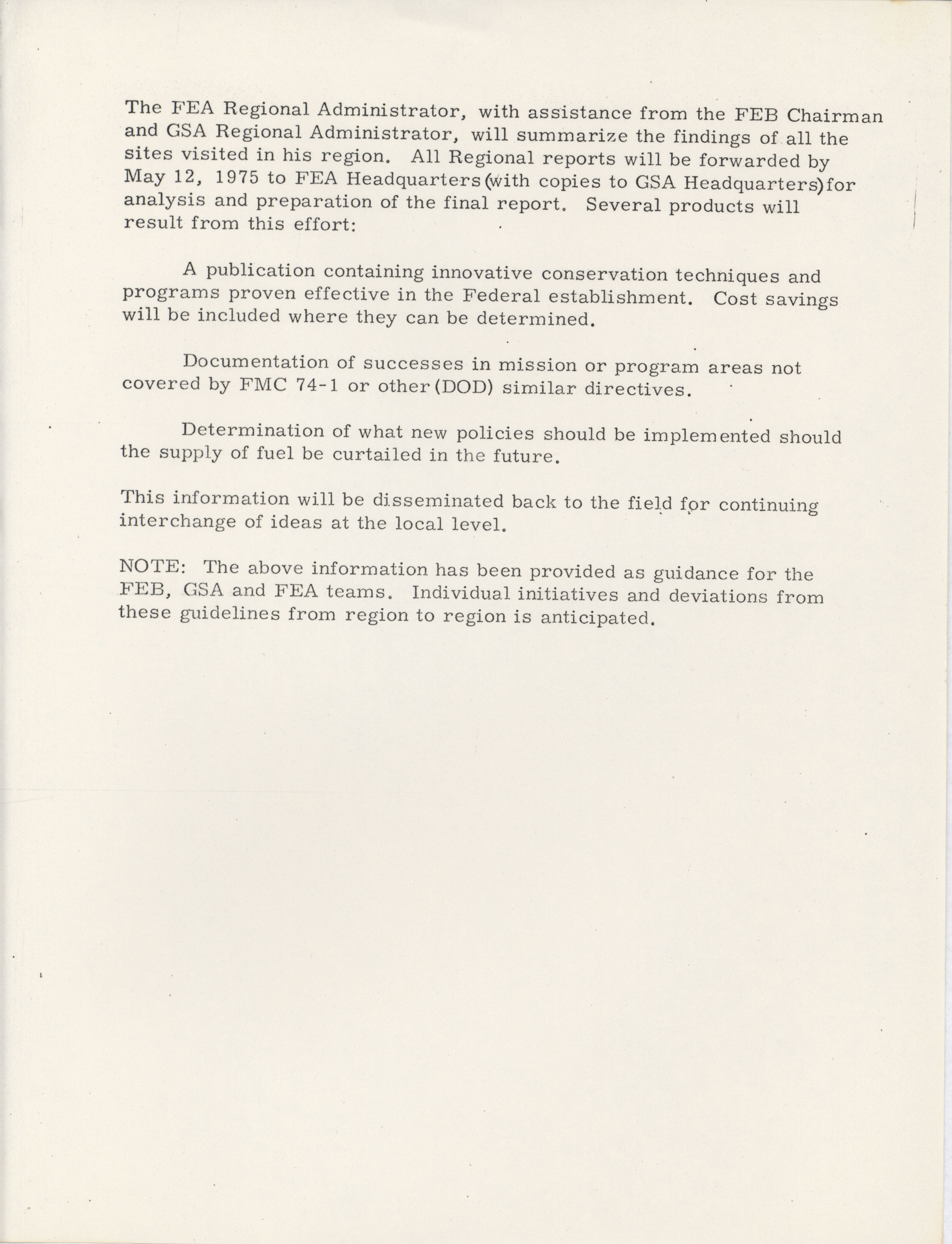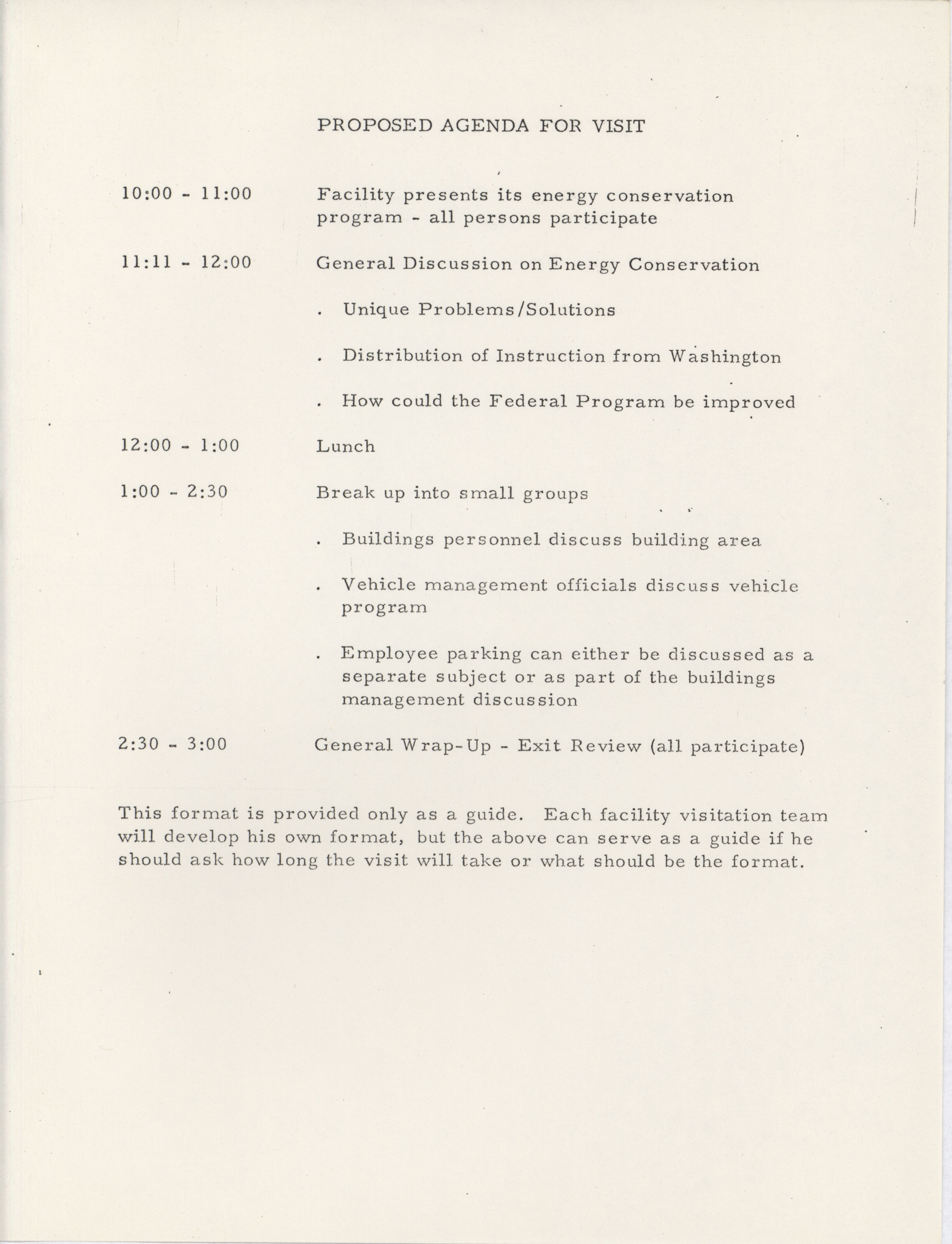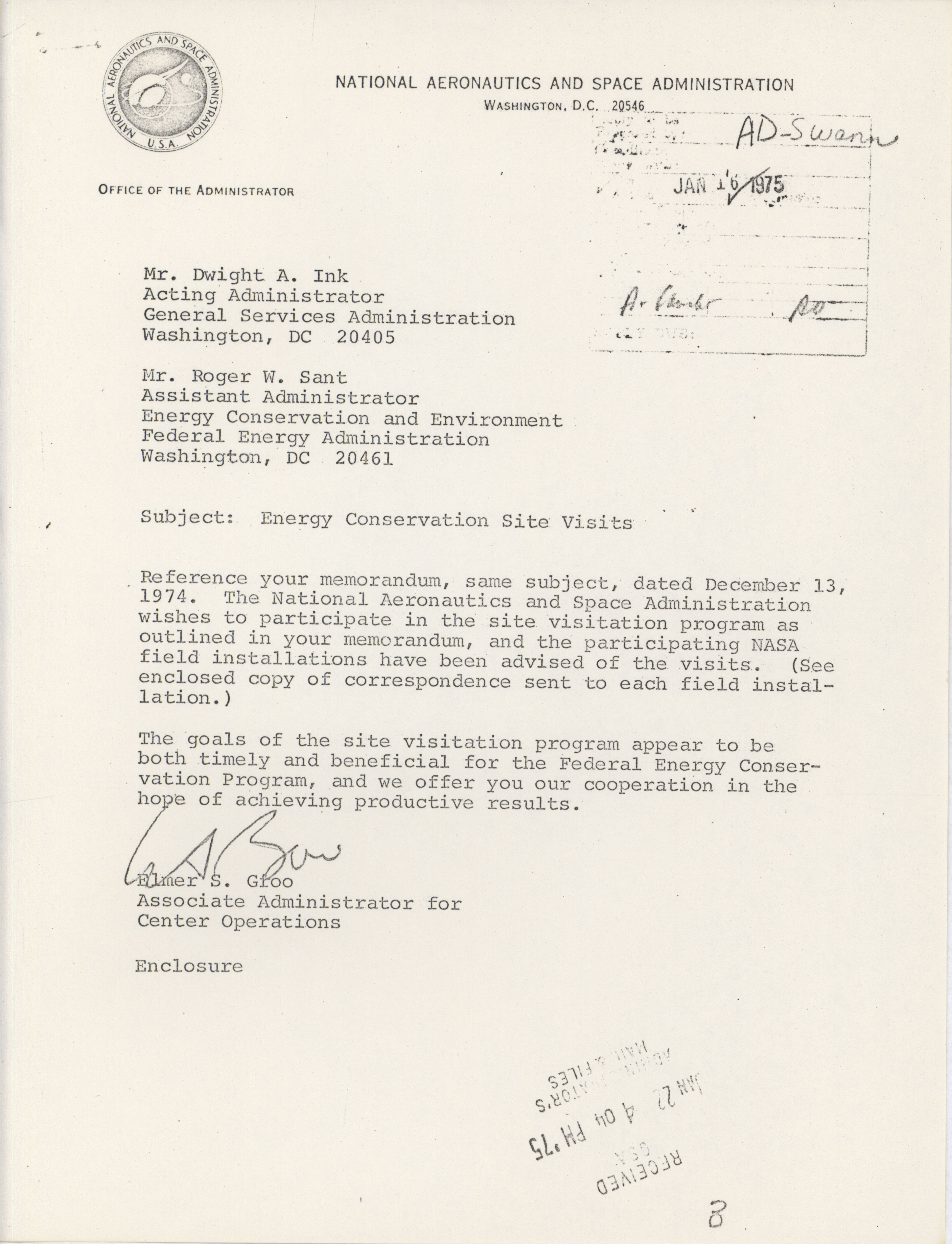 - Energy Conservation Site Visit Program overview and memorandums, 1975