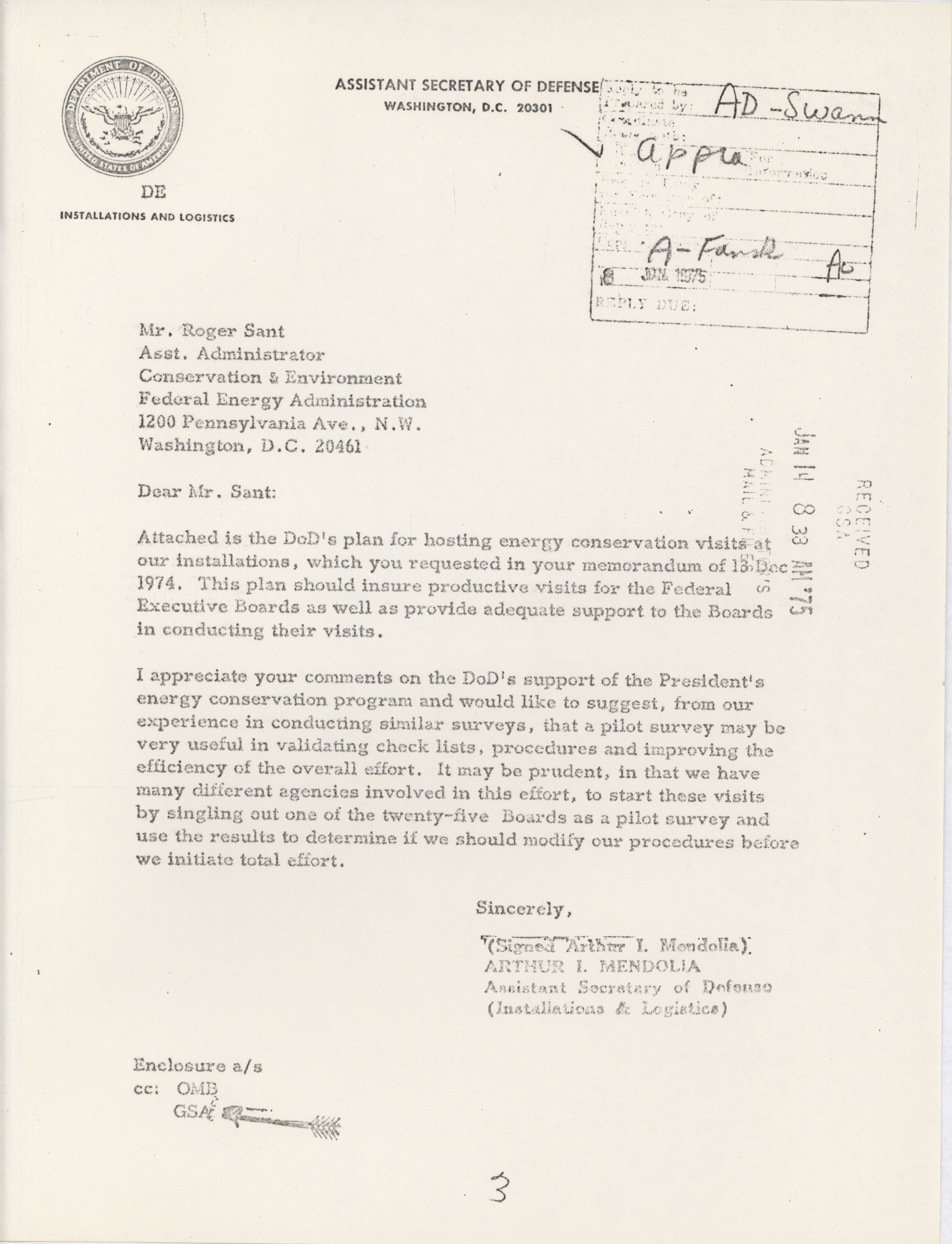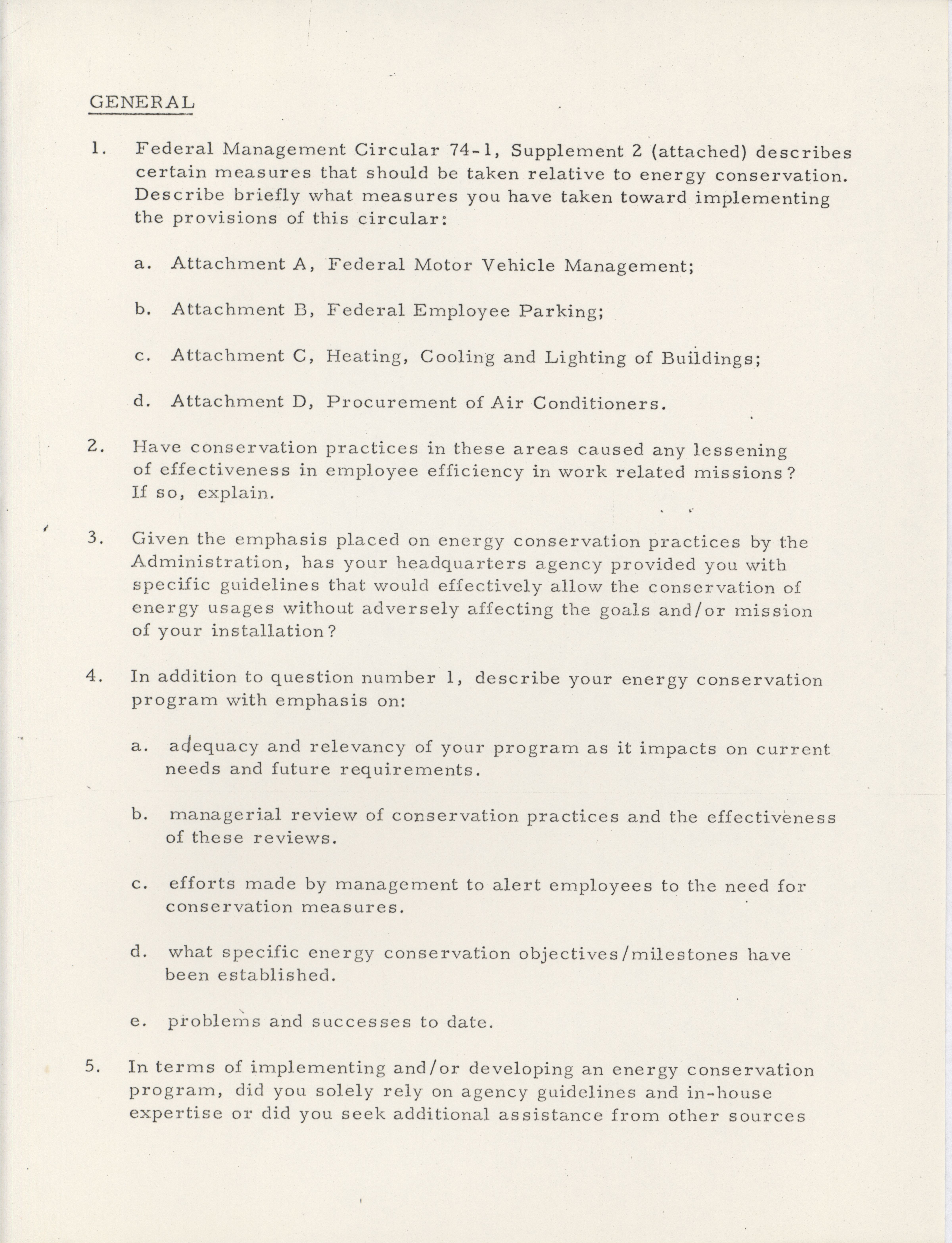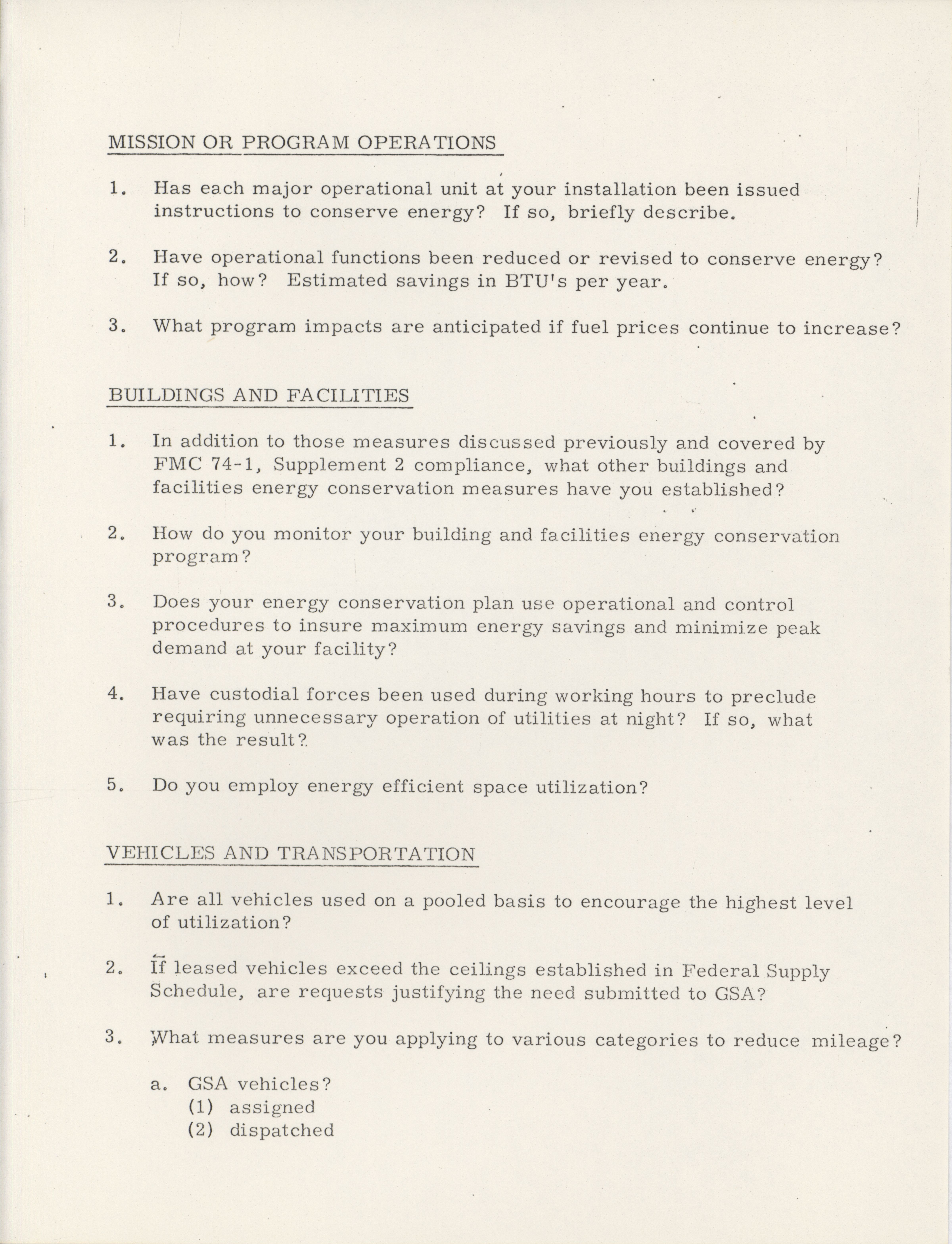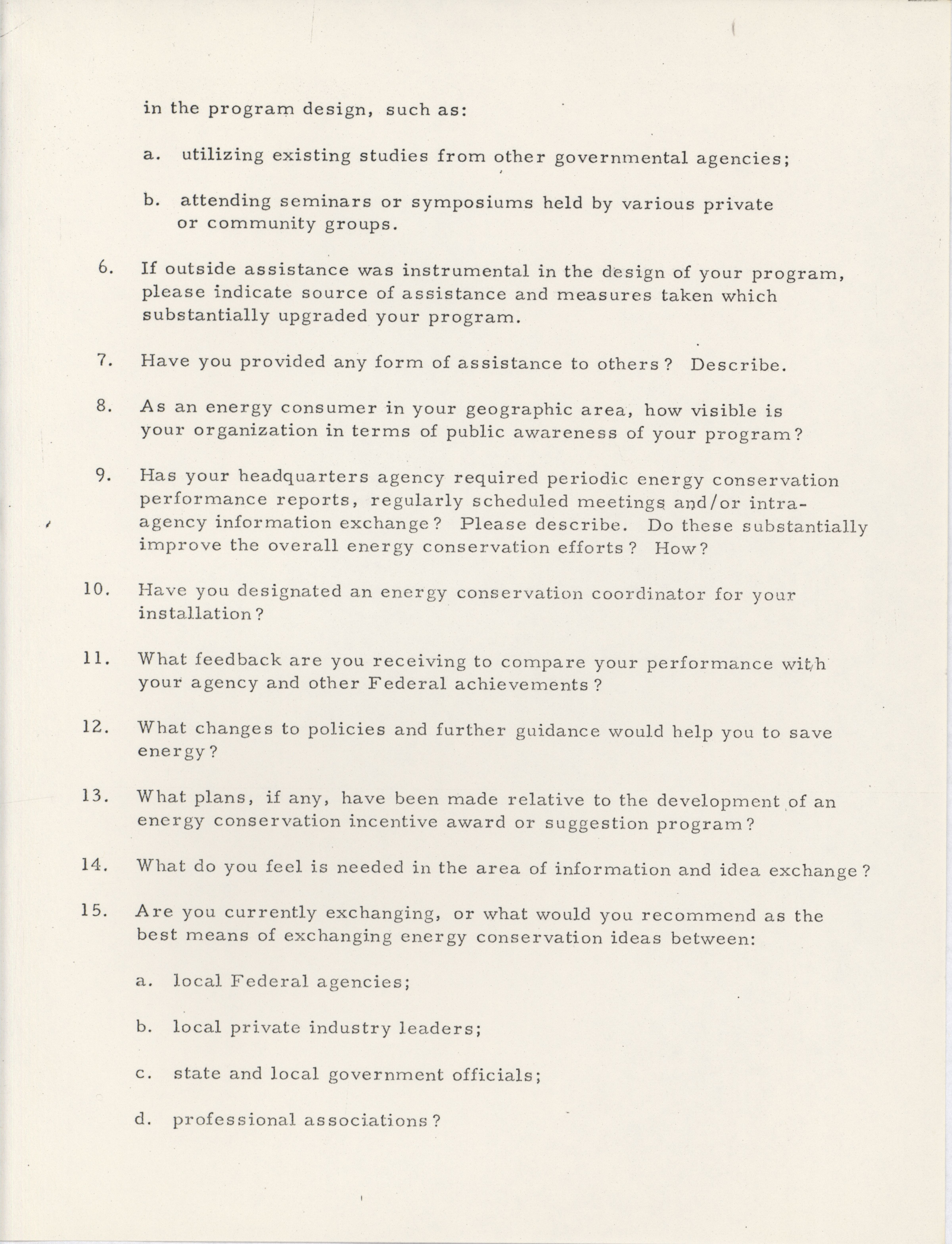 - Energy Conservation Site Visit Program overview and memorandums, 1975