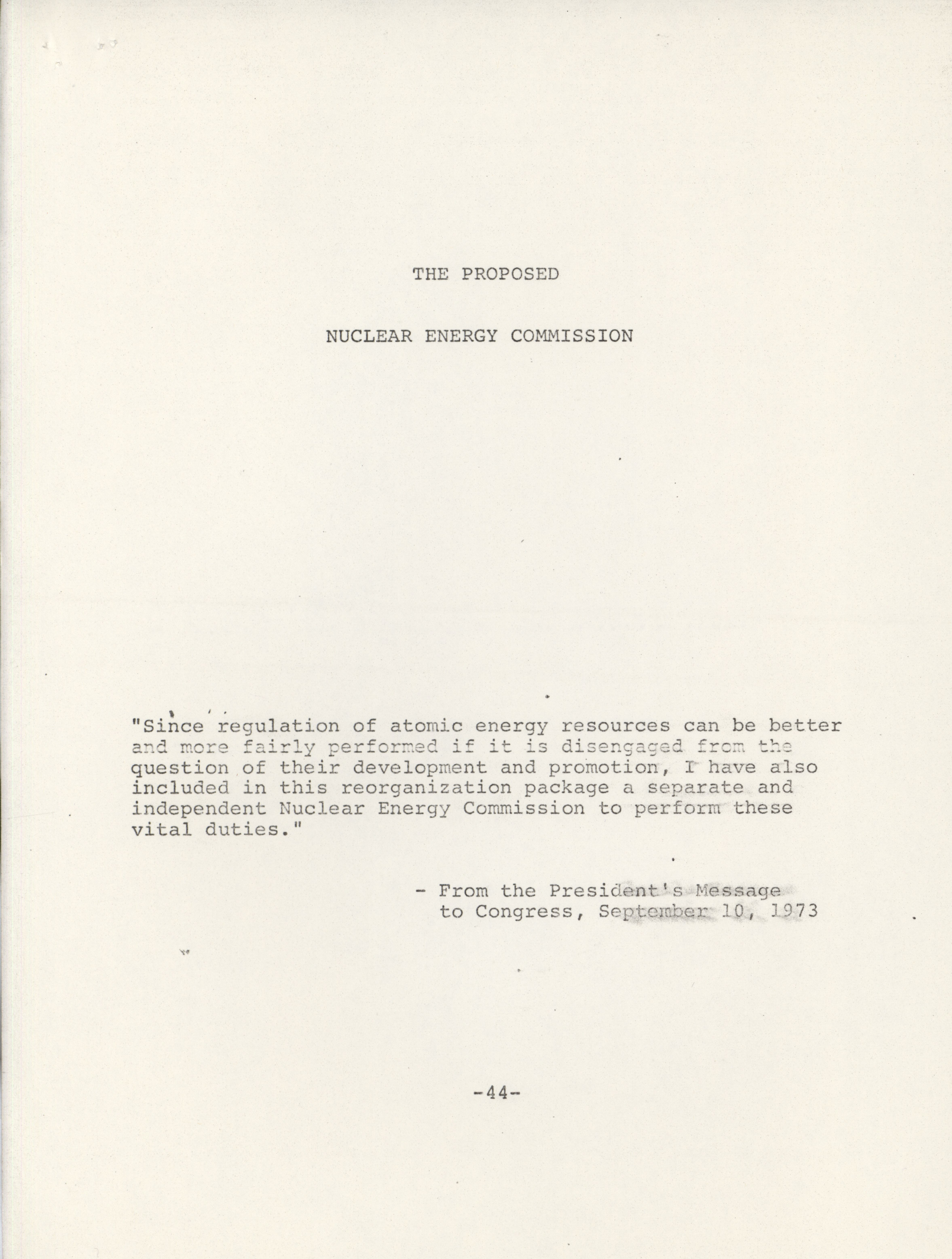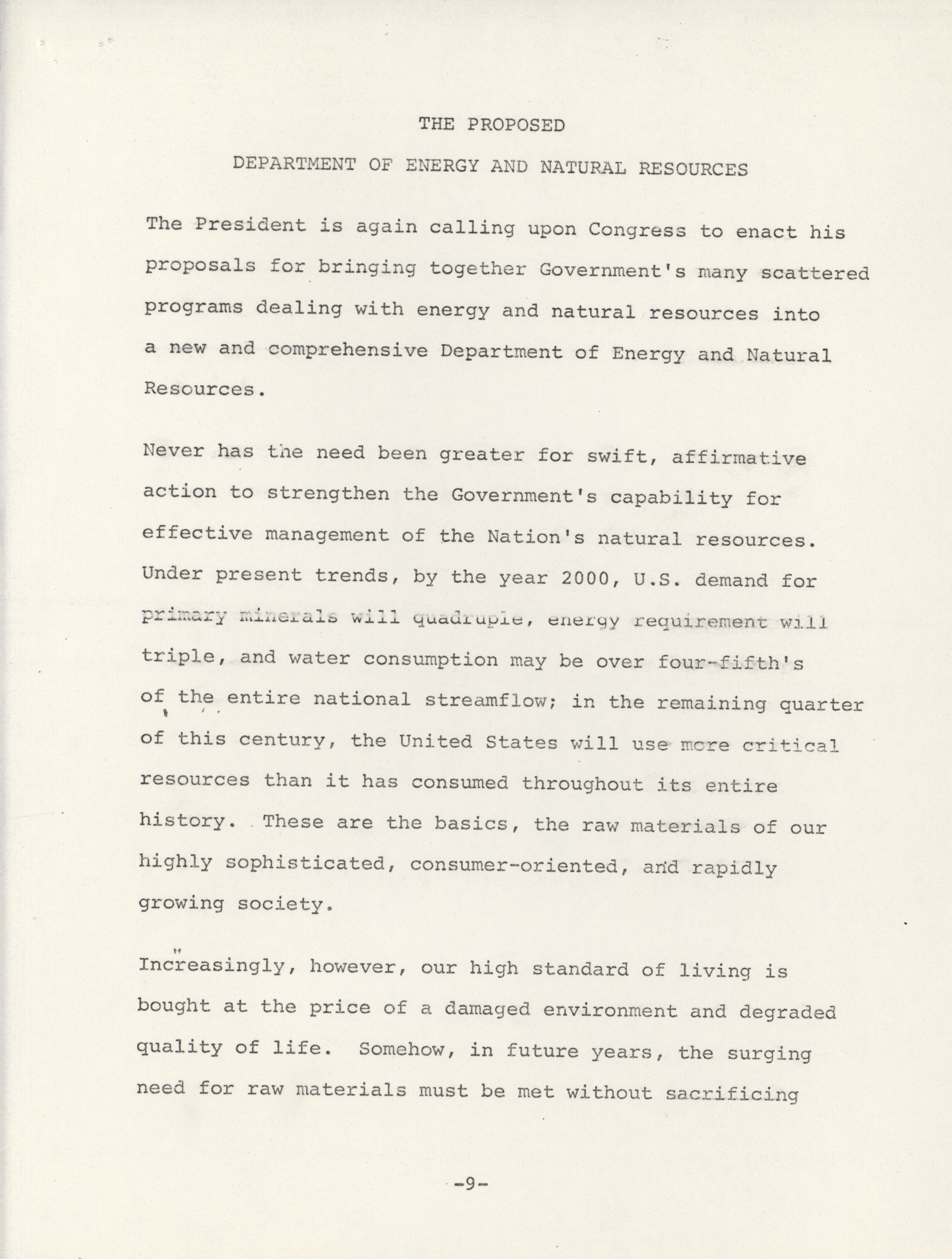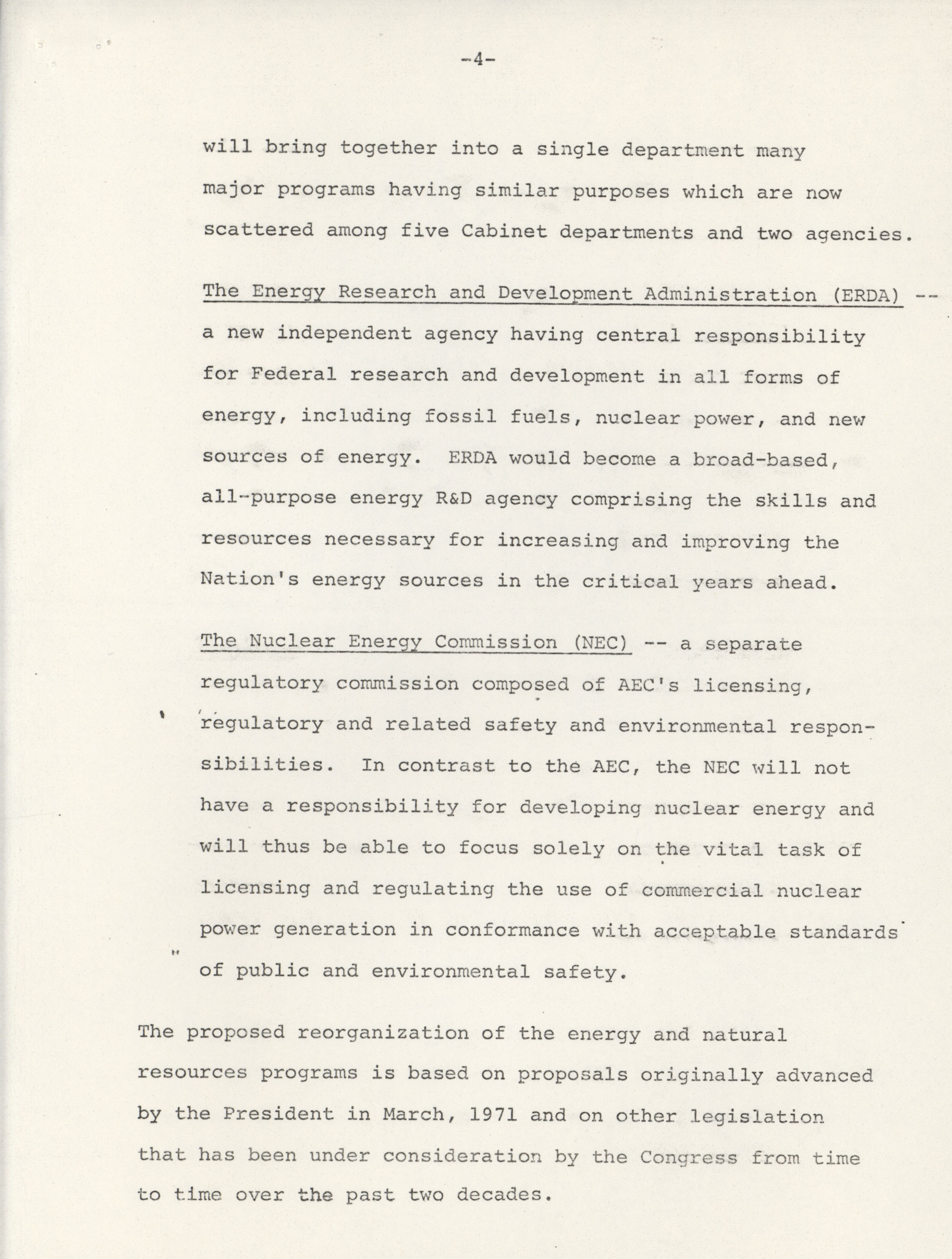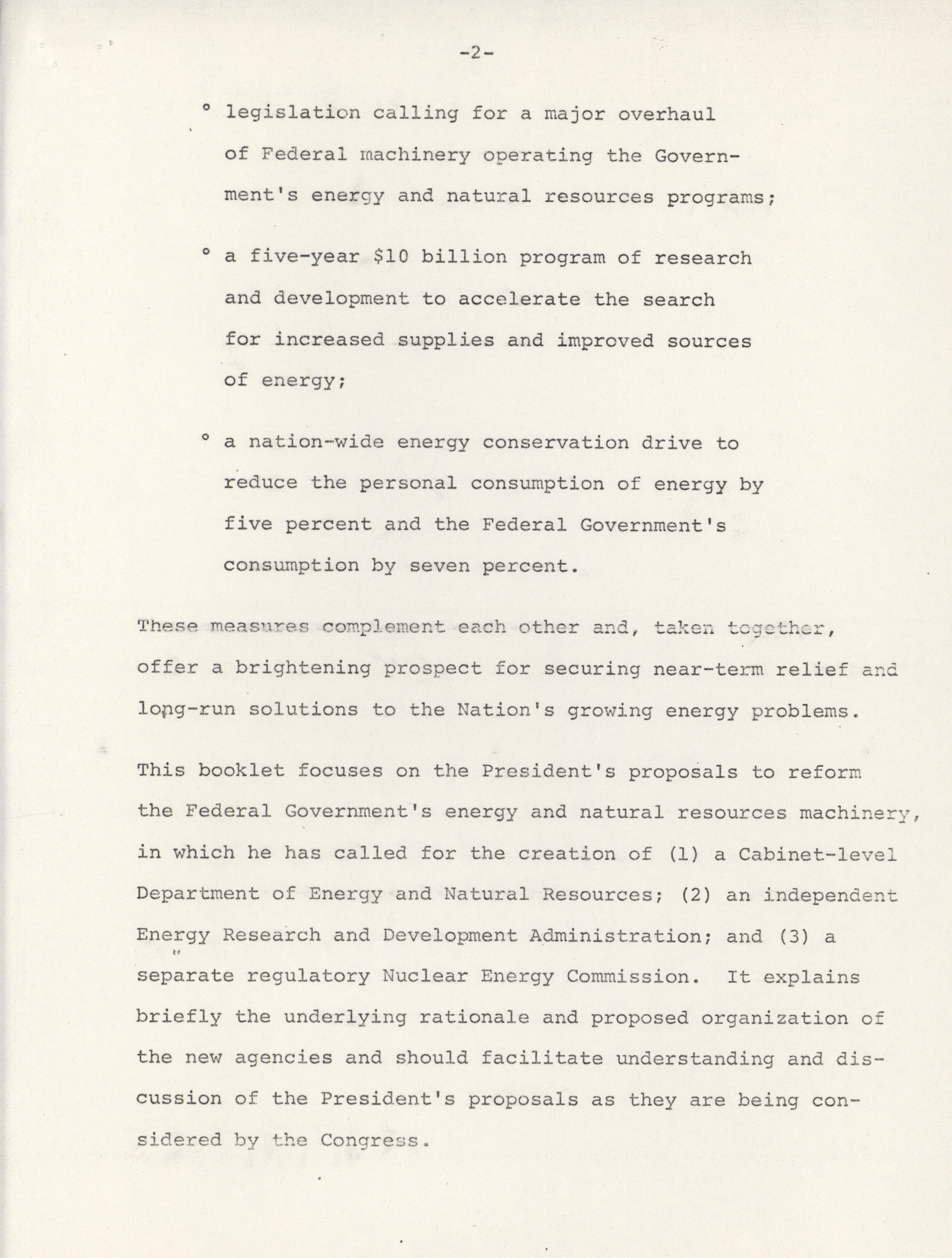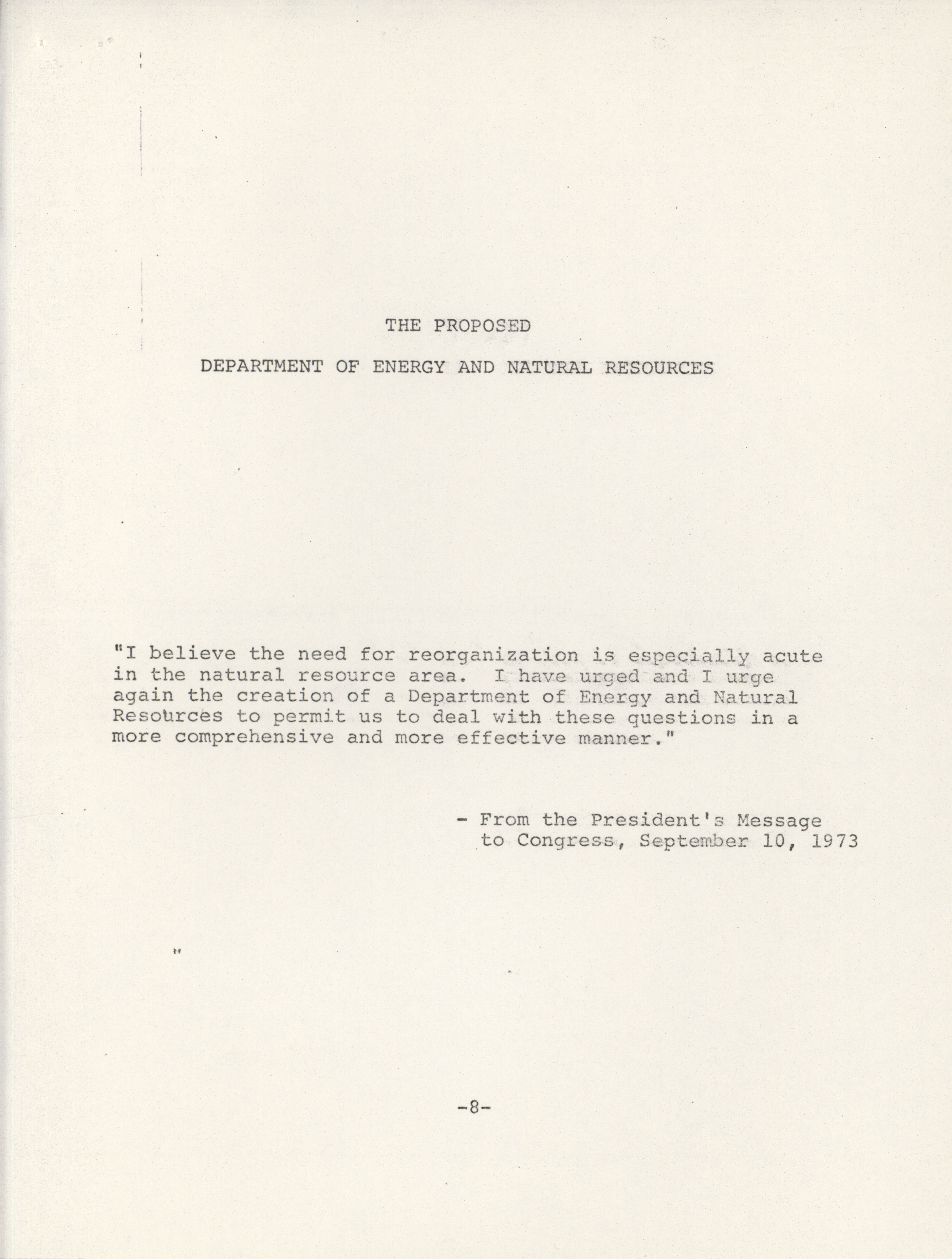 - OMB. "President's proposals for reorganizing the energy and natural resources programs of the federal government," annotated draft, 1973