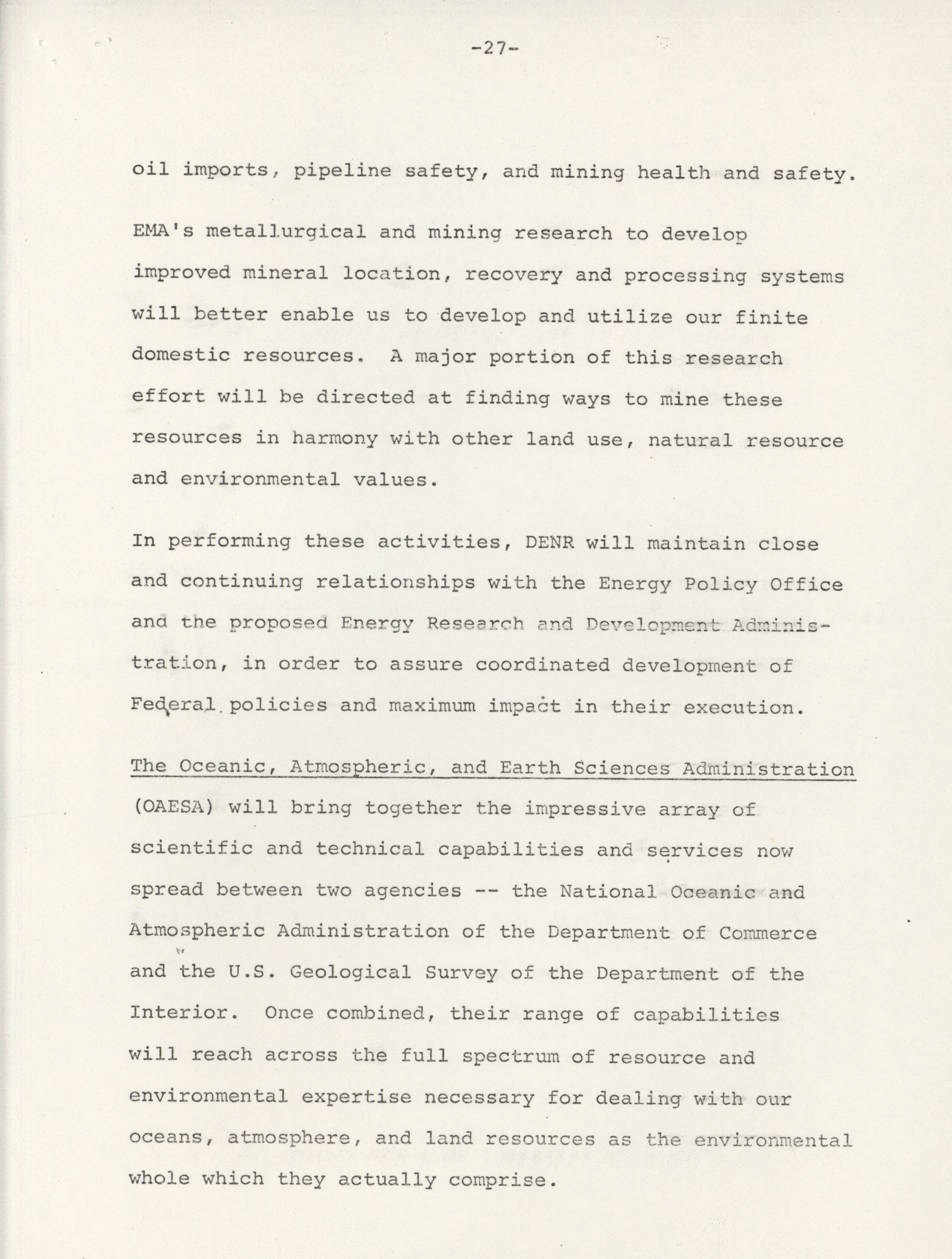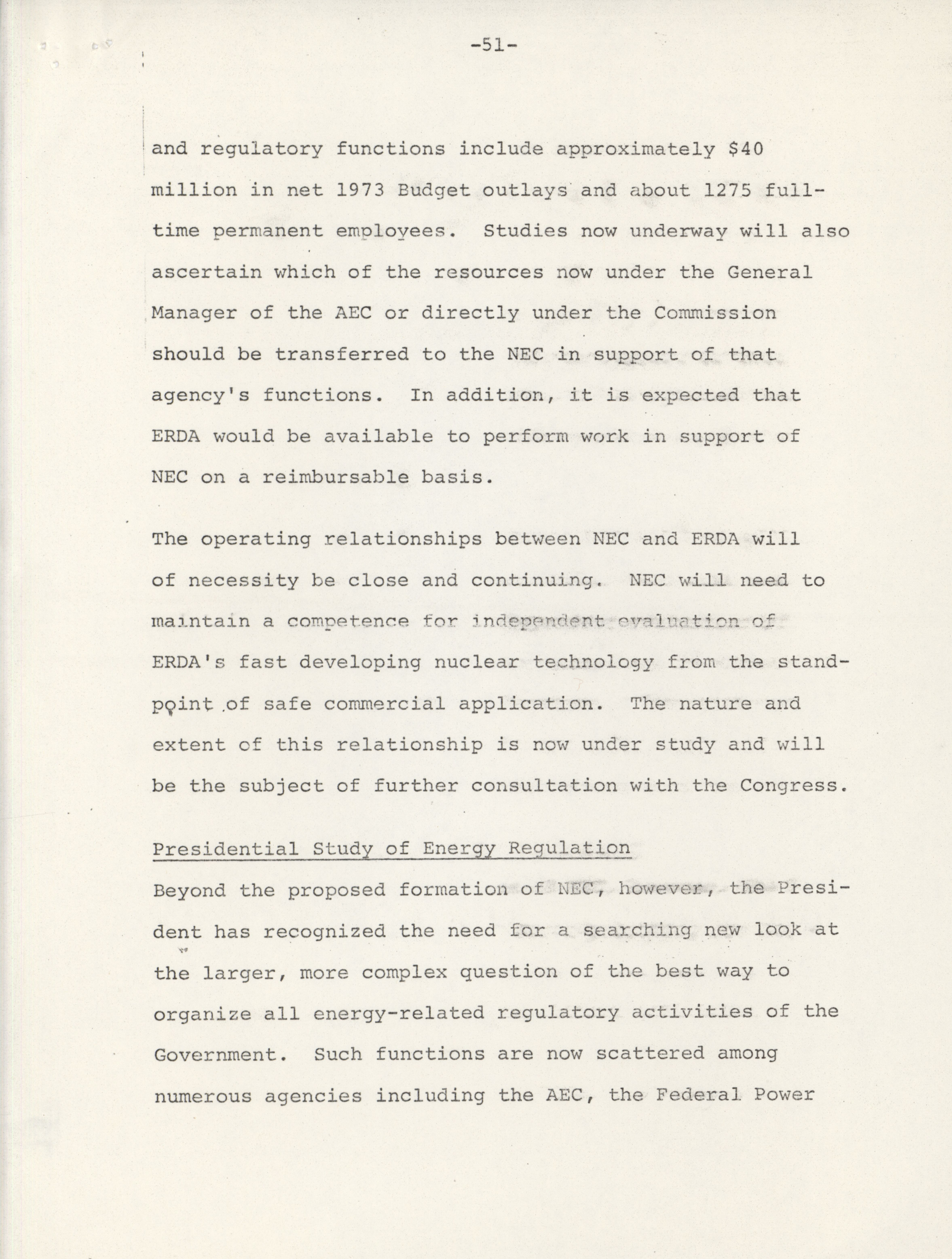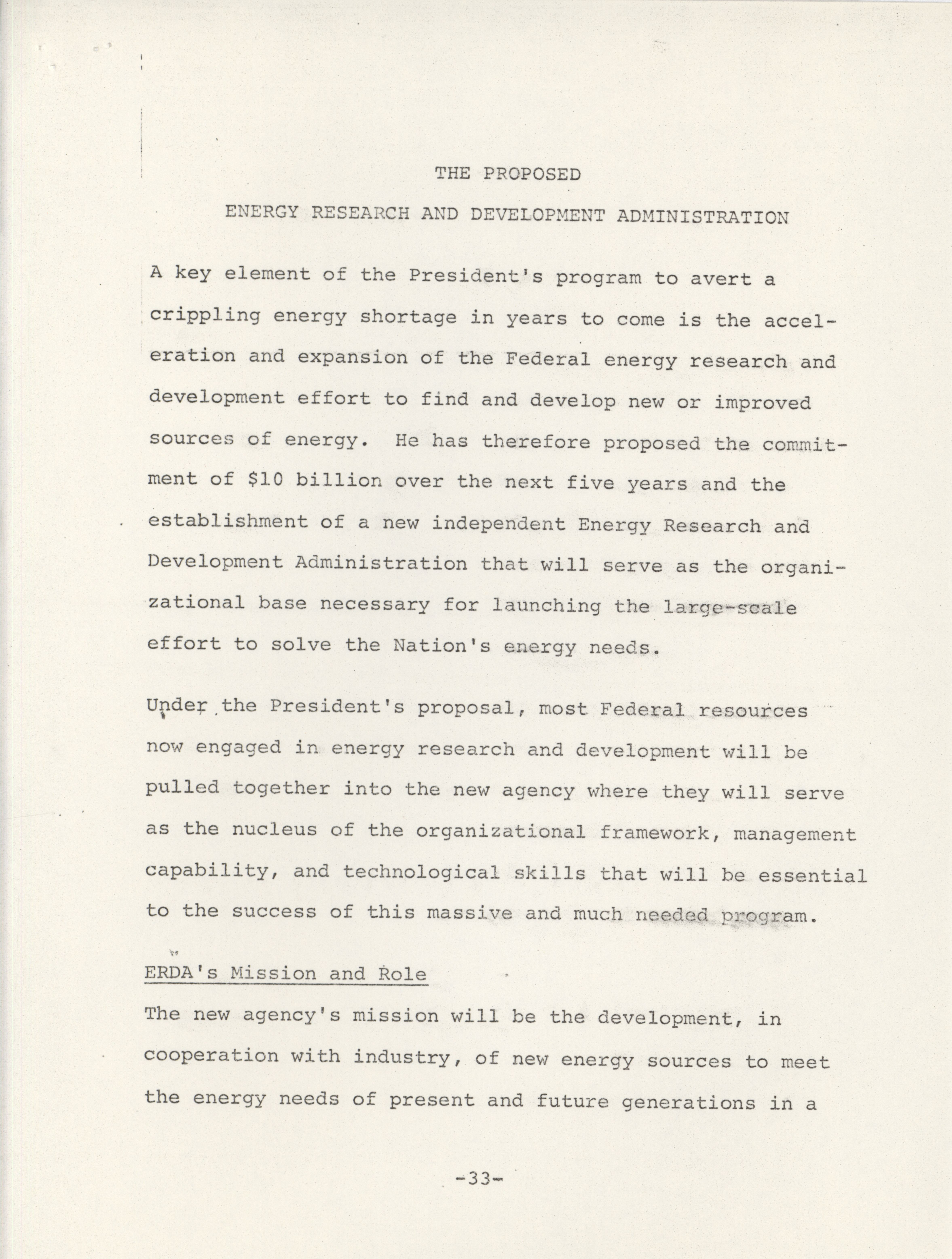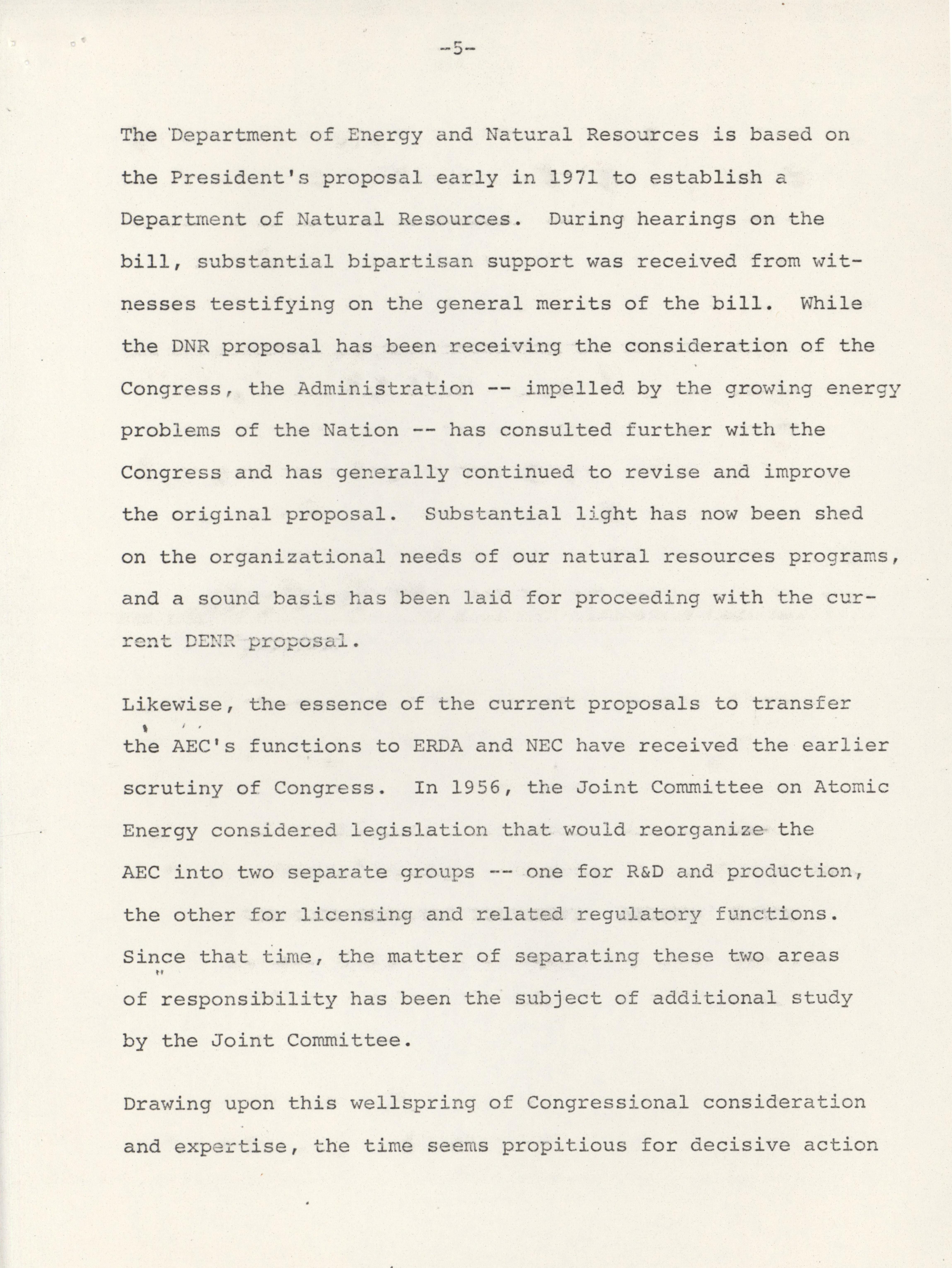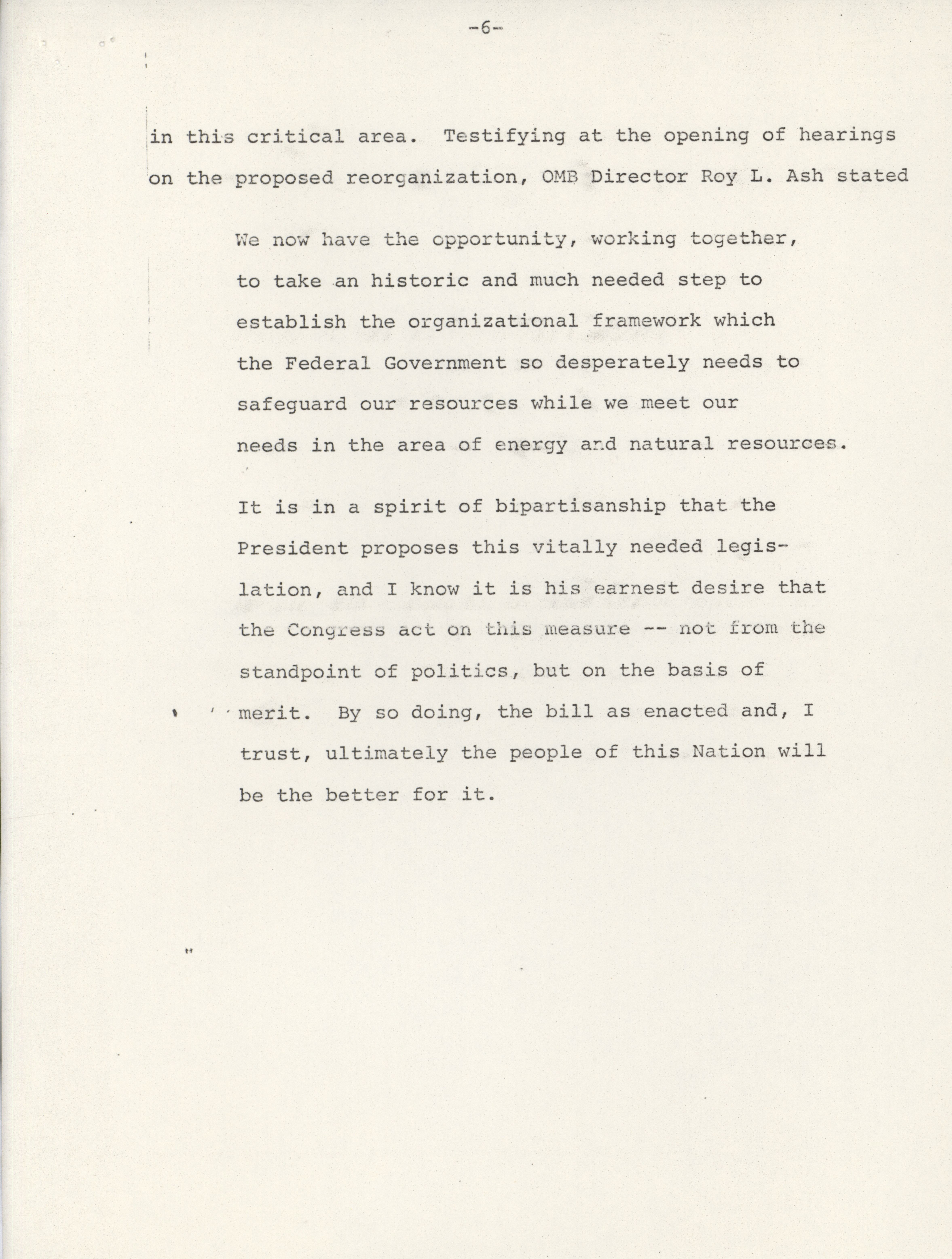 - OMB. "President's proposals for reorganizing the energy and natural resources programs of the federal government," annotated draft, 1973