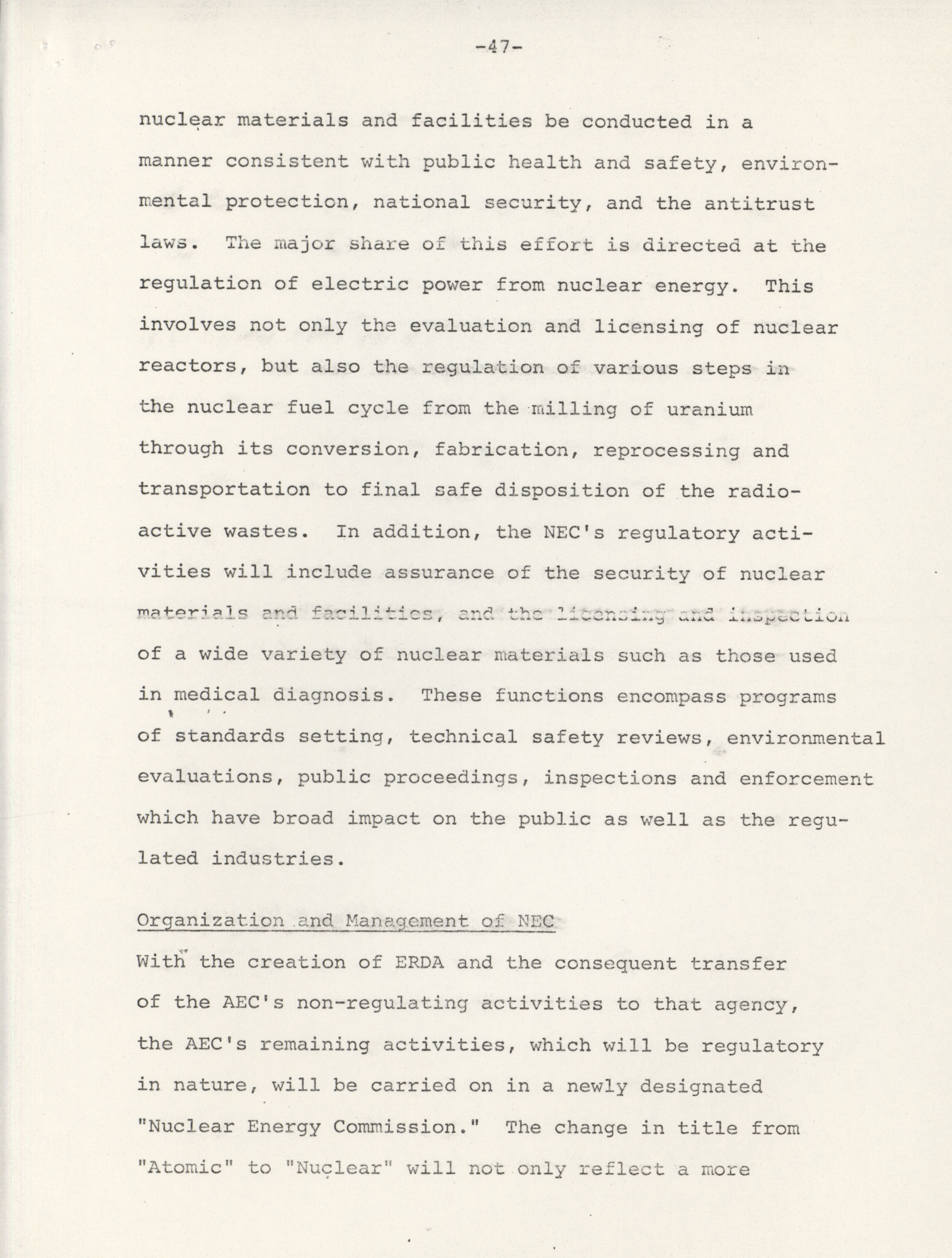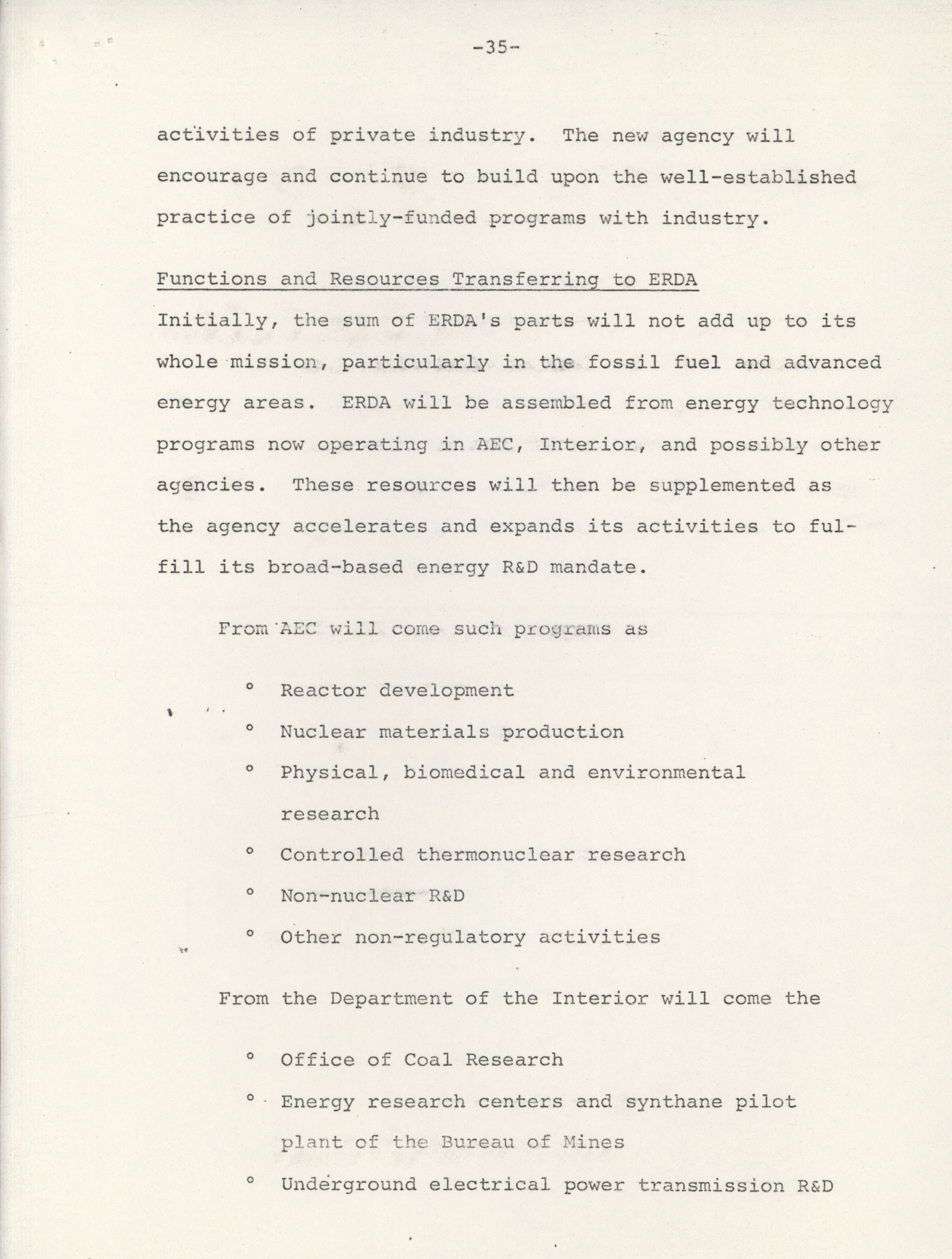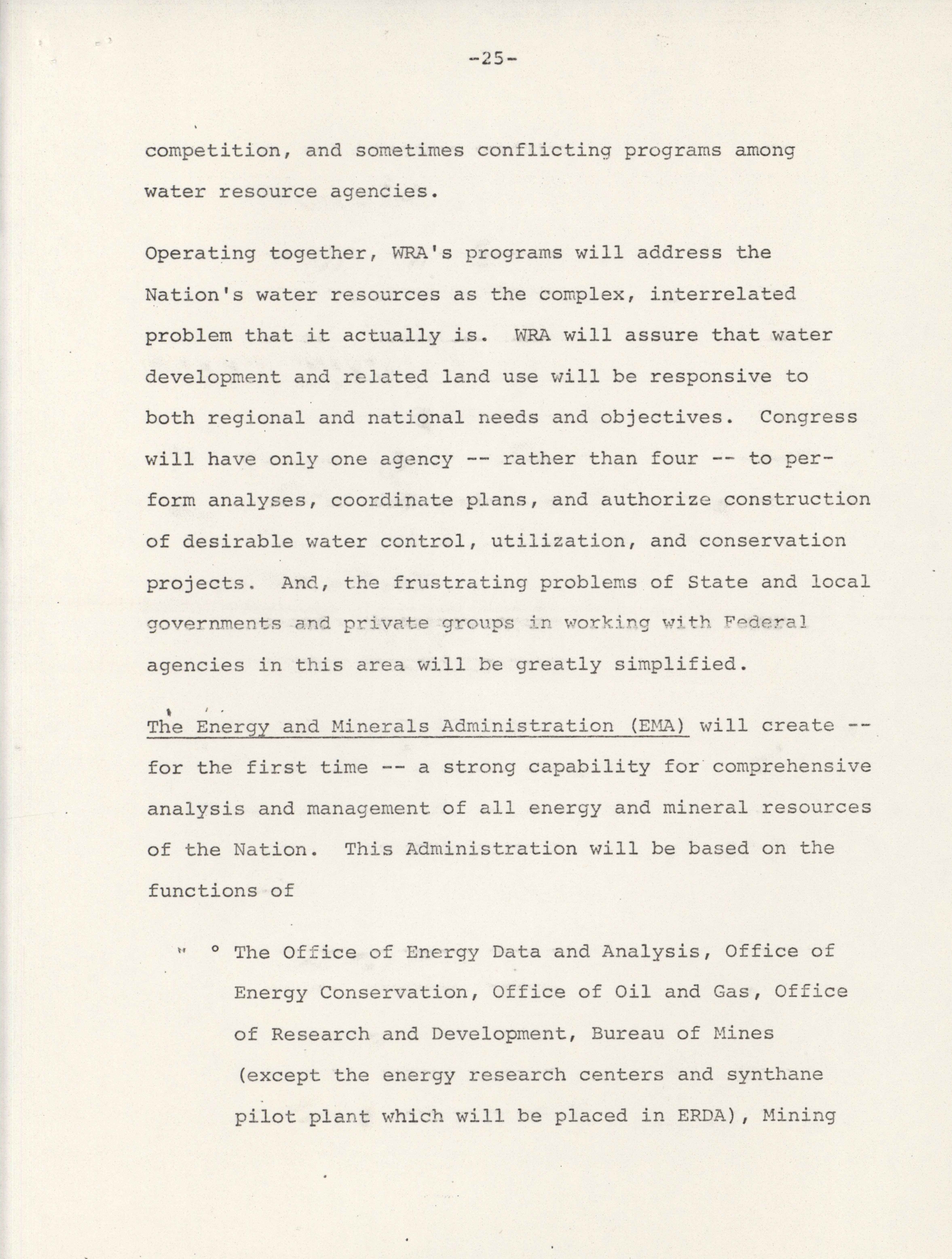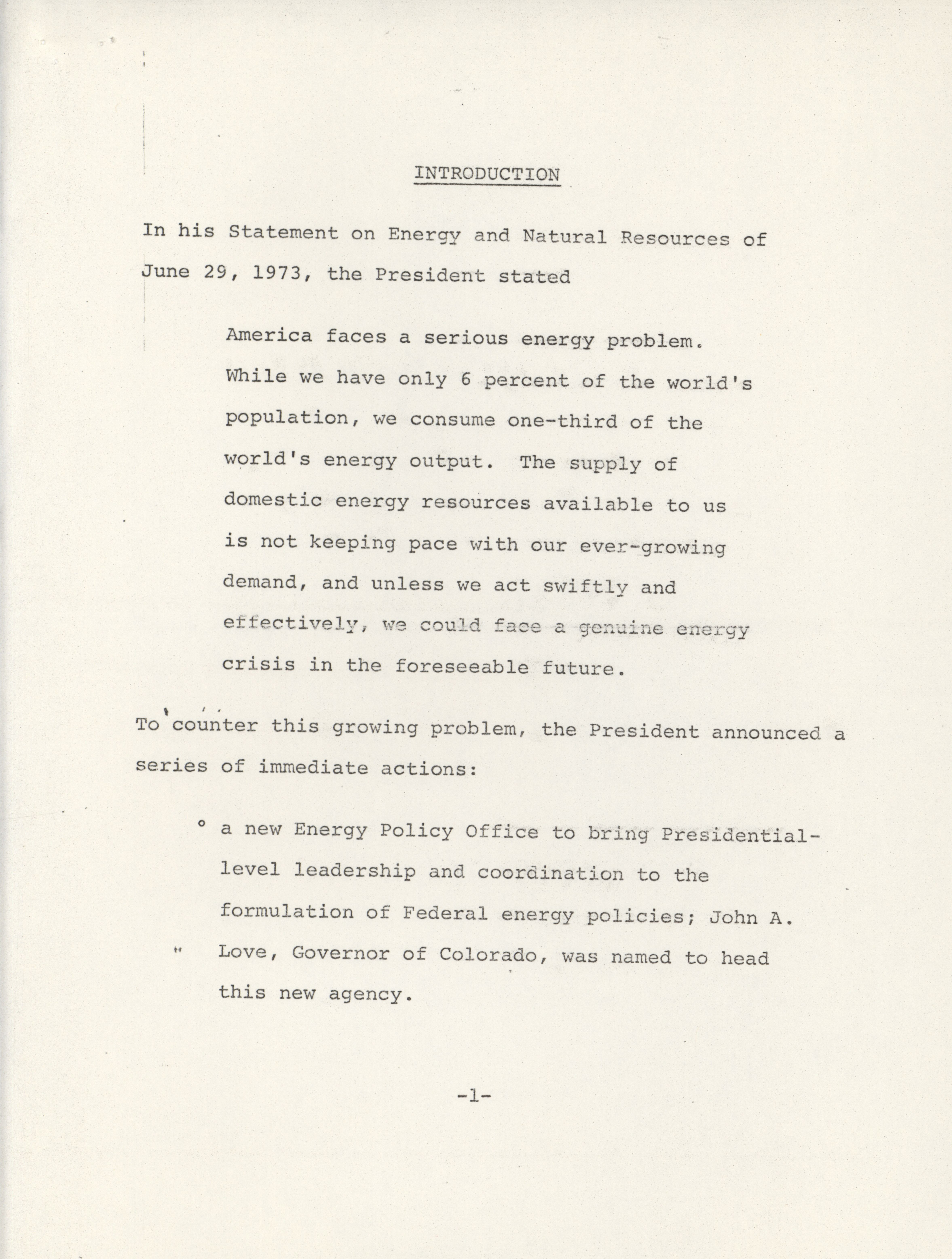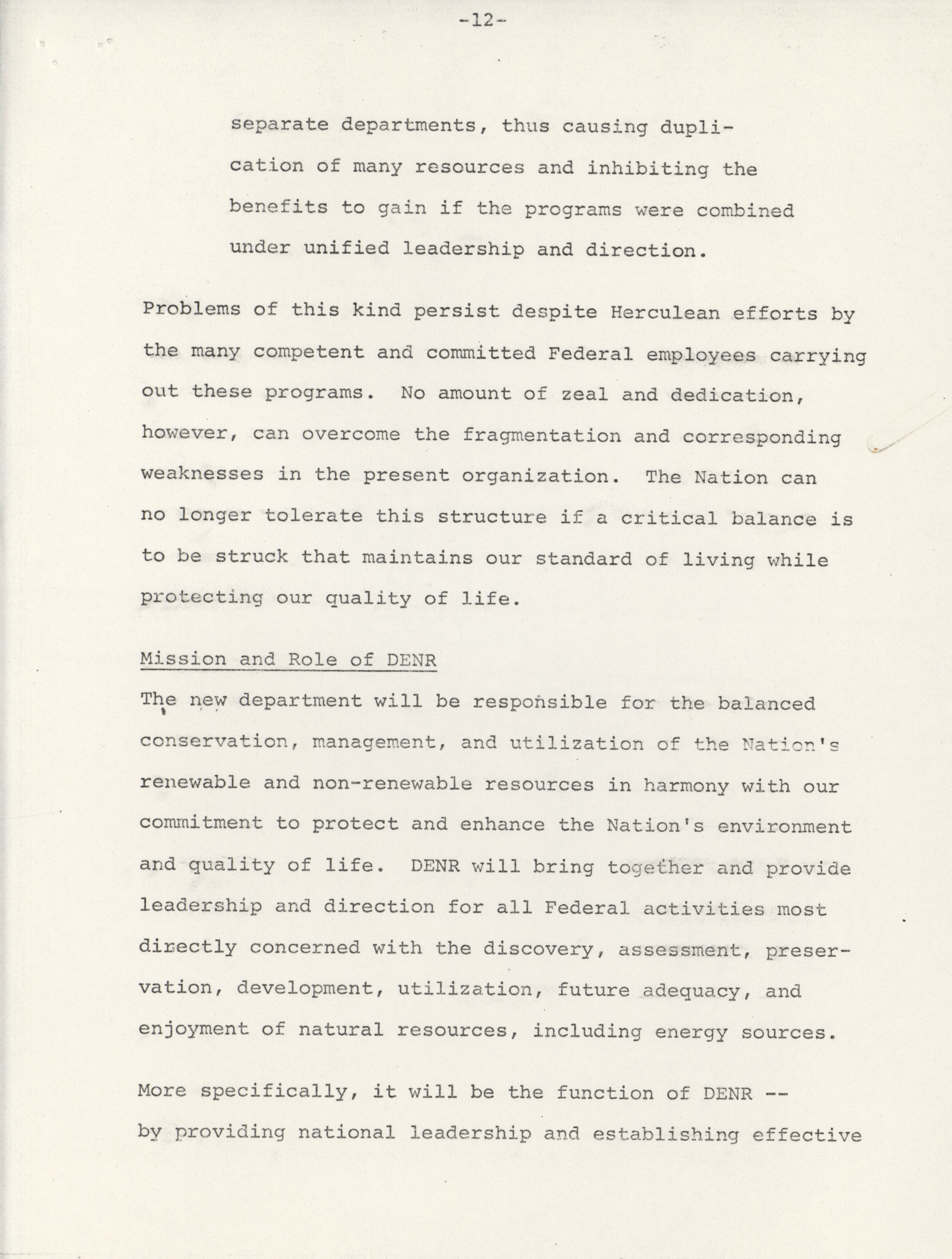 - OMB. "President's proposals for reorganizing the energy and natural resources programs of the federal government," annotated draft, 1973