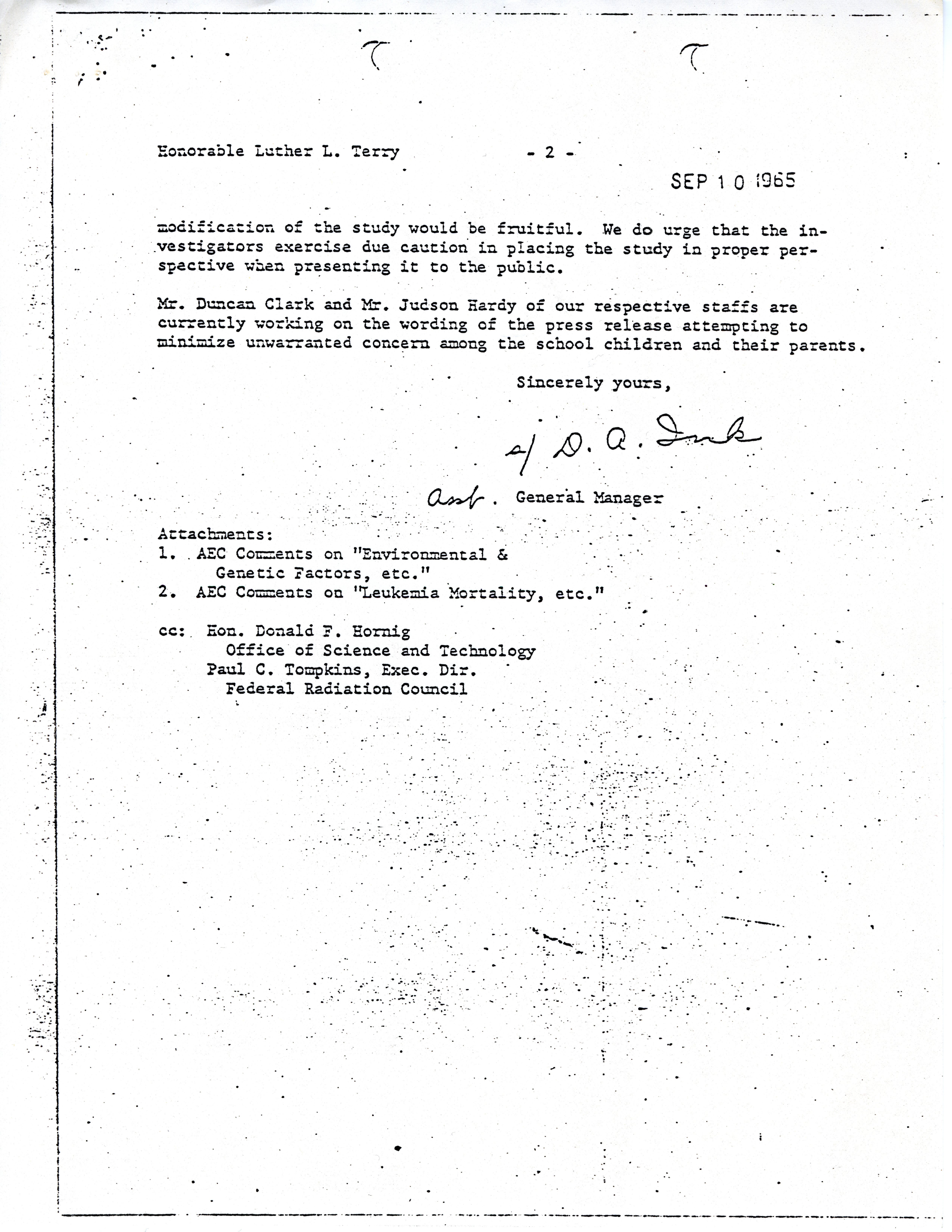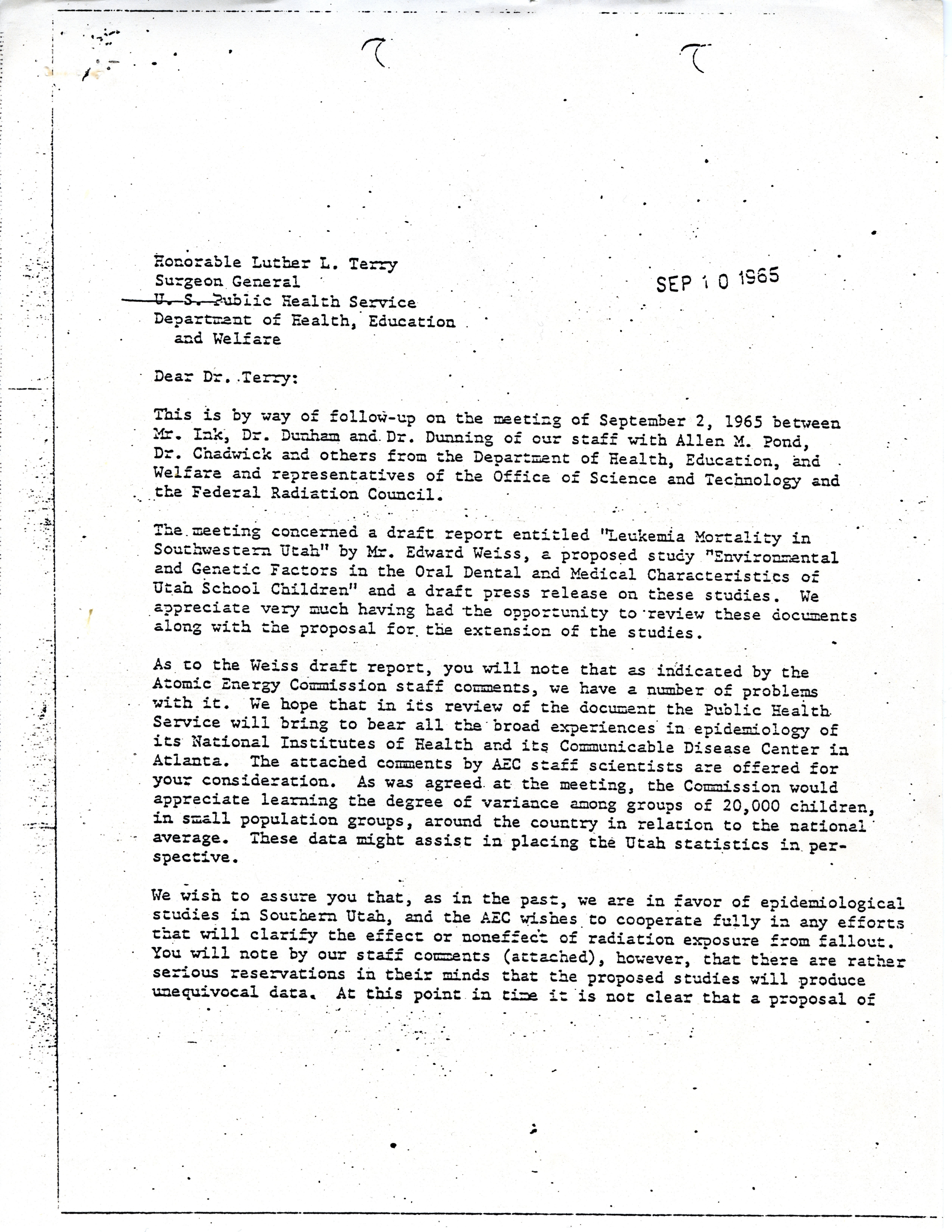 - Dwight A. Ink letter to Dr. Luther L. Terry, September 10, 1965