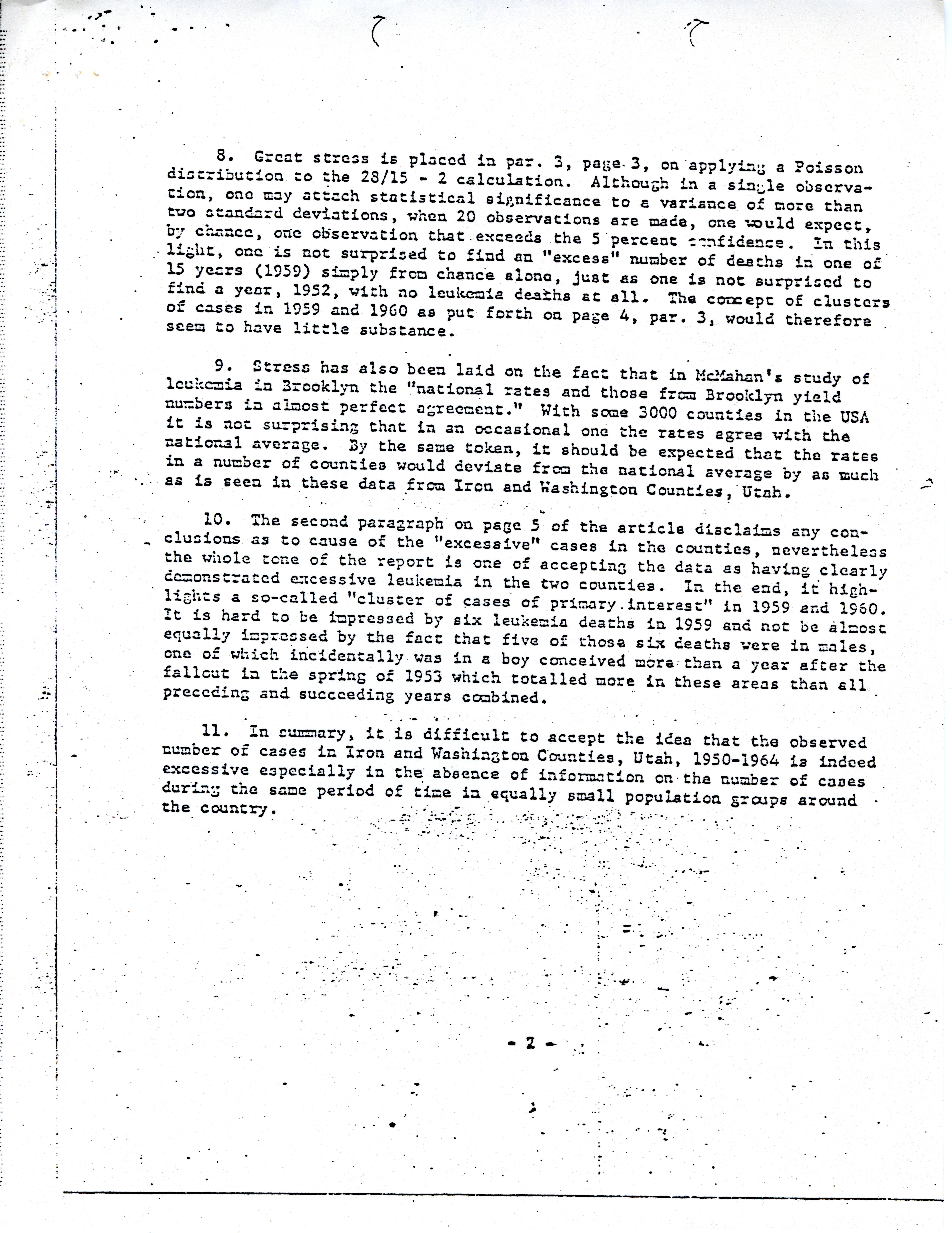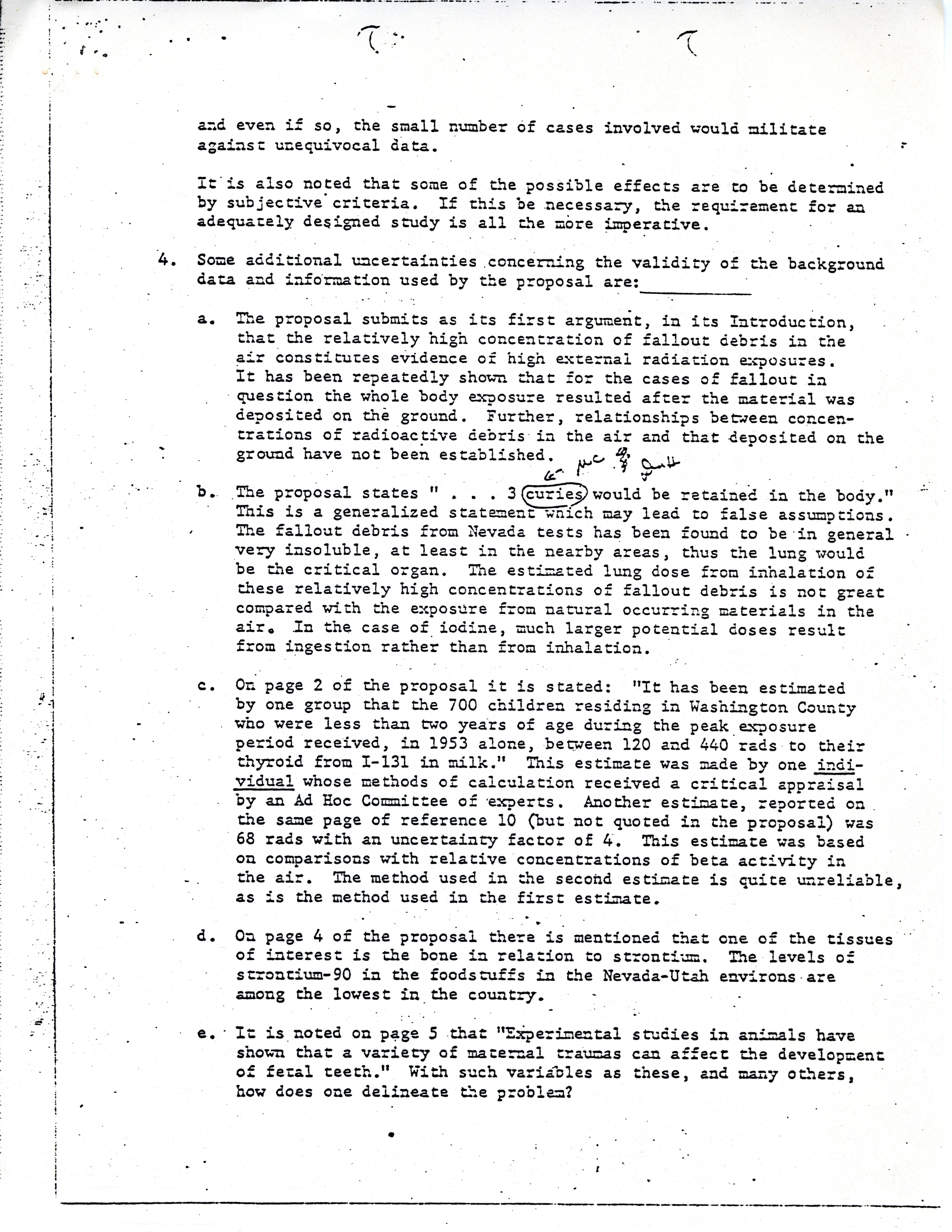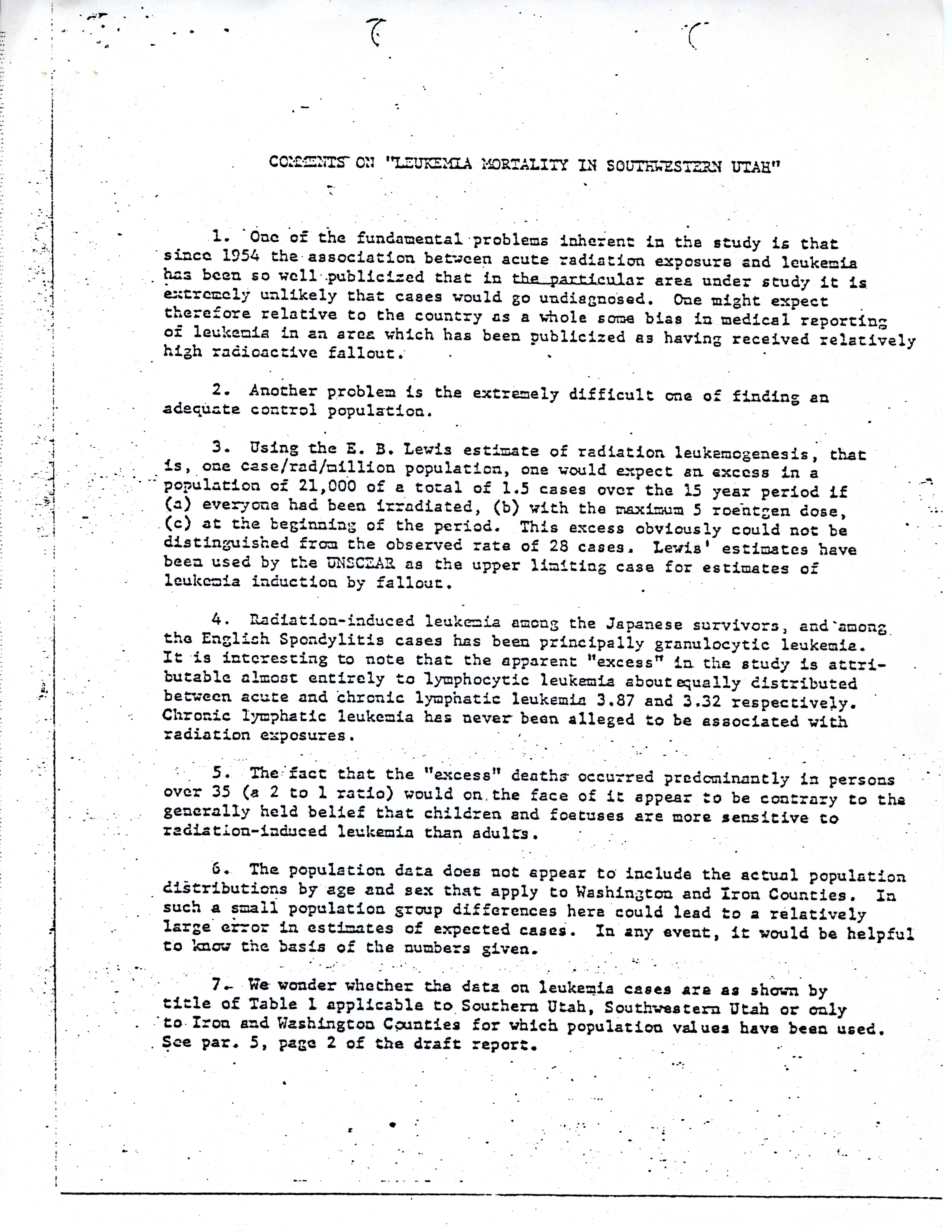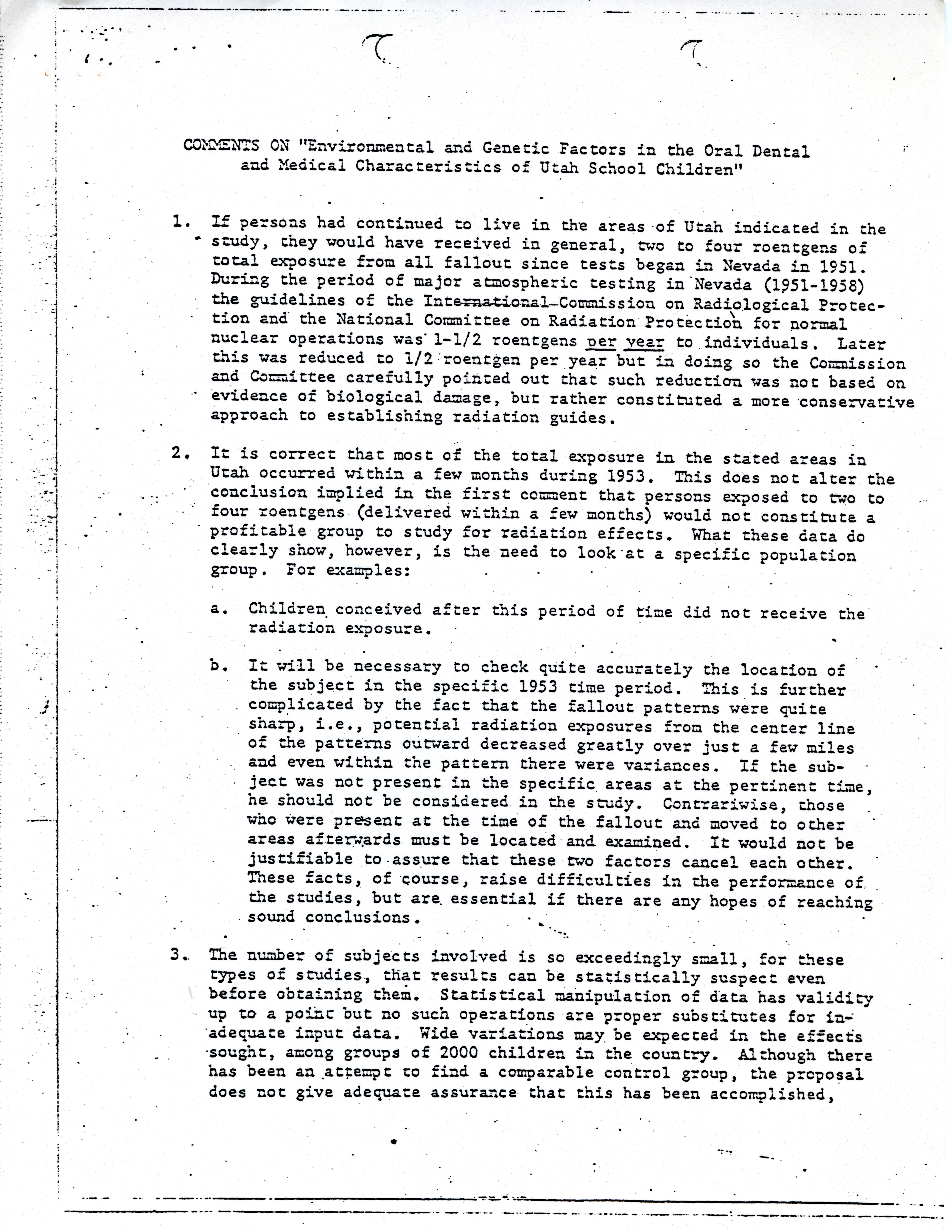 - Annotation: This letter has two attachments containing Atomic Energy Commission staff comments on two reports about health effects of environmental radiation effects on Utah school-age children.