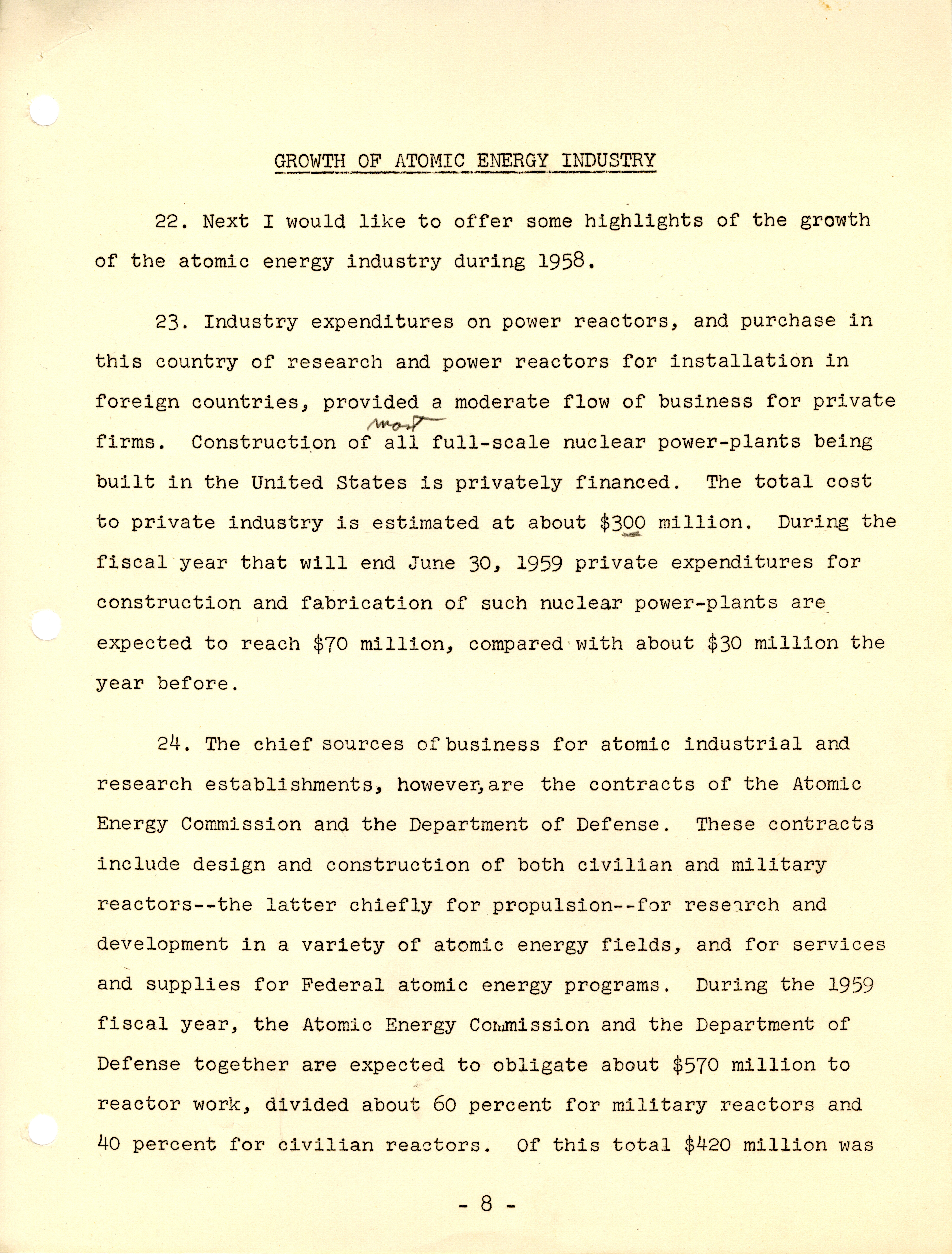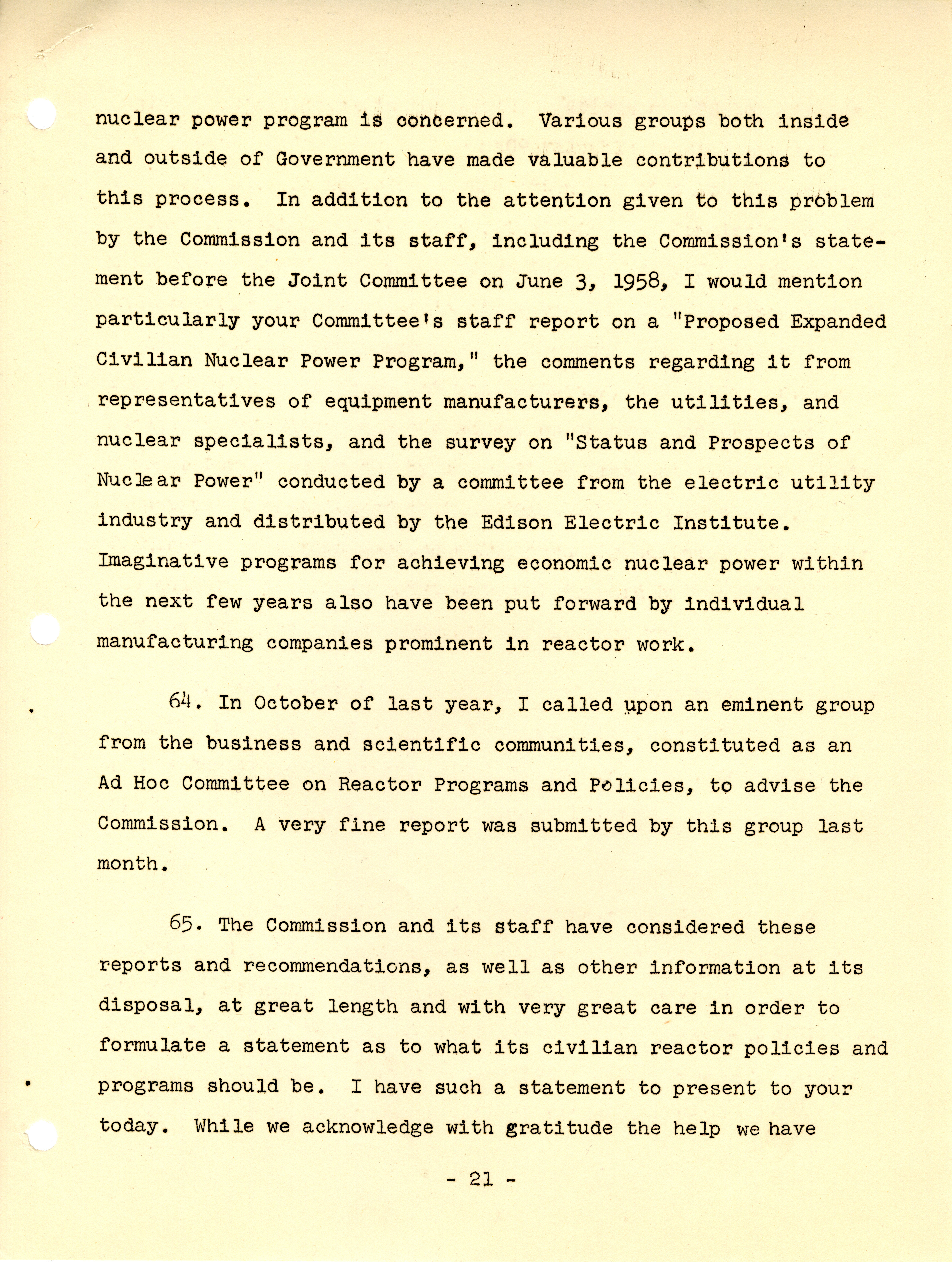 - "Testimony by Chairman John A. McCone, U.S. Atomic Energy Commission before Joint Committee on Atomic Energy, U.S. Congress, at hearings pursuant to Section 202, Atomic Energy Act of 1954, February 17, 1959", Dwight Ink Collection, Iowa State University Library Digital Collections