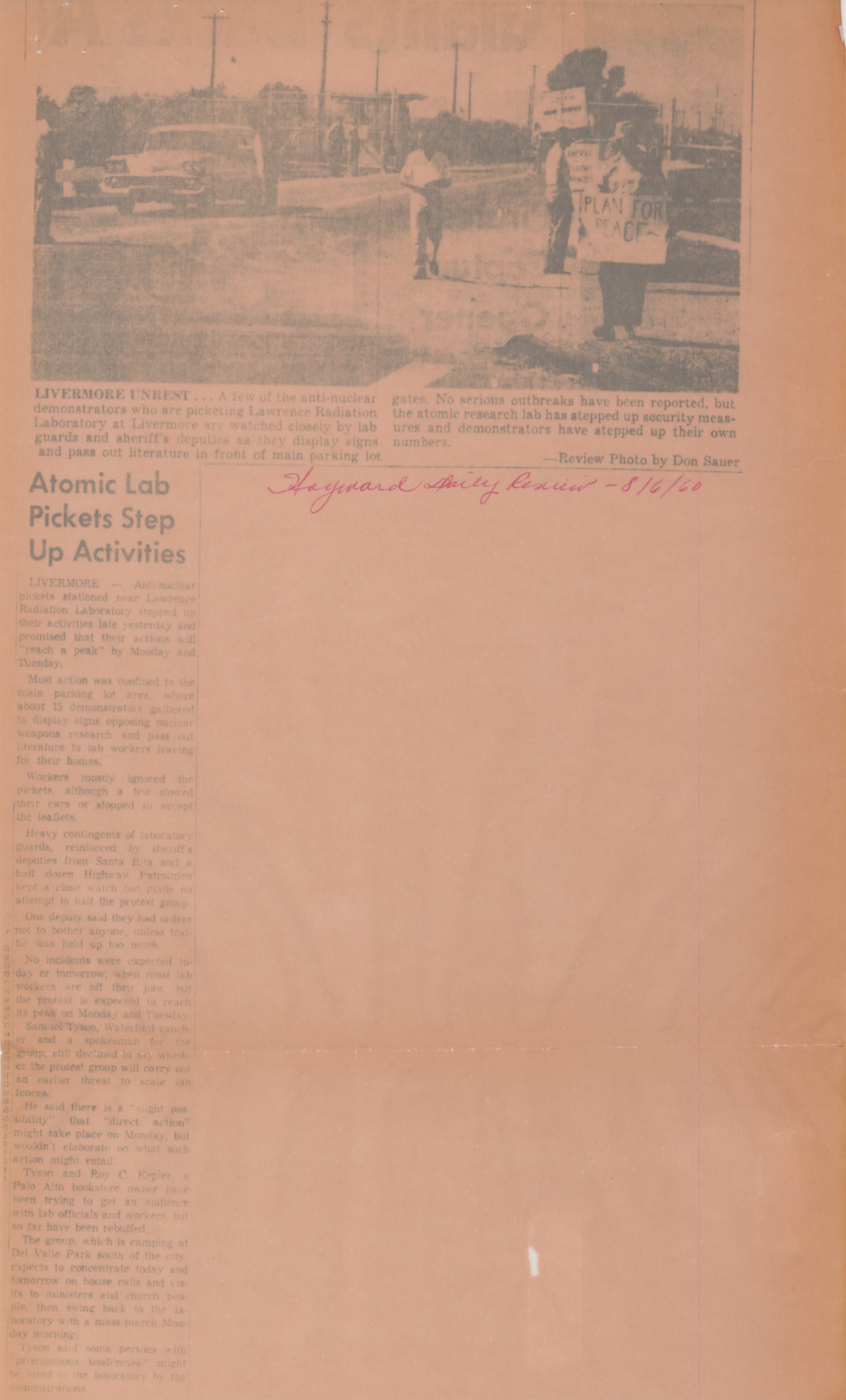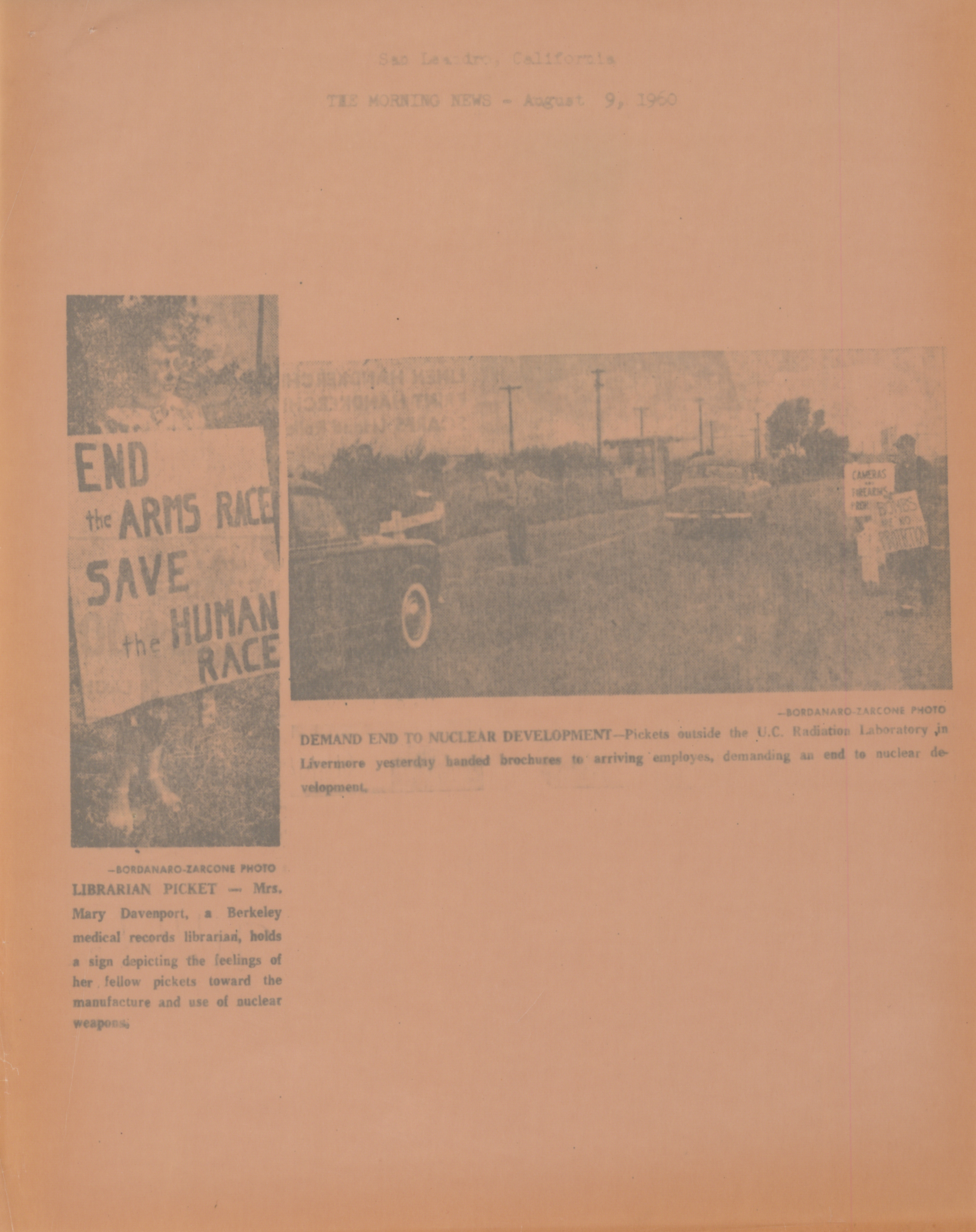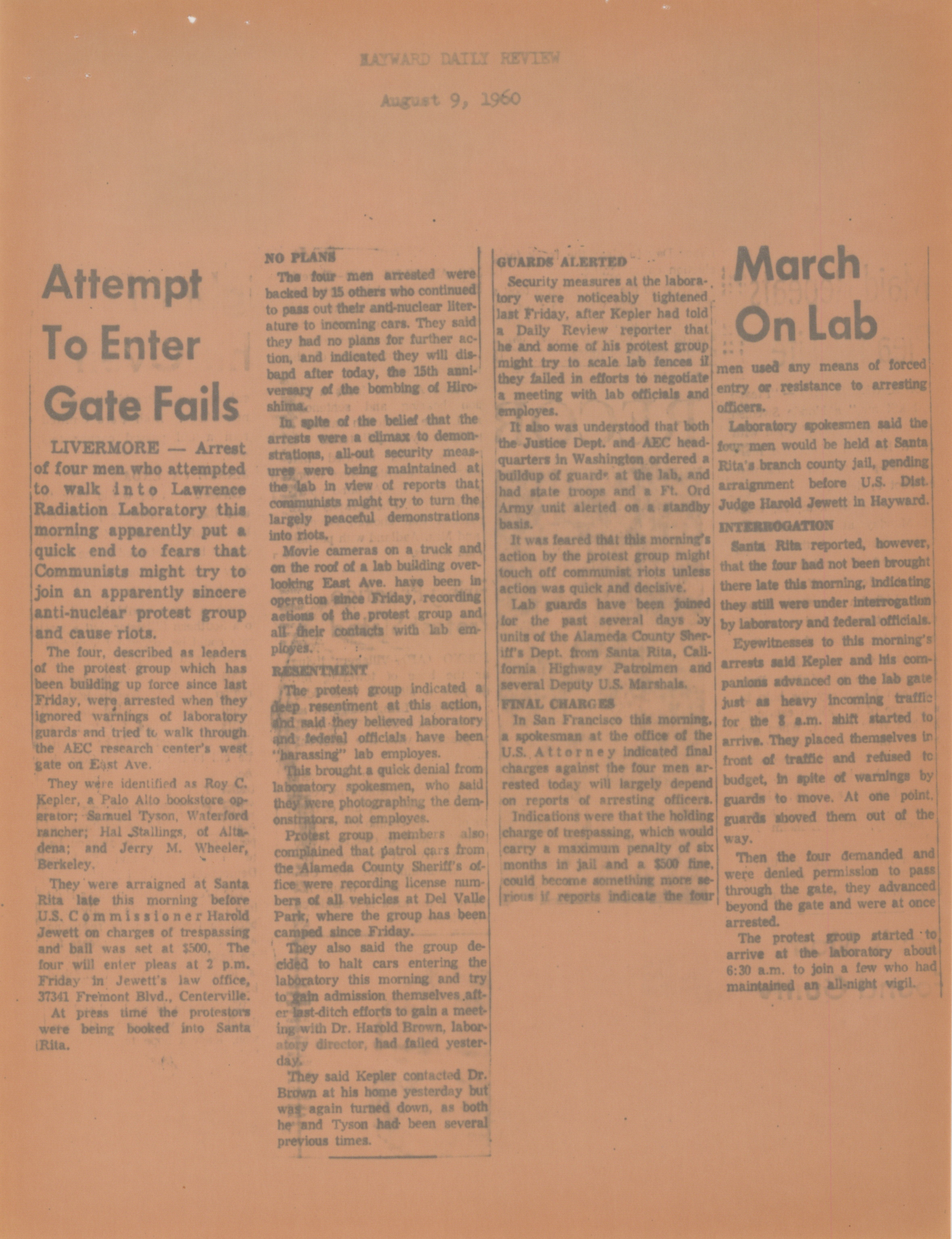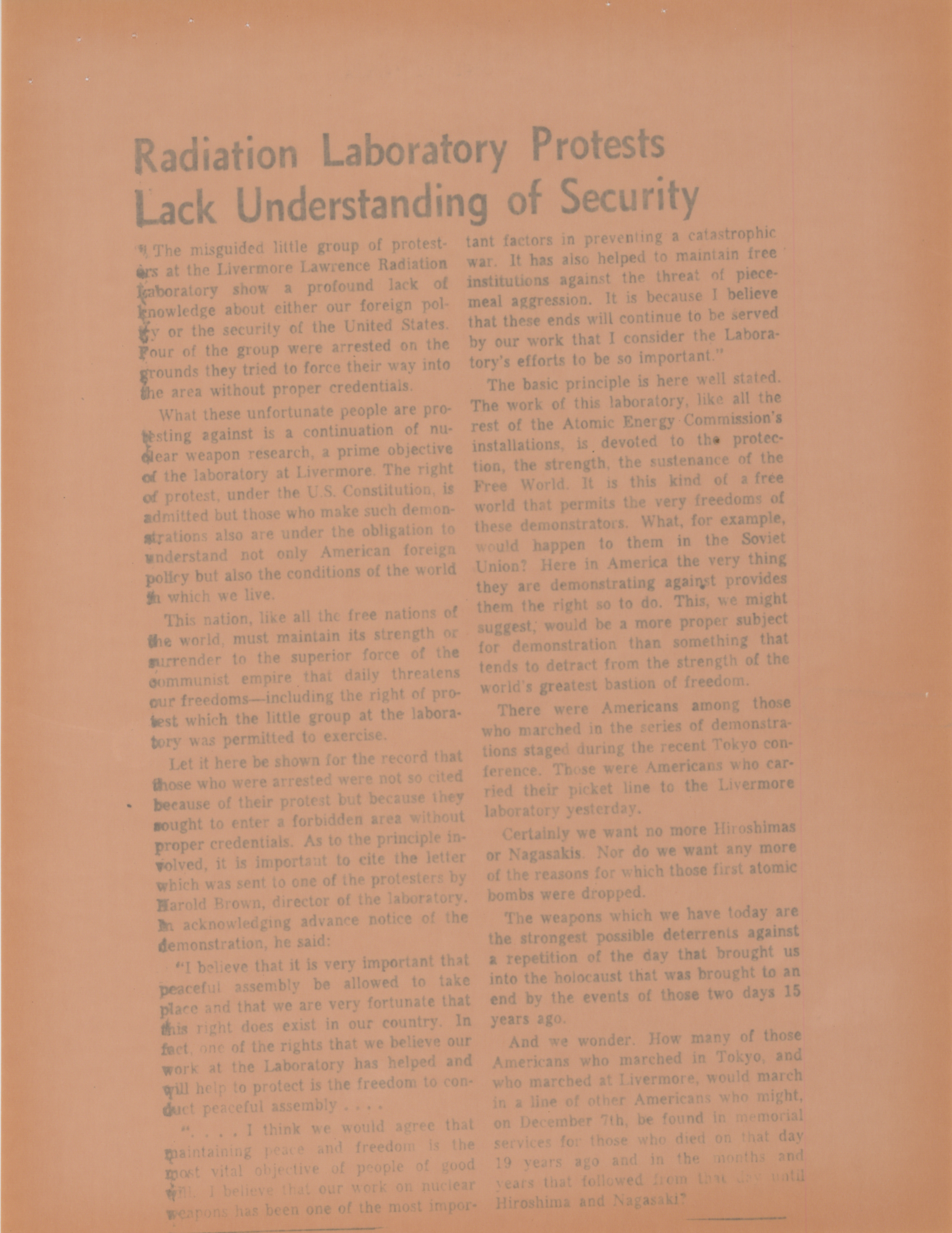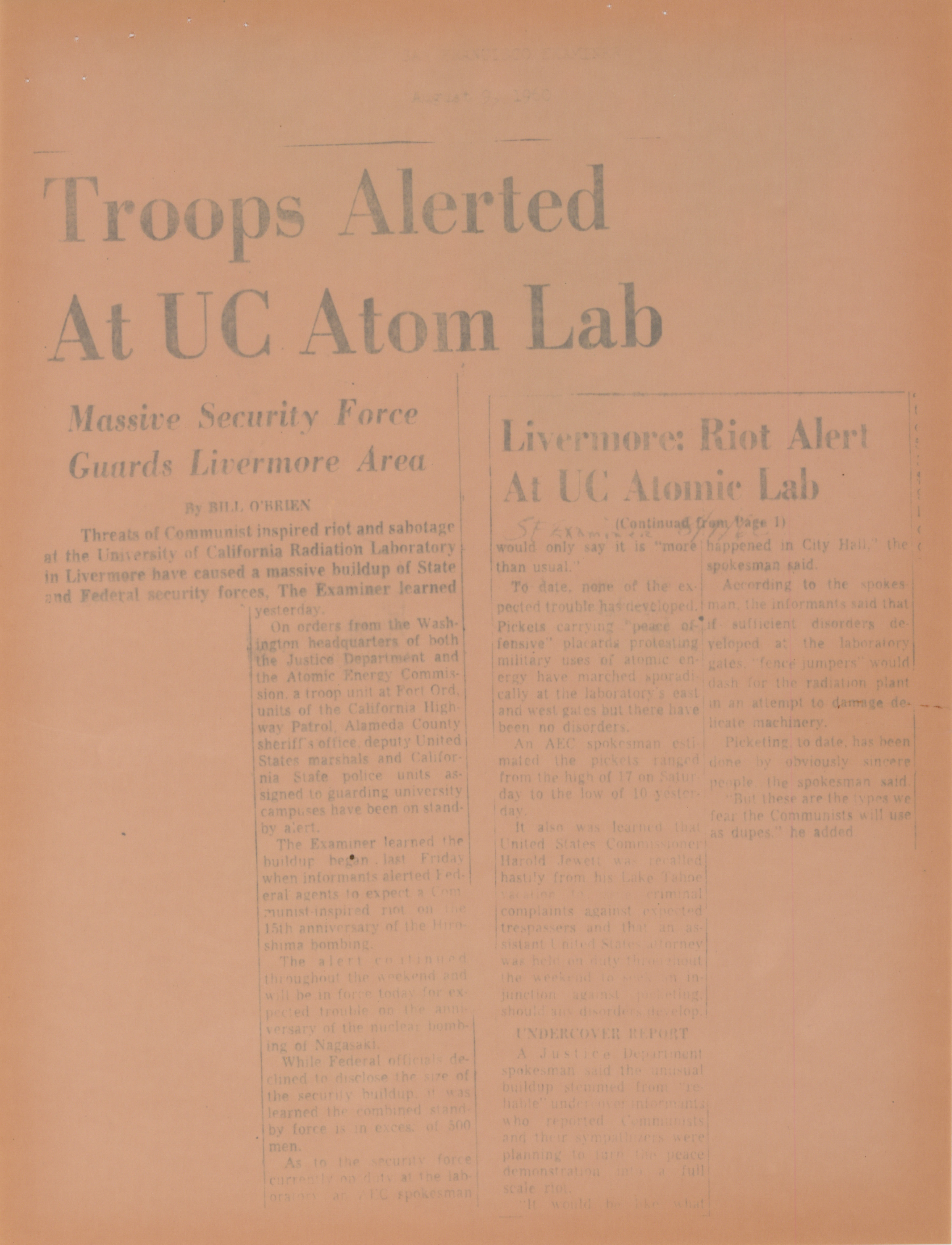 - "News clippings on Lawrence Radiation Laboratory, Livermore demonstration", Dwight Ink Collection, Iowa State University Library Digital Collections