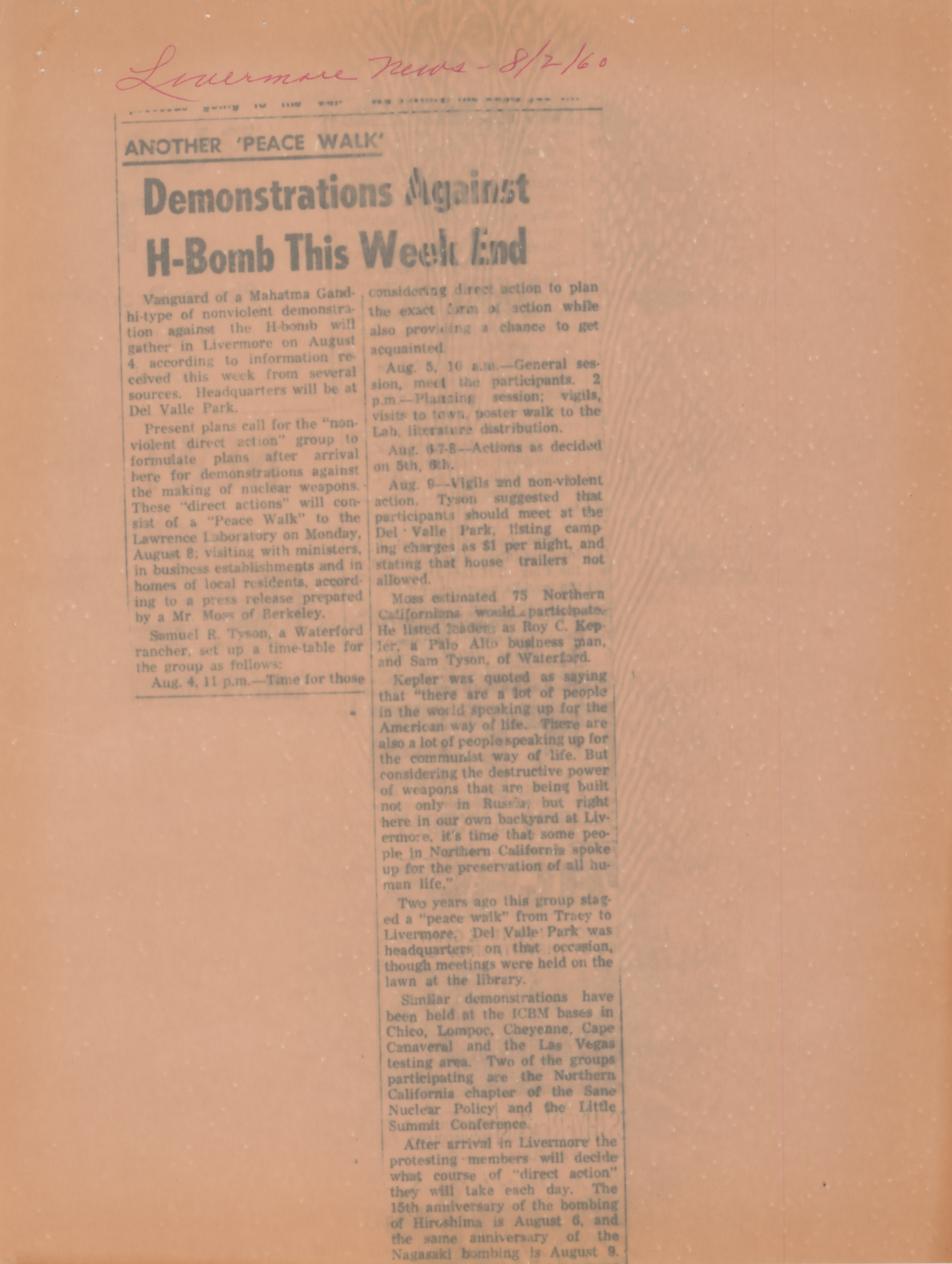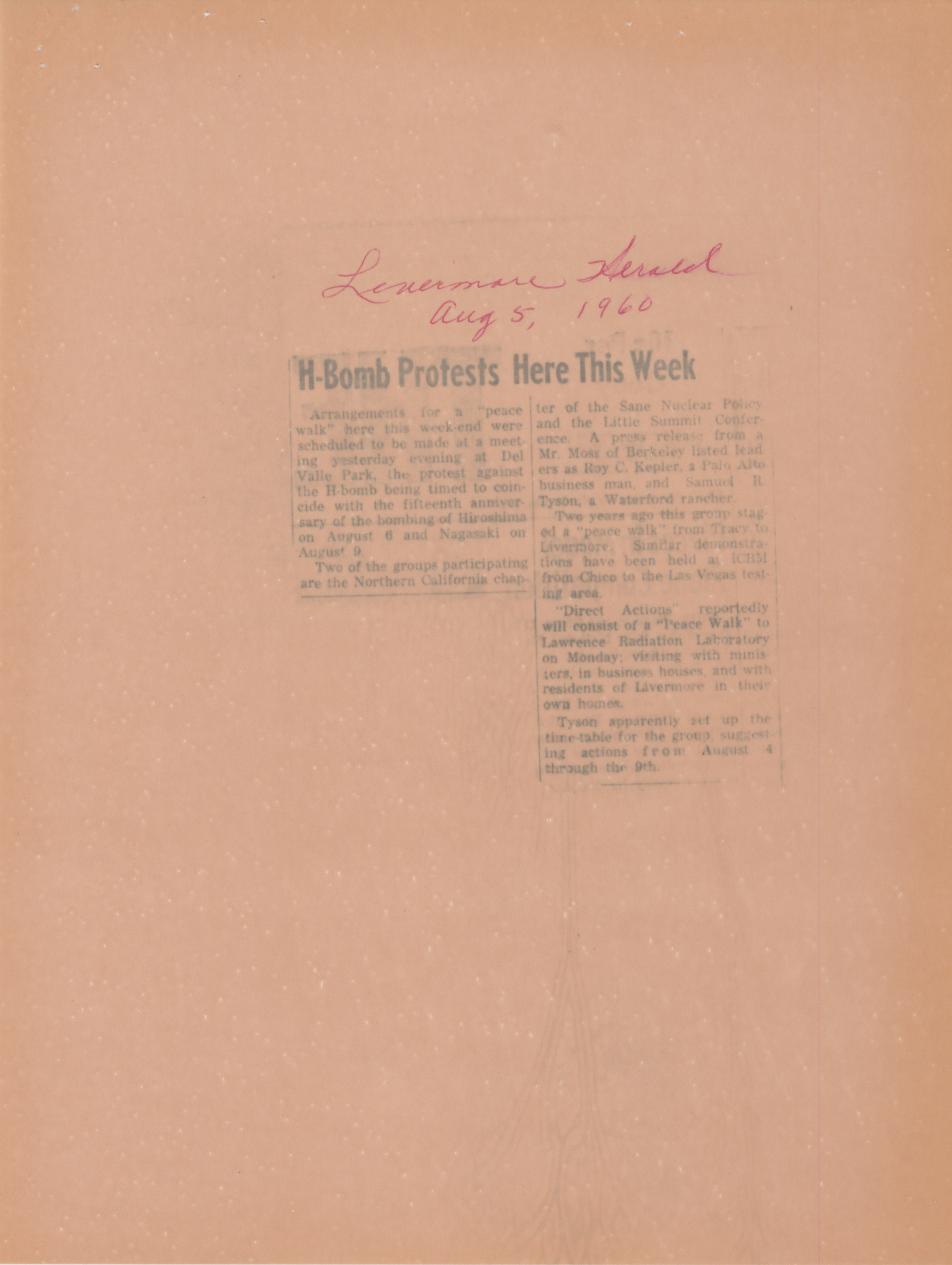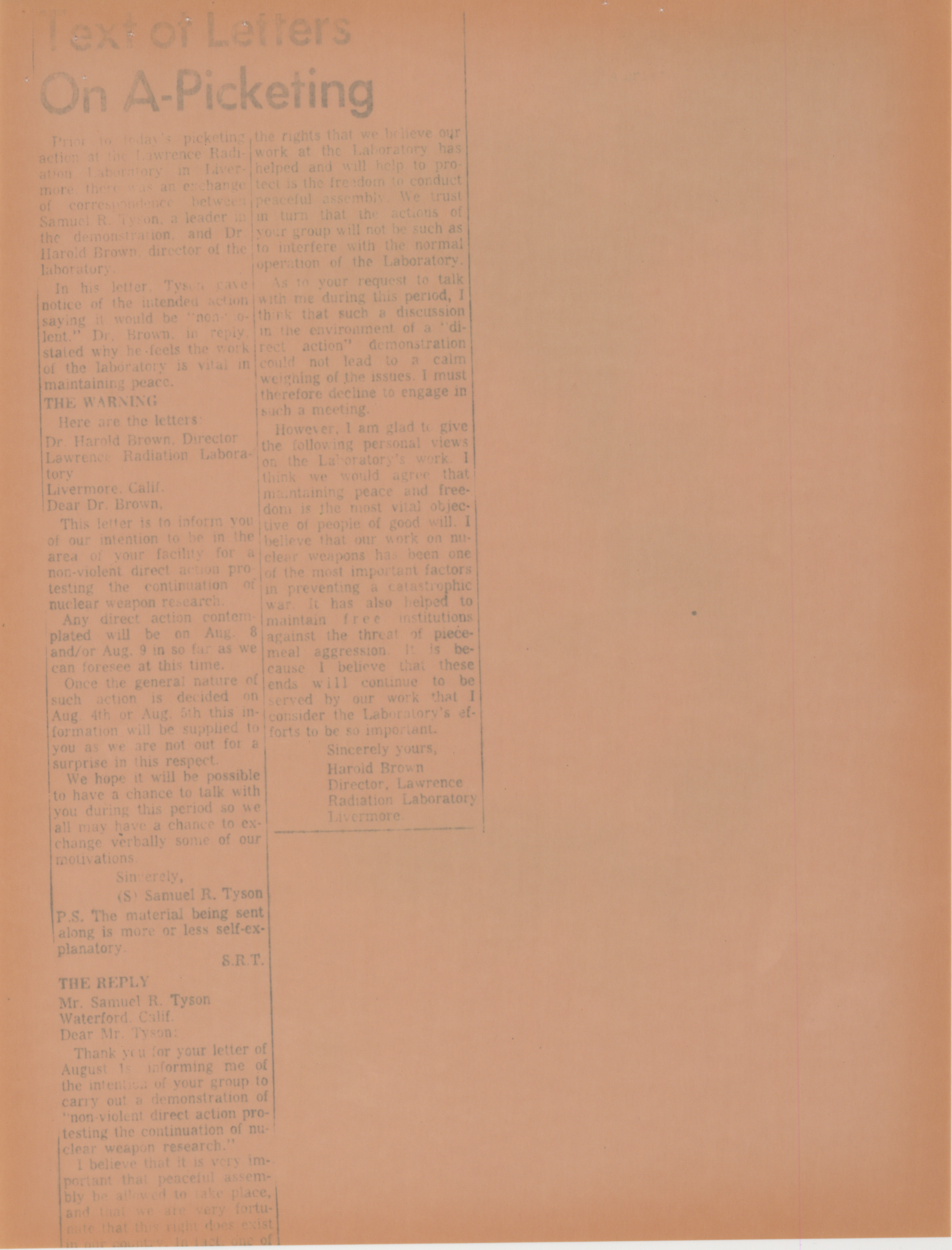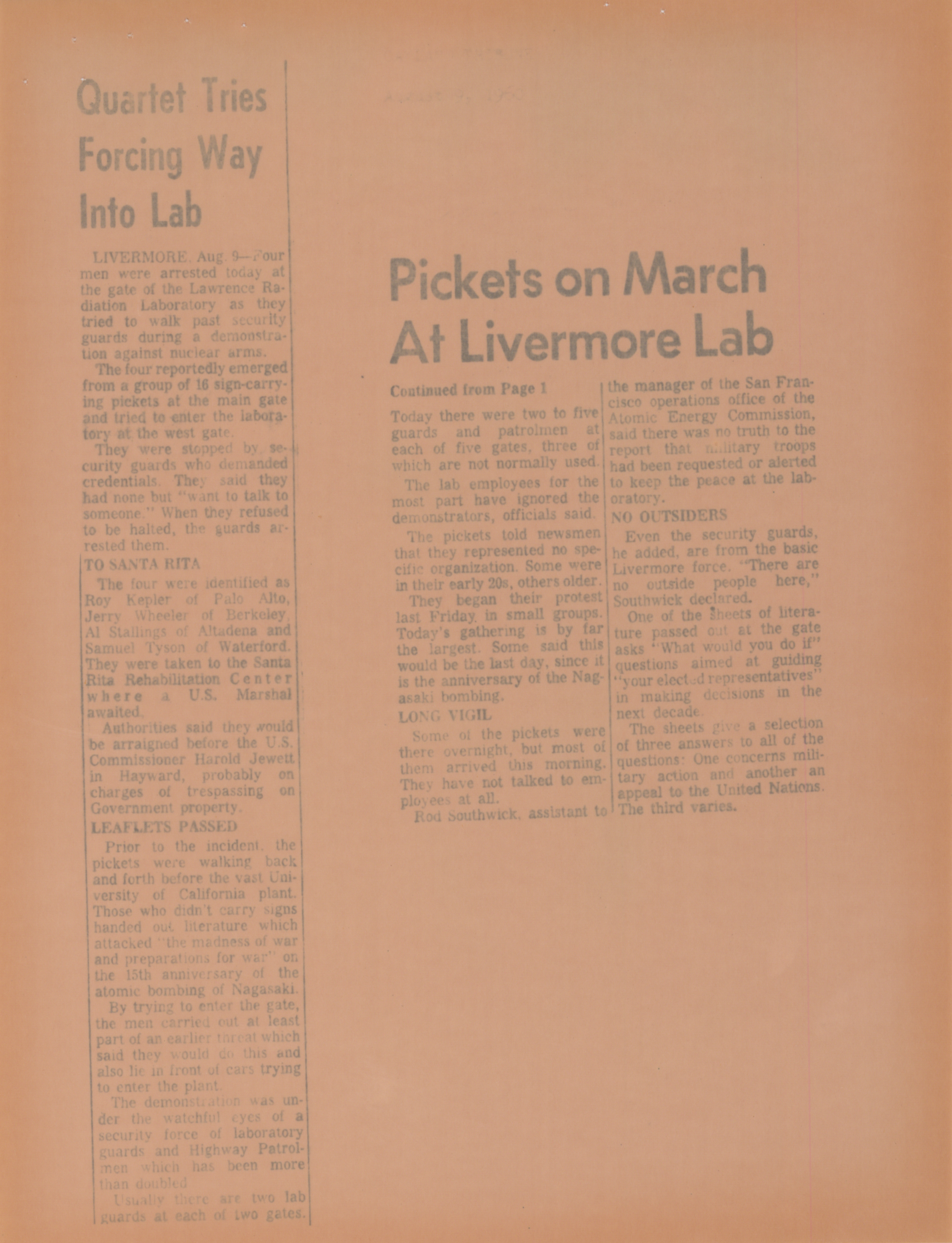 - "News clippings on Lawrence Radiation Laboratory, Livermore demonstration", Dwight Ink Collection, Iowa State University Library Digital Collections