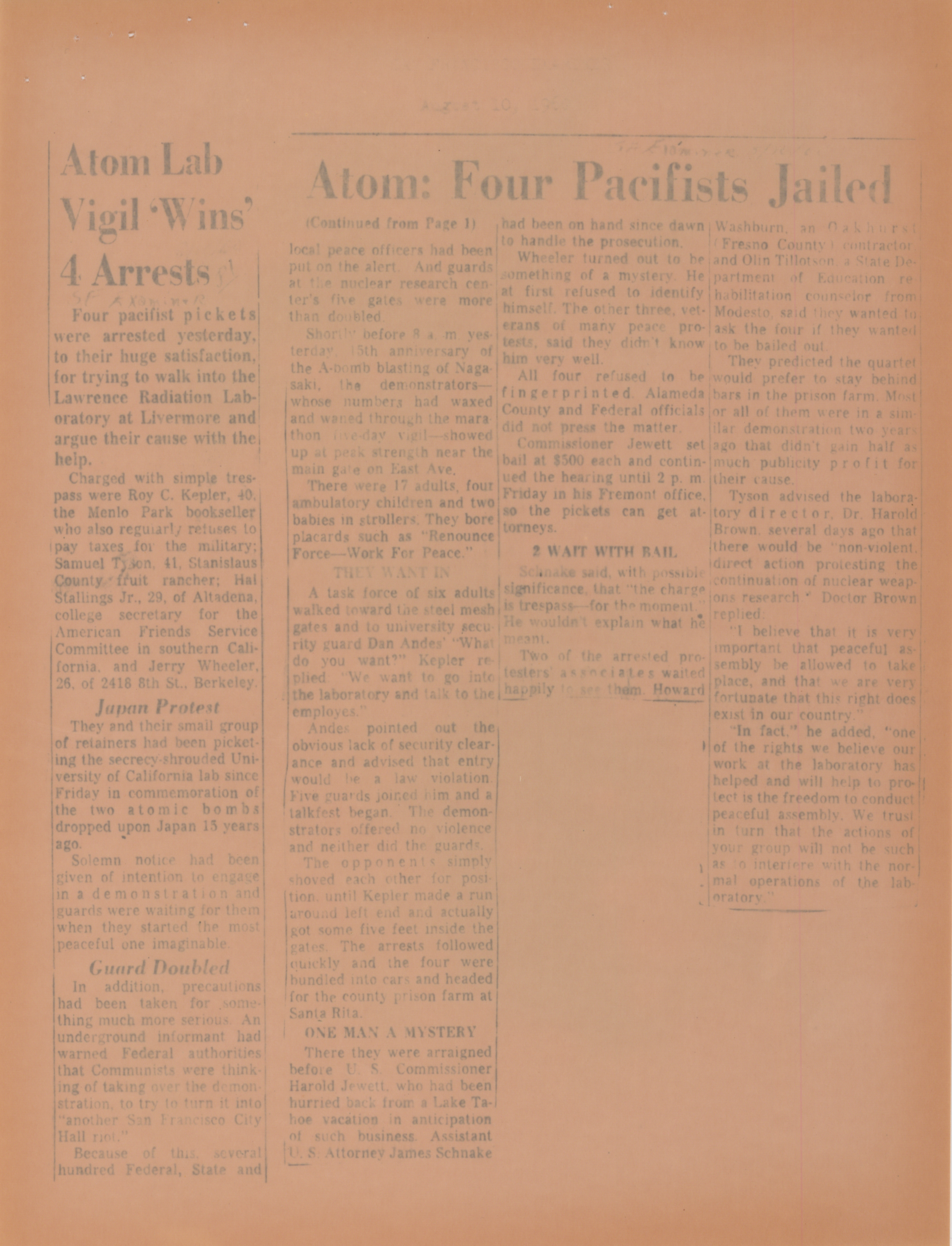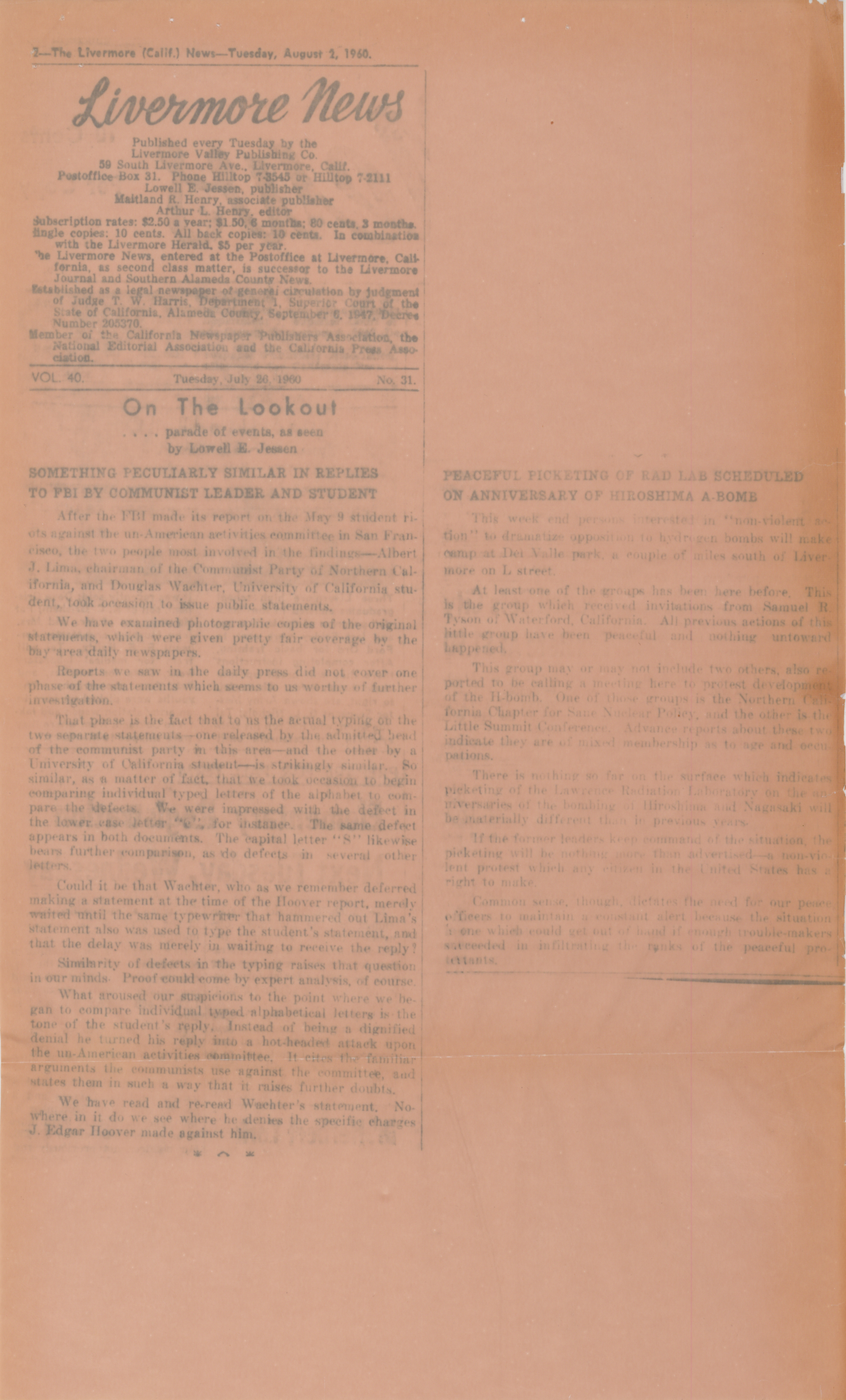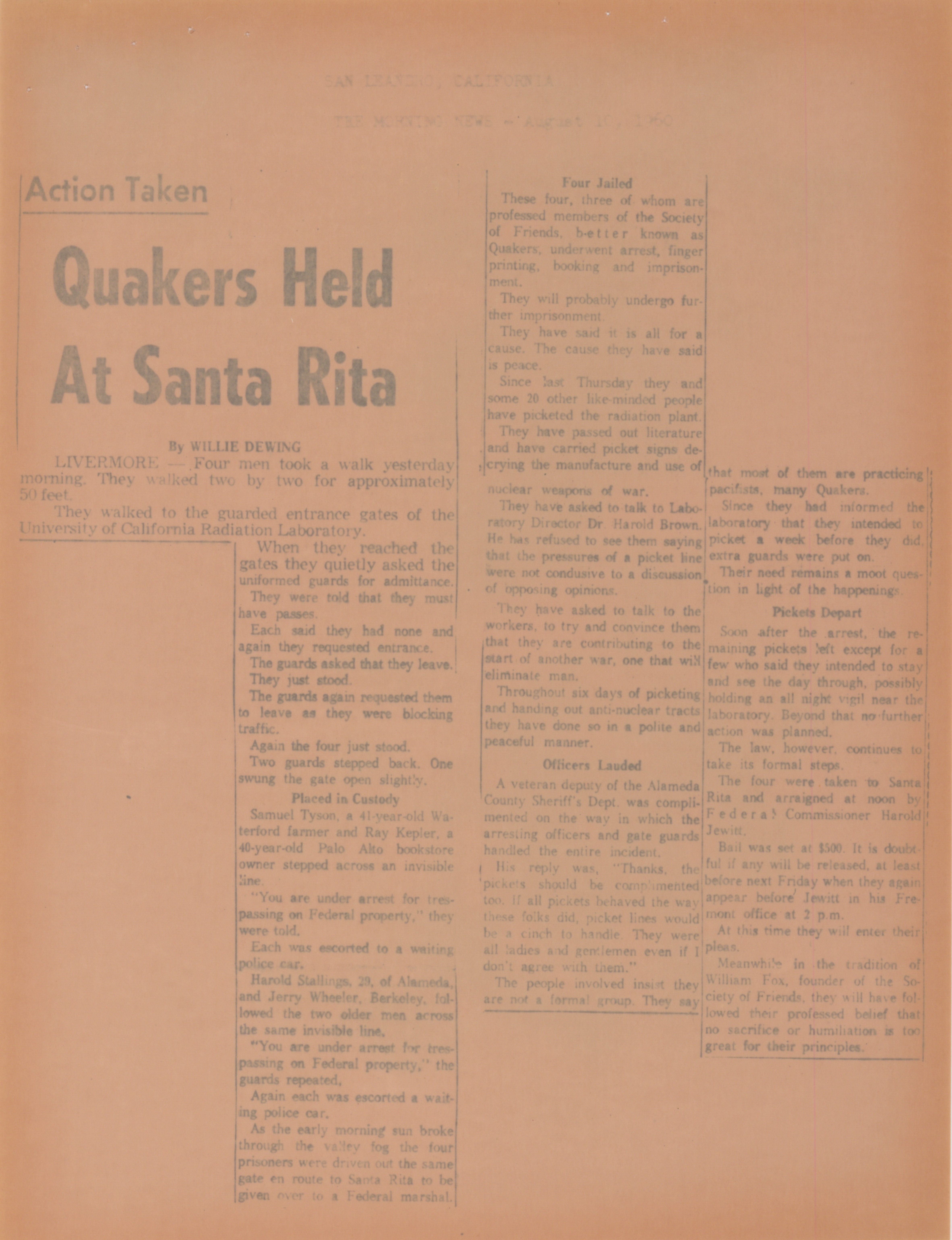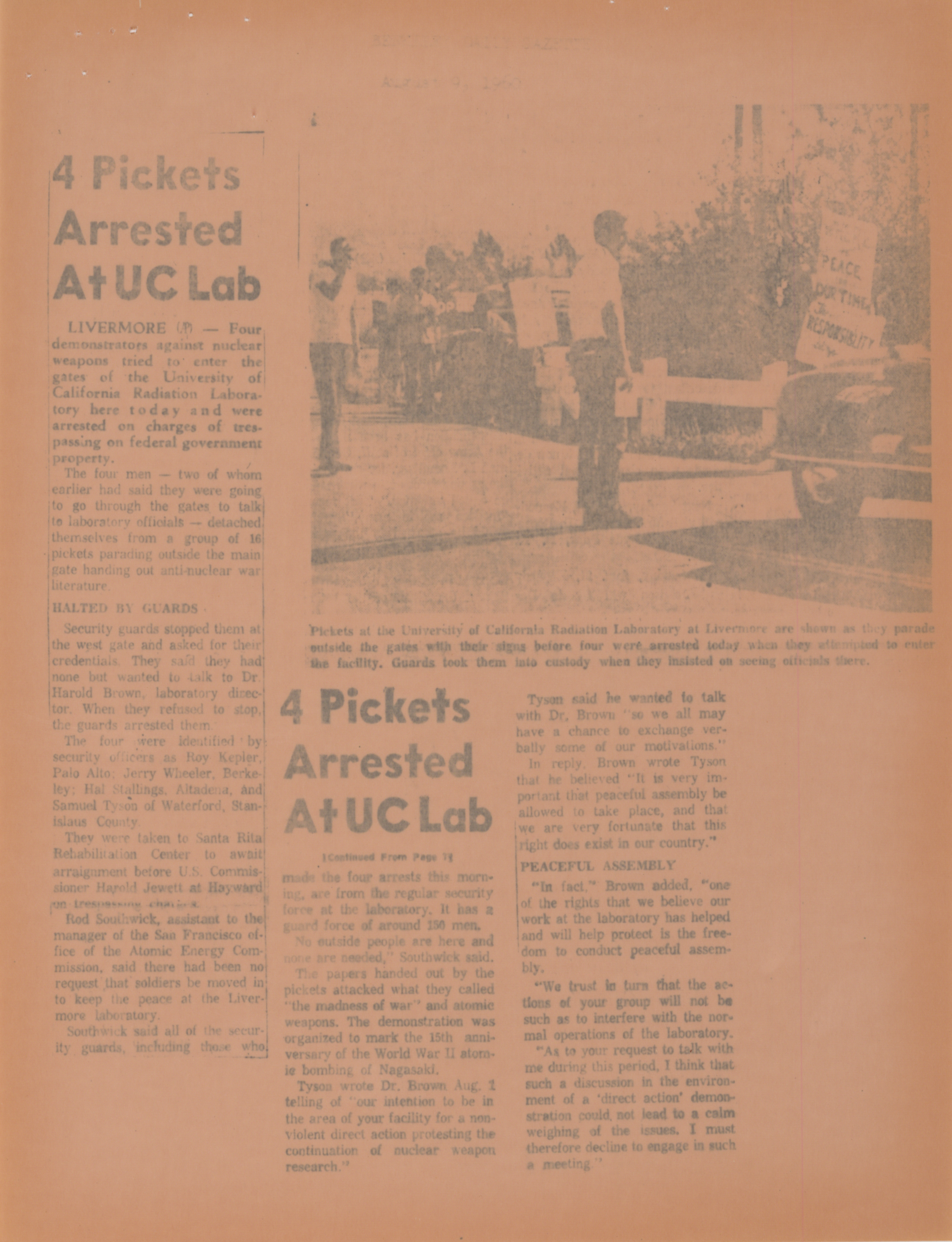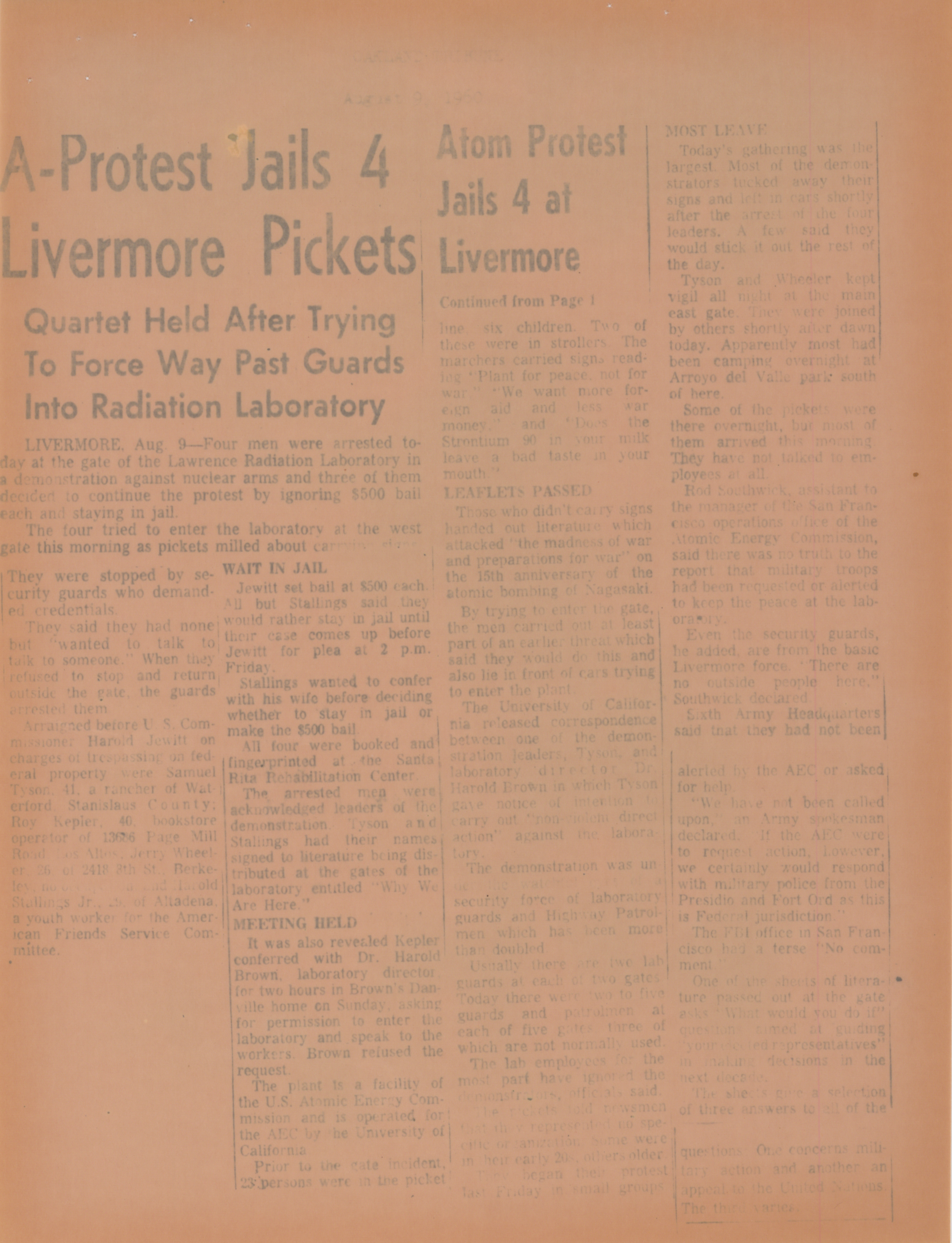 - "News clippings on Lawrence Radiation Laboratory, Livermore demonstration", Dwight Ink Collection, Iowa State University Library Digital Collections