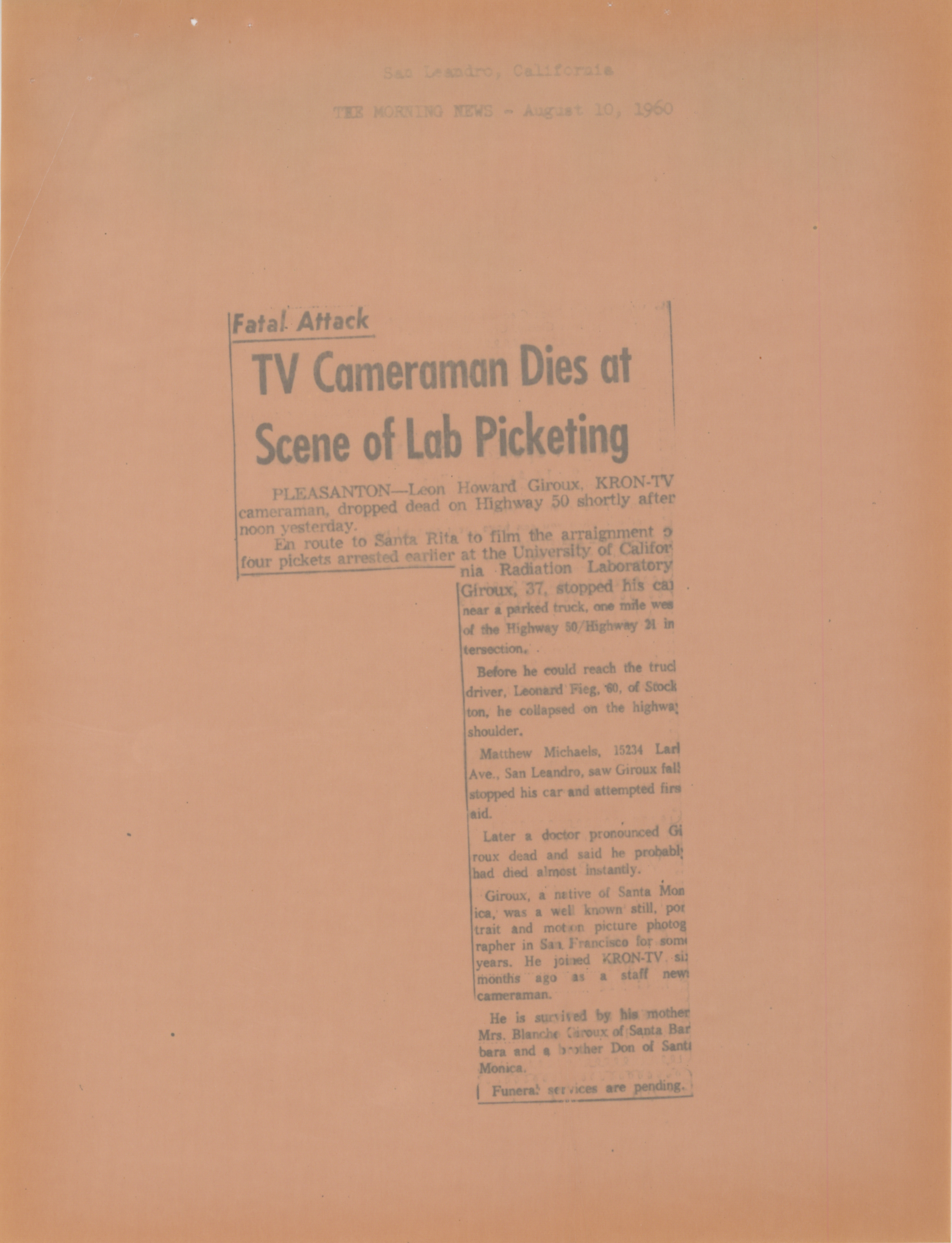 - Lawrence Livermore National Laboratory demonstration clippings, 1960