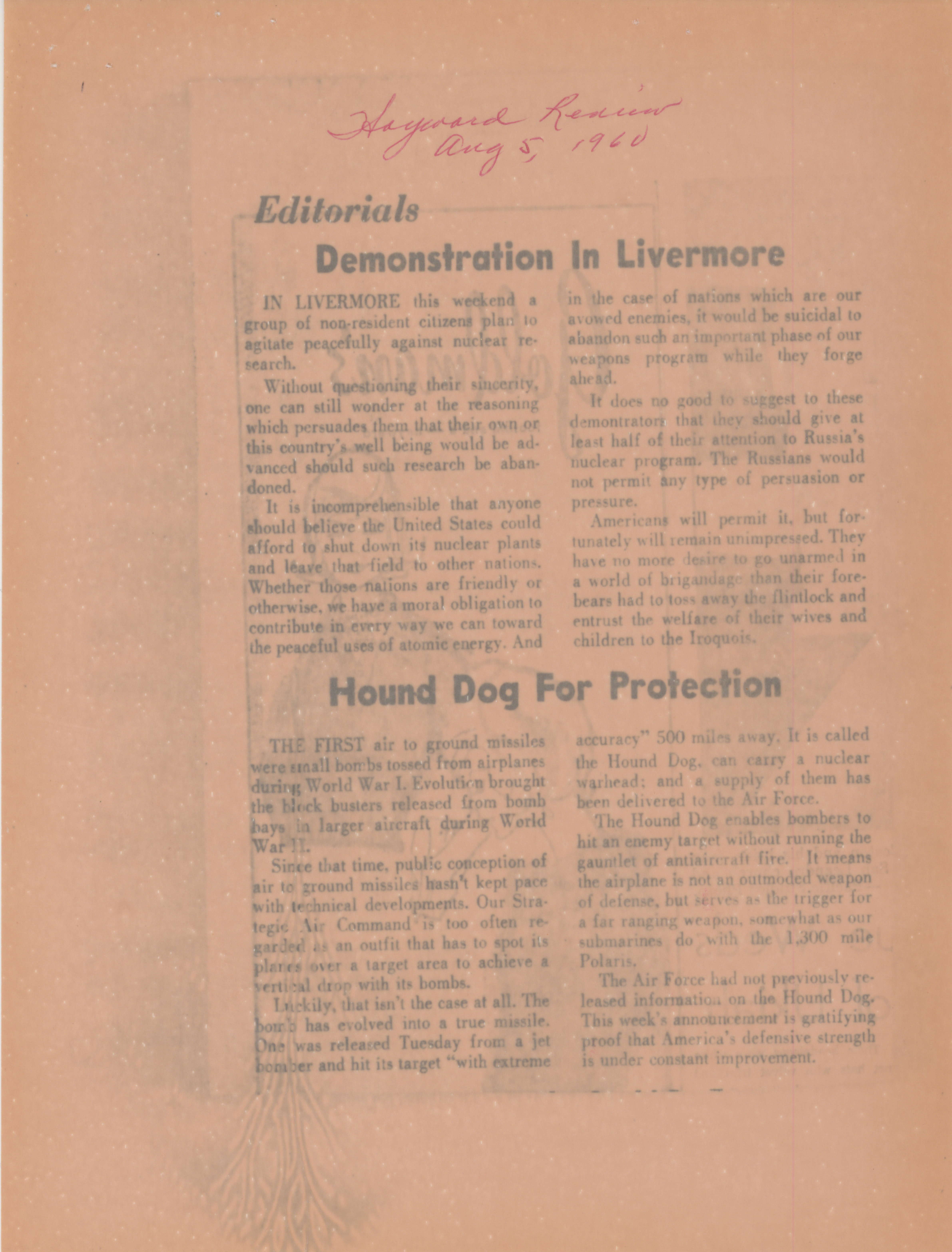 - News clippings on Lawrence Radiation Laboratory, Livermore demonstration