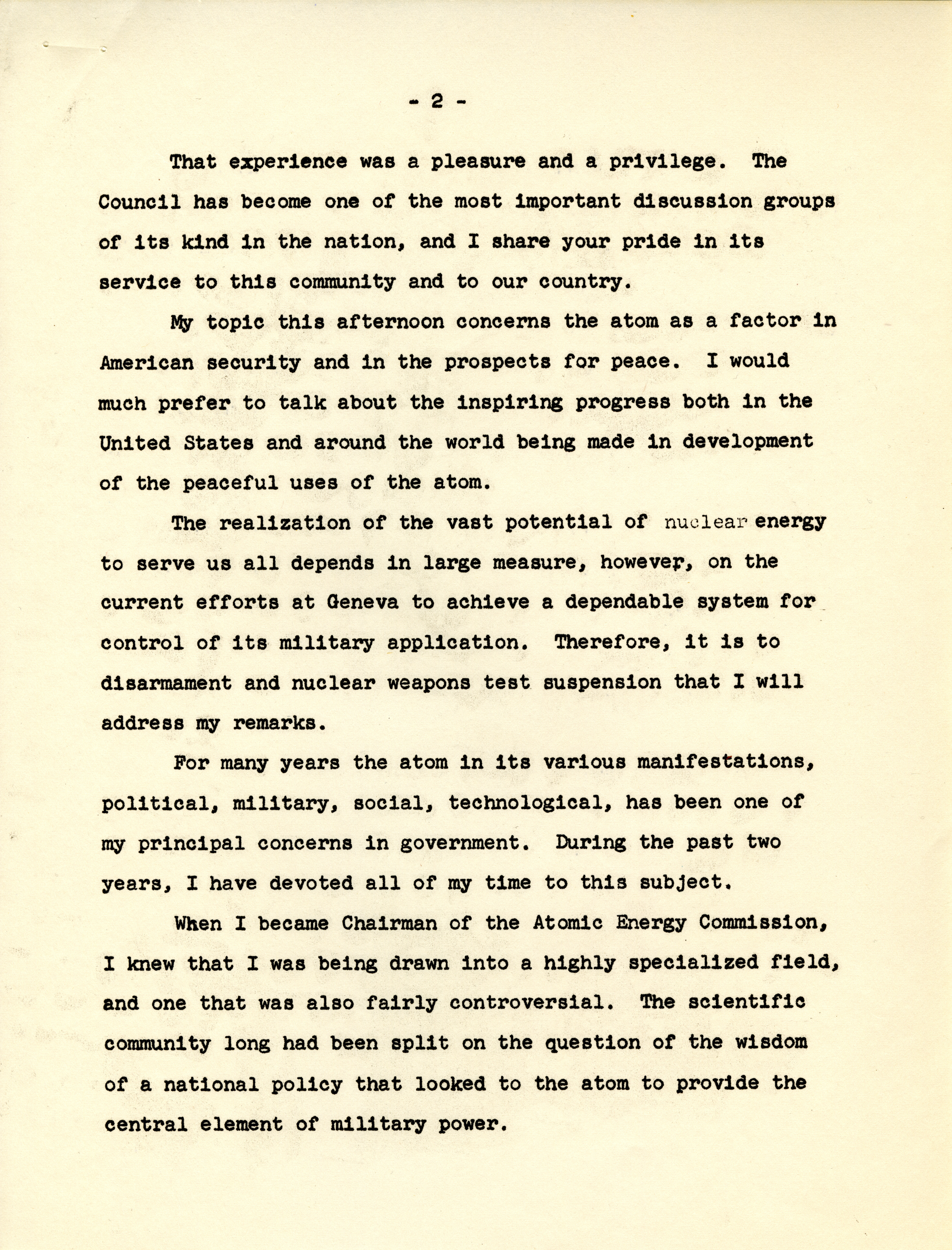 Remarks by John A. McCone on "the atom and peace," March 25, 1960 Item Info