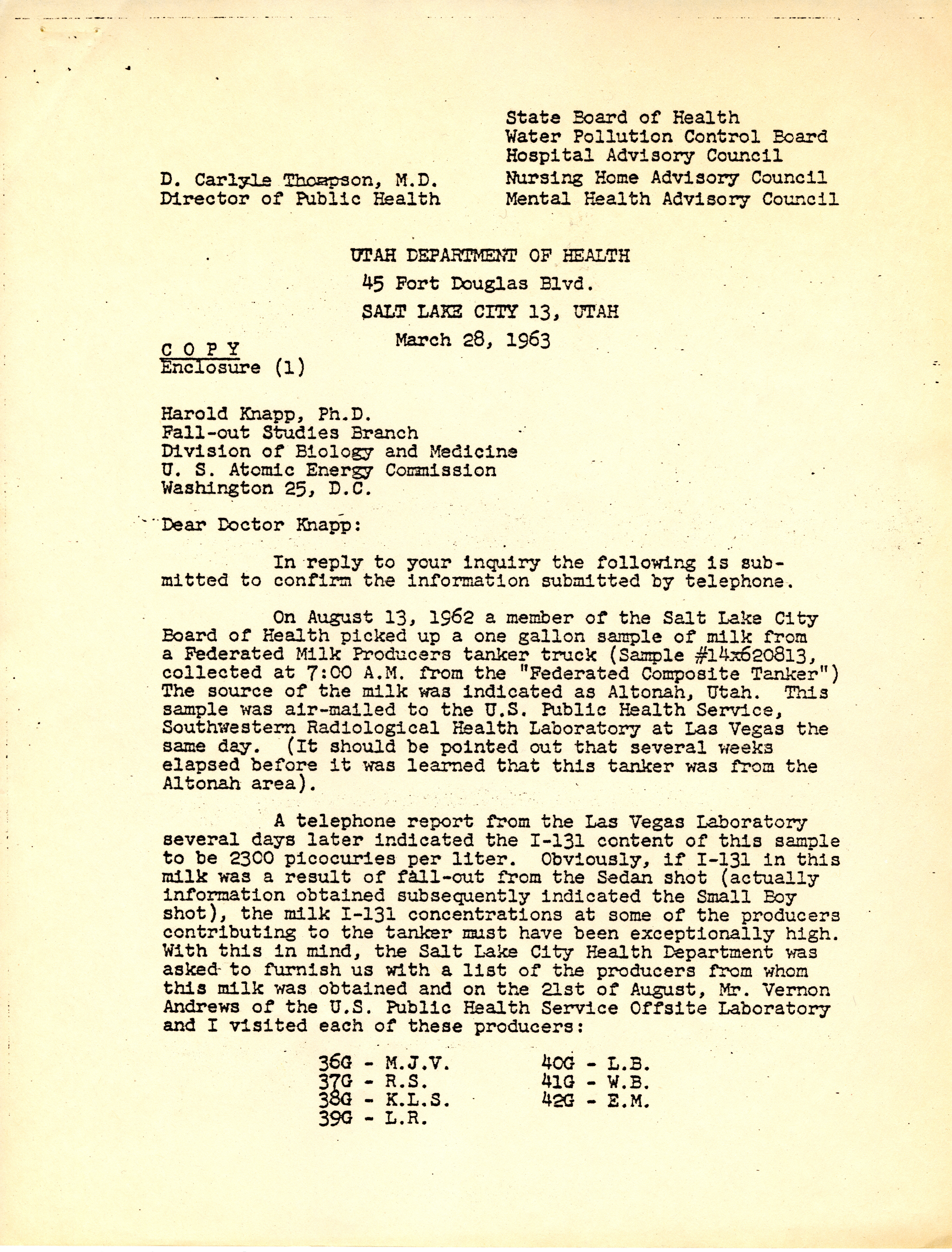 - D. Carlyle Thompson letter to Harold Knapp, March 28, 1963