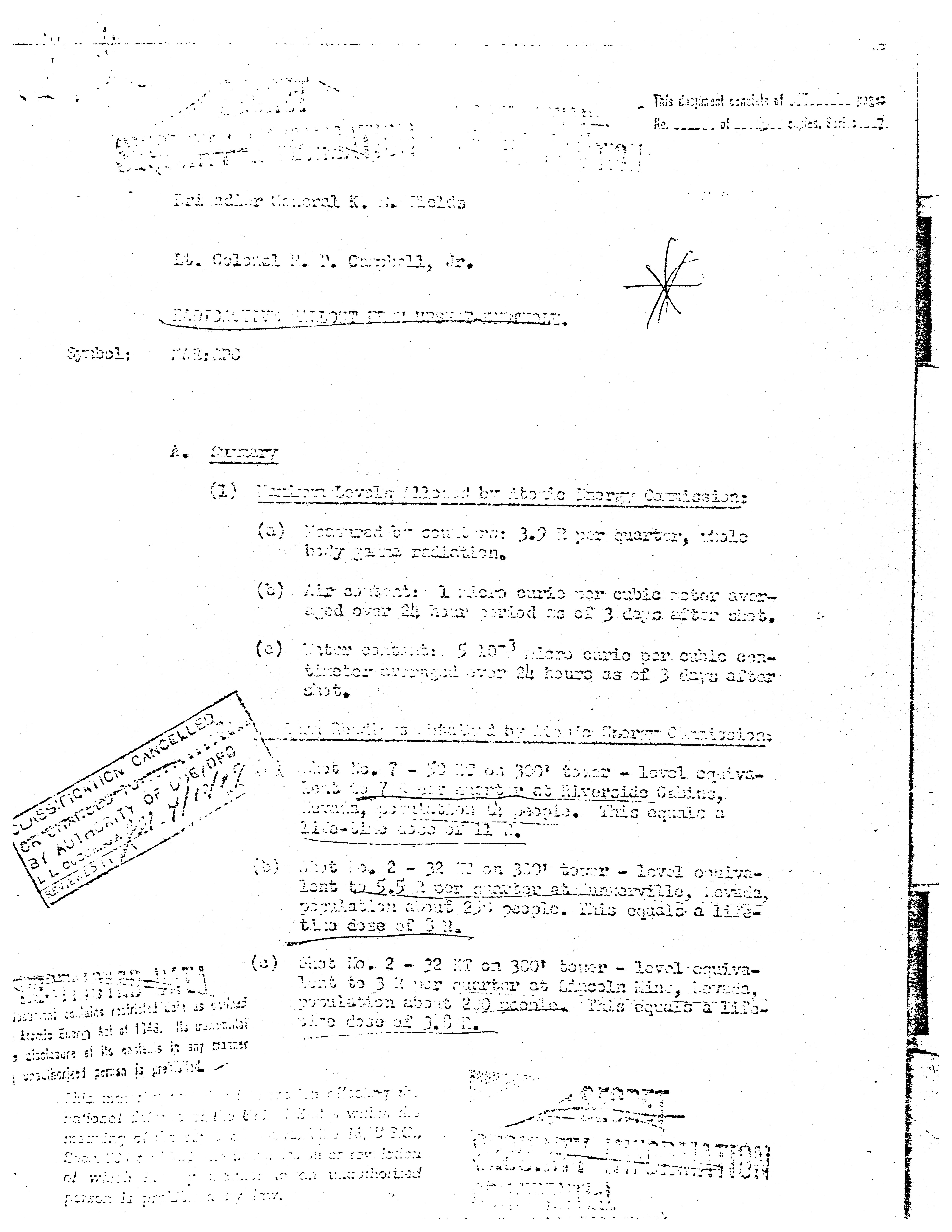 - "Declassified report on radioactive fallout", Dwight Ink Collection, Iowa State University Library Digital Collections