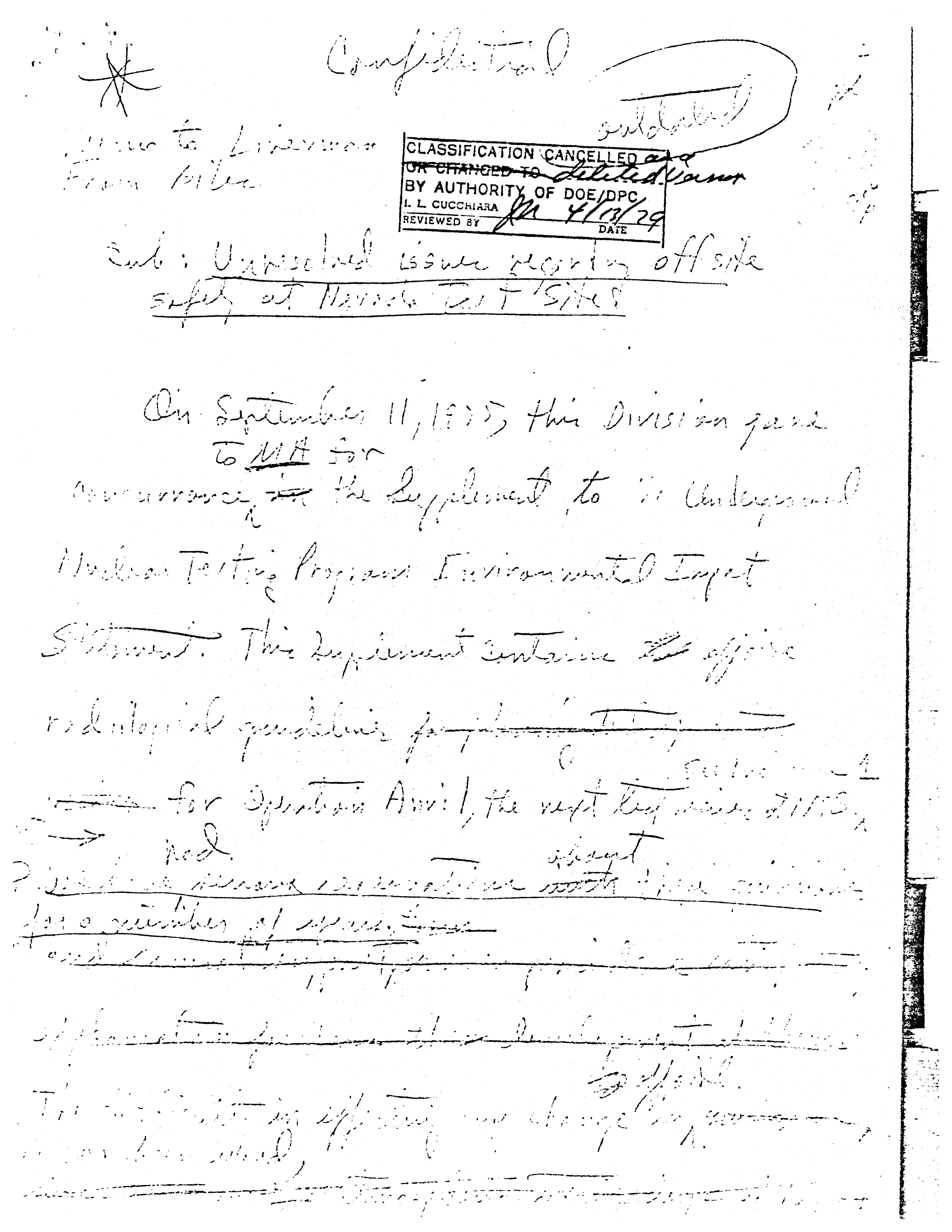 Declassified notes on offsite safety at Nevada test sites Item Info