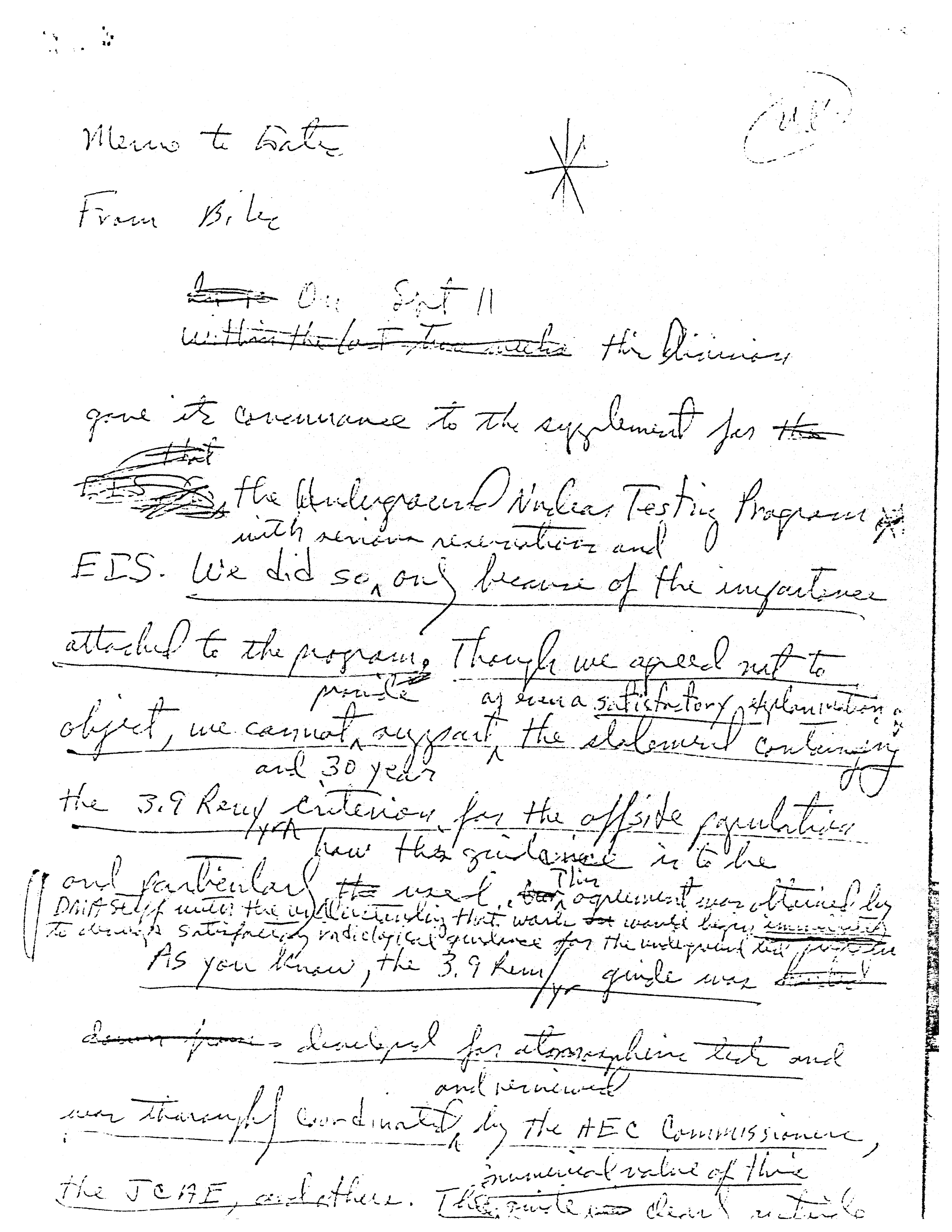 - "Declassified notes on offsite safety at Nevada test sites", Dwight Ink Collection, Iowa State University Library Digital Collections