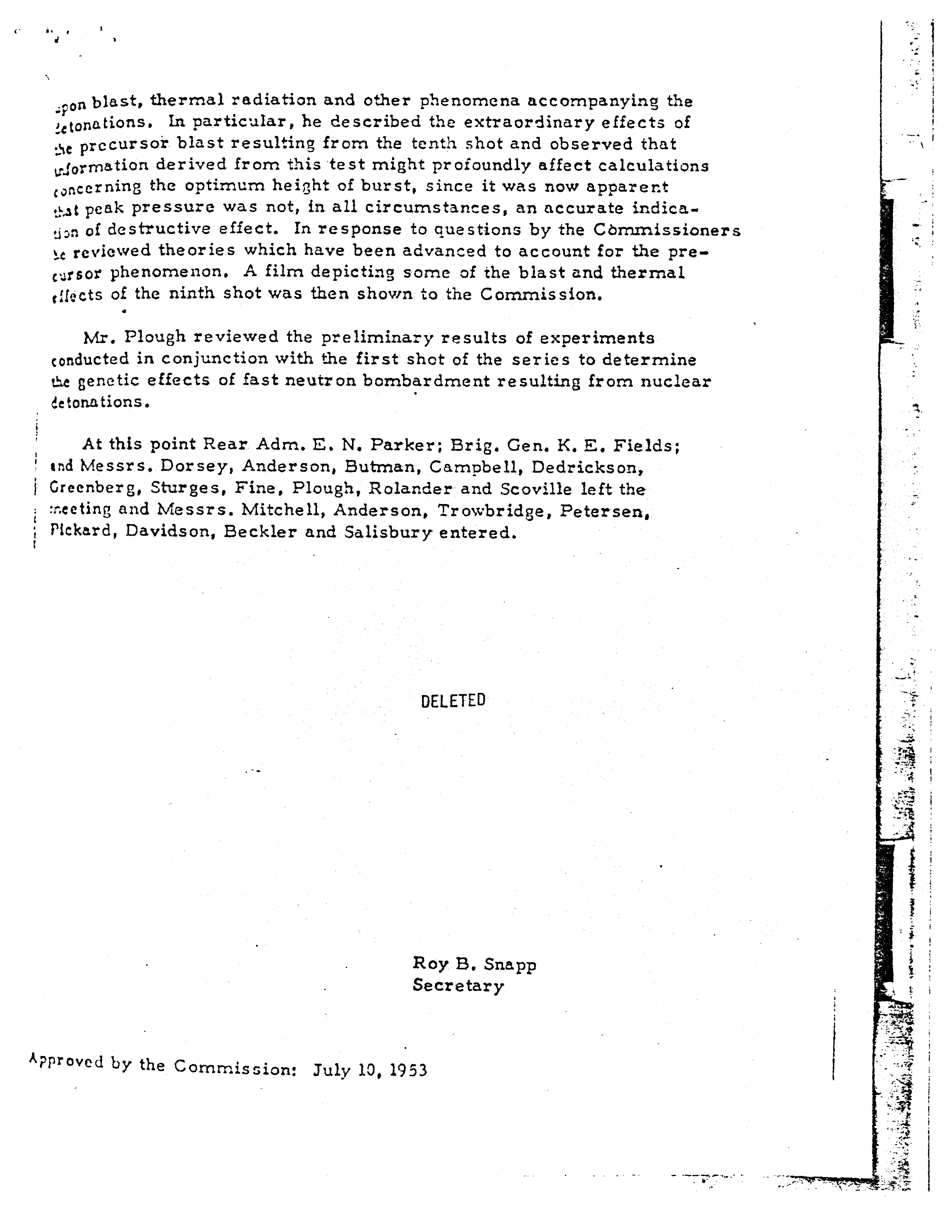 - Minutes of AEC Meeting No. 872, June 3, 1953