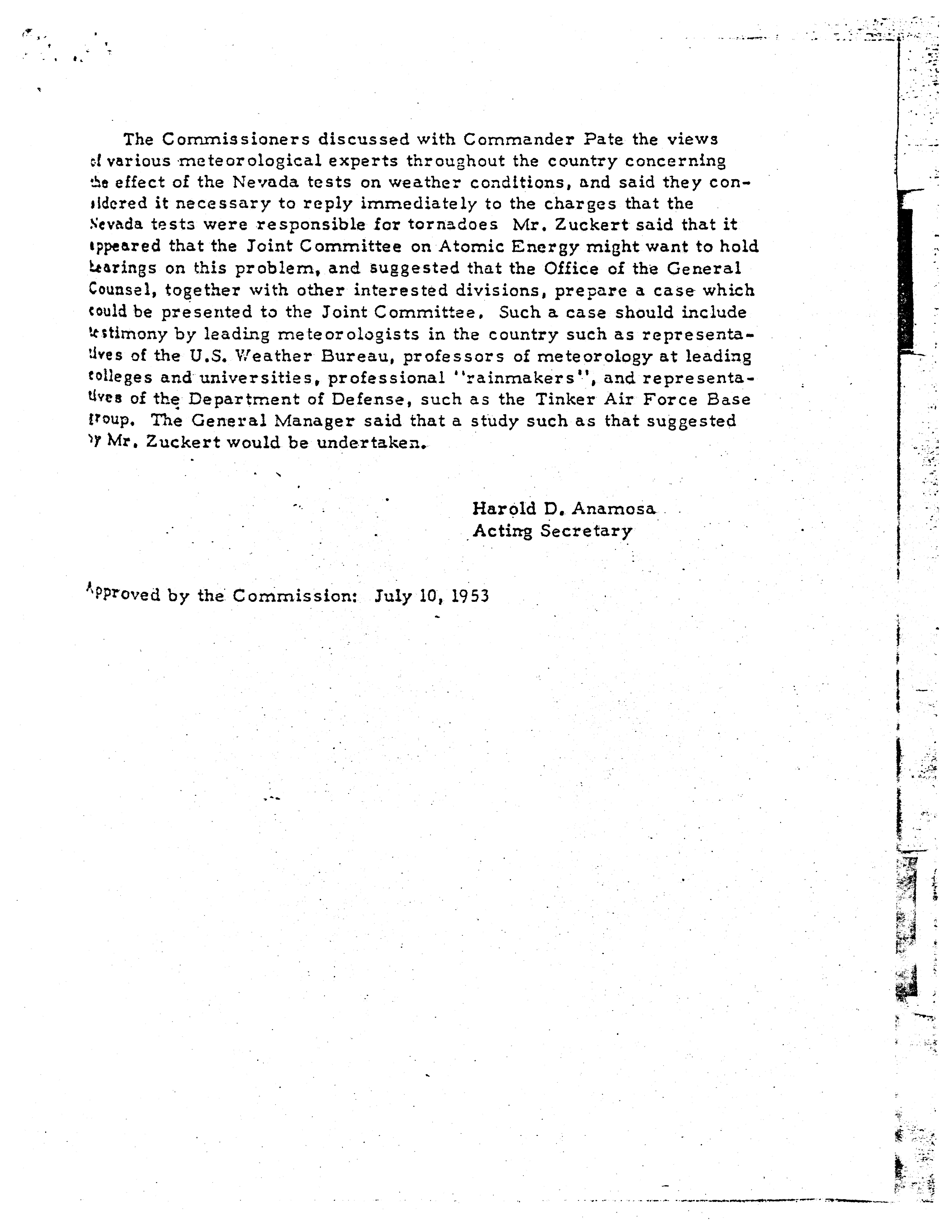 - Minutes of AEC Meeting No. 875, June 10, 1953