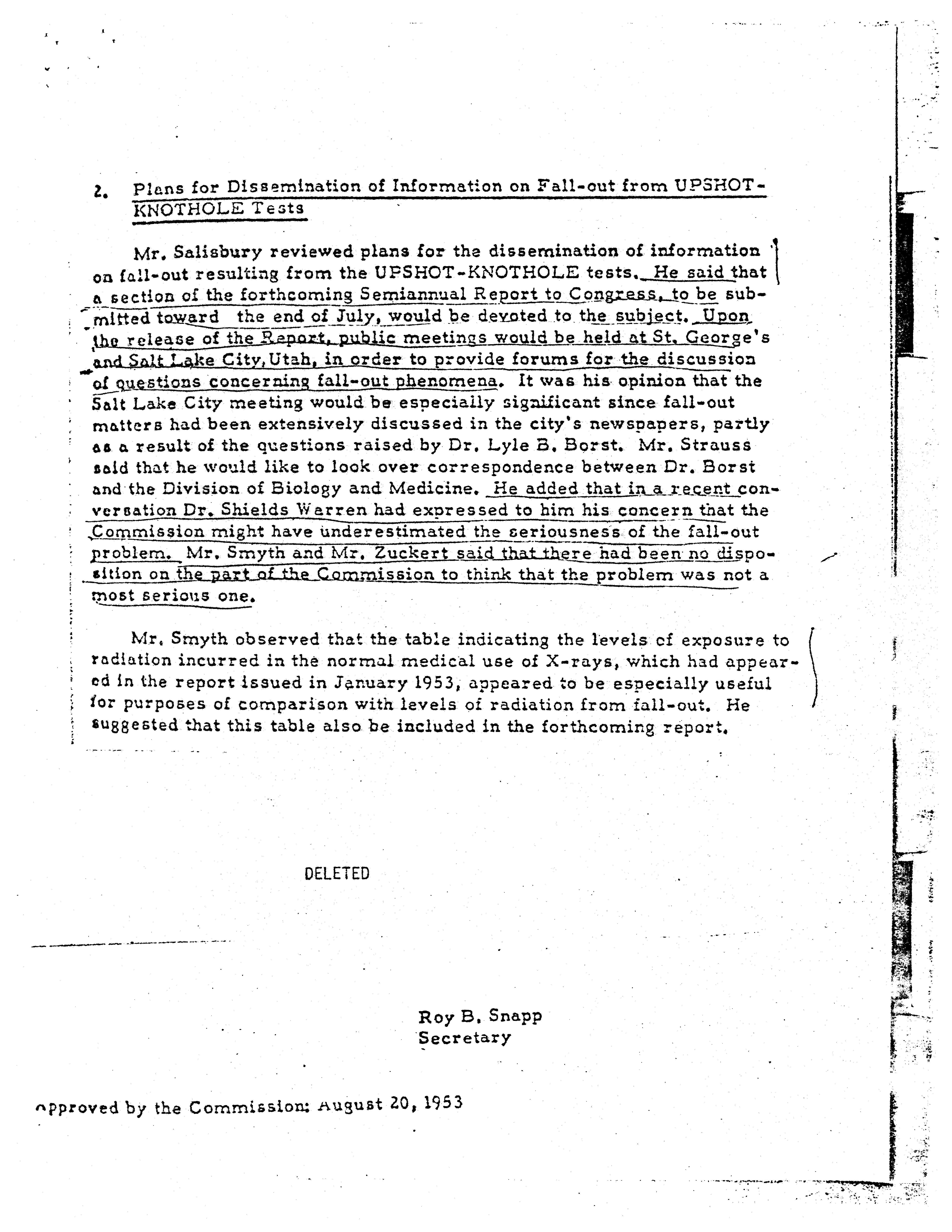 - "Minutes of AEC Meeting No. 884, July 7, 1953", Dwight Ink Collection, Iowa State University Library Digital Collections