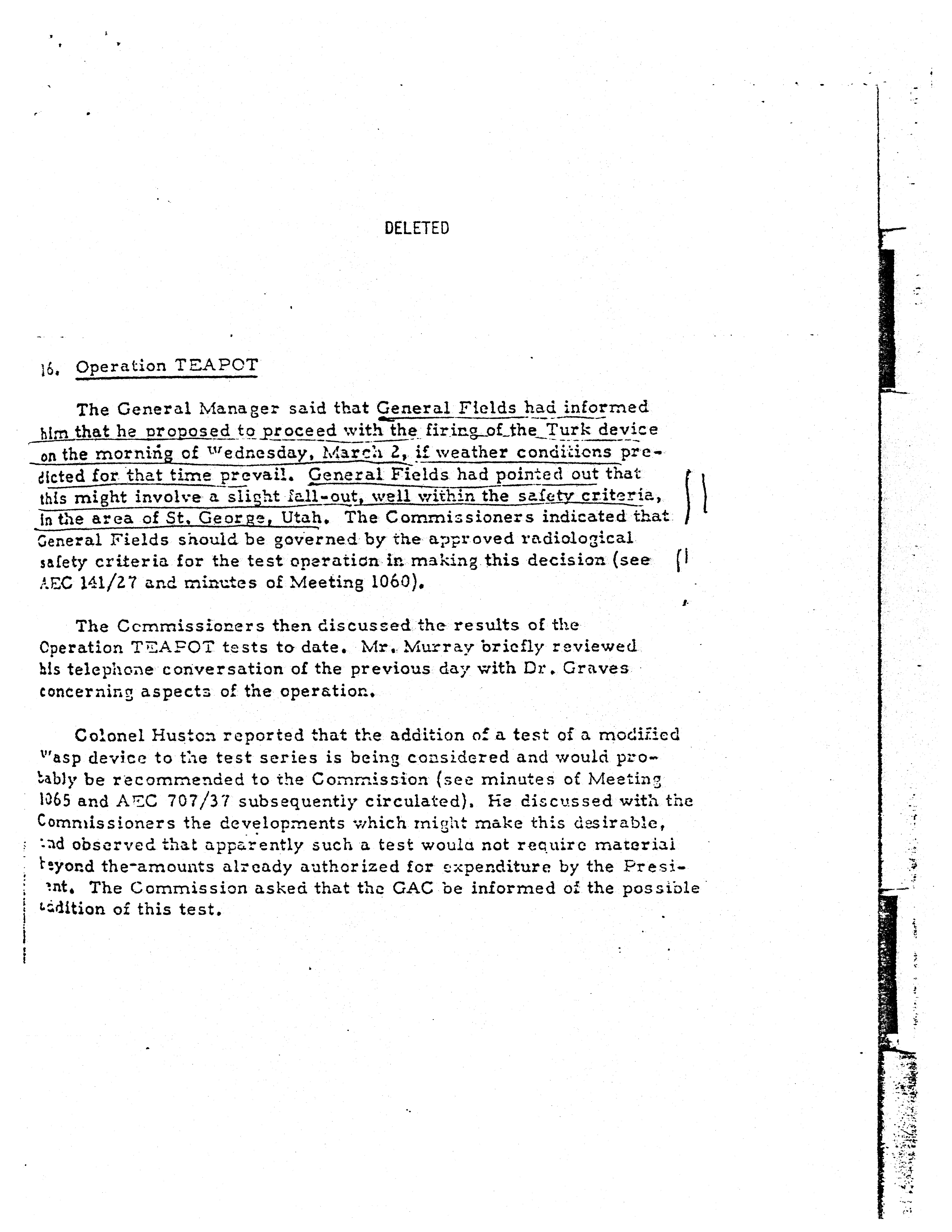 - Minutes of AEC Meeting No. 1063, March 1, 1955