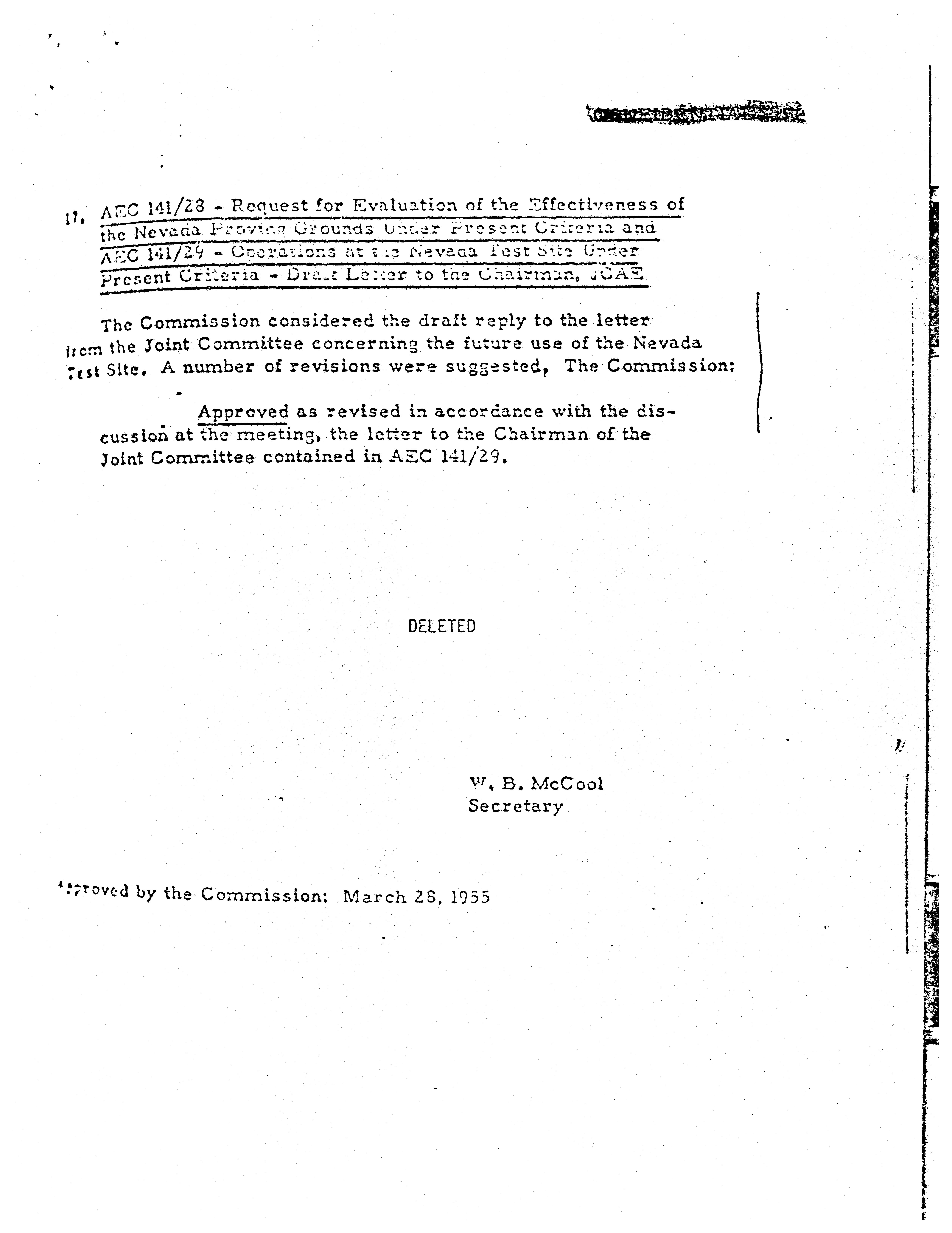 - "Minutes of AEC Meeting No. 1063, March 1, 1955", Dwight Ink Collection, Iowa State University Library Digital Collections