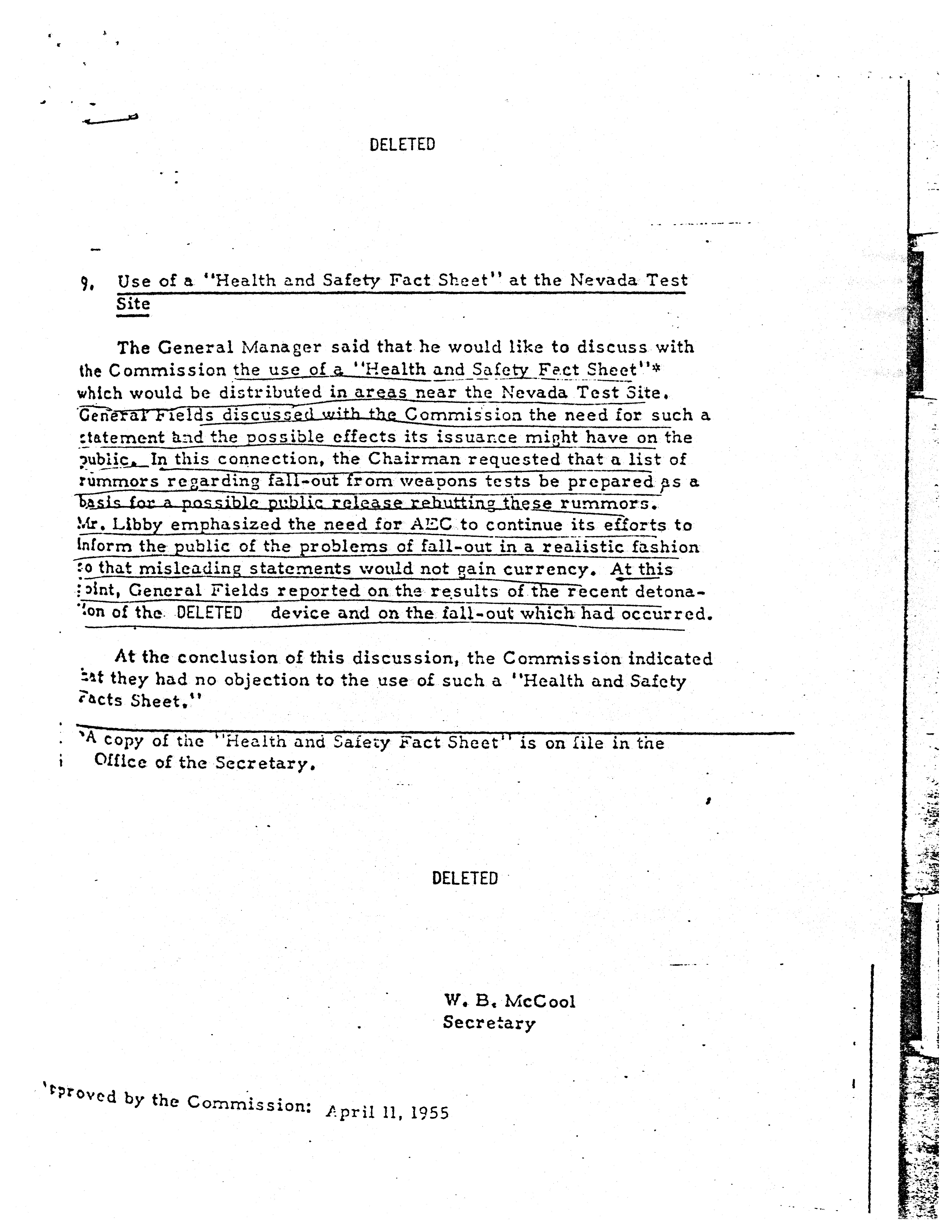 - "Minutes of AEC Meeting No. 1065, March 14, 1955", Dwight Ink Collection, Iowa State University Library Digital Collections