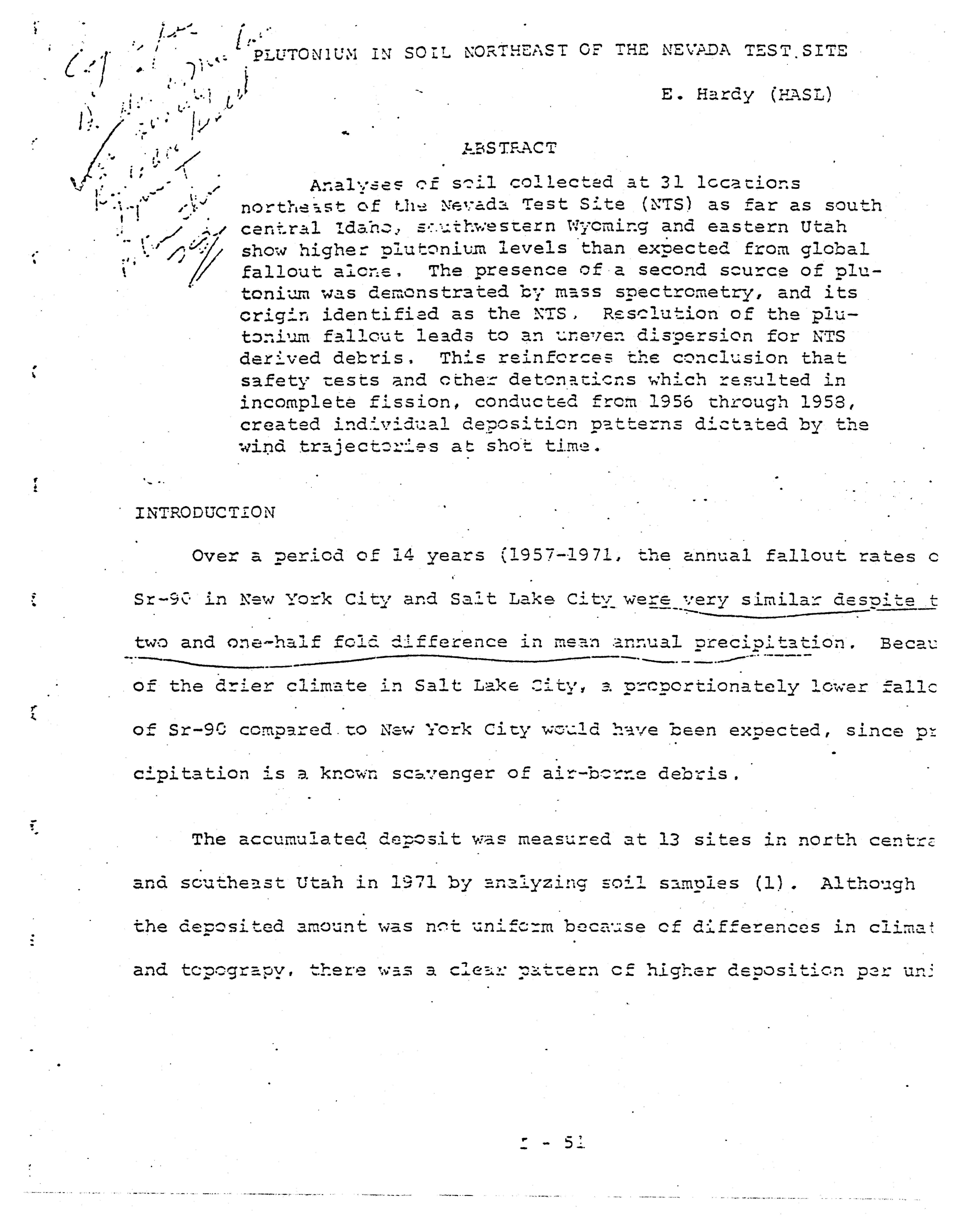 - "Plutonium in soil northeast of the Nevada test site", Dwight Ink Collection, Iowa State University Library Digital Collections