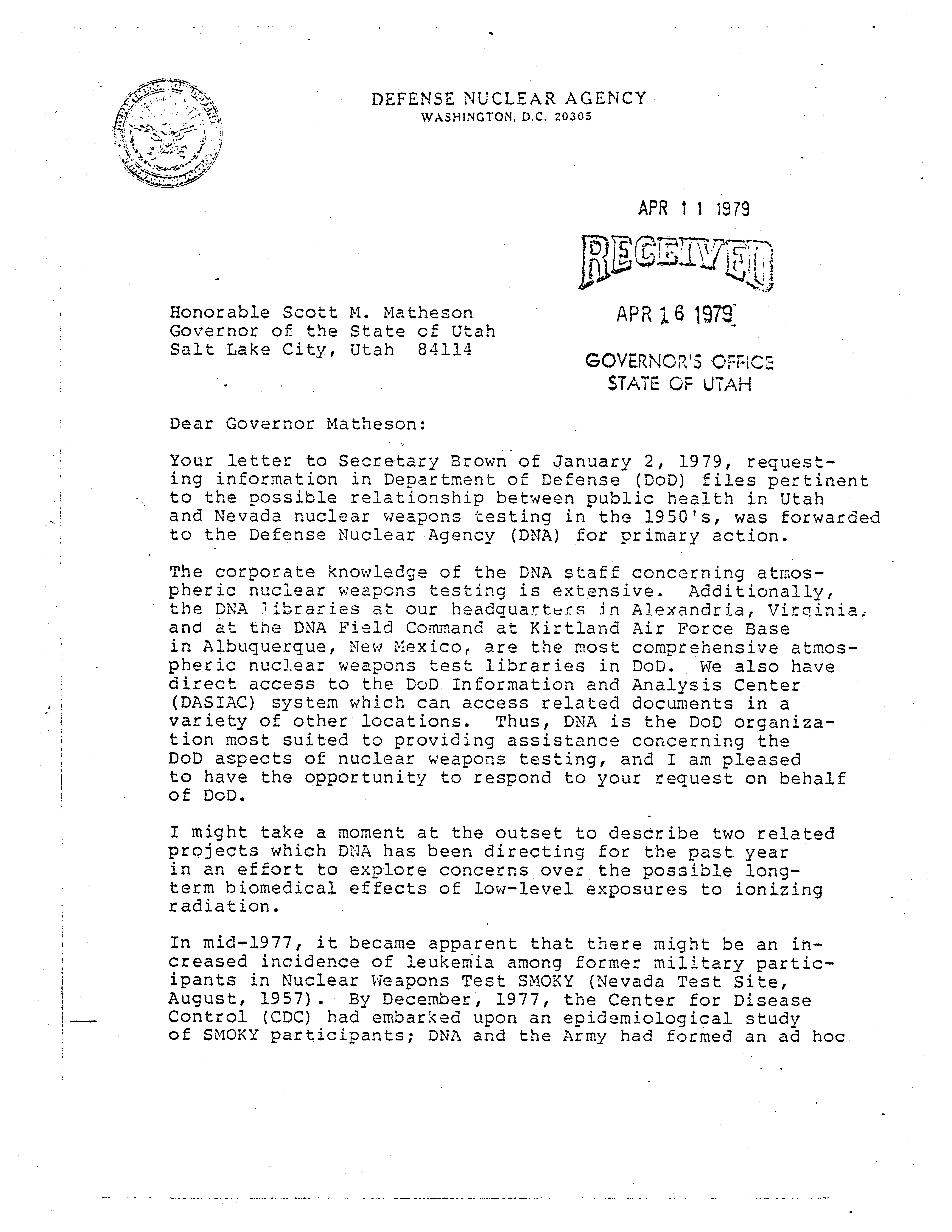 - R. R. Monroe letter to Scott M. Matheson, April 11, 1979