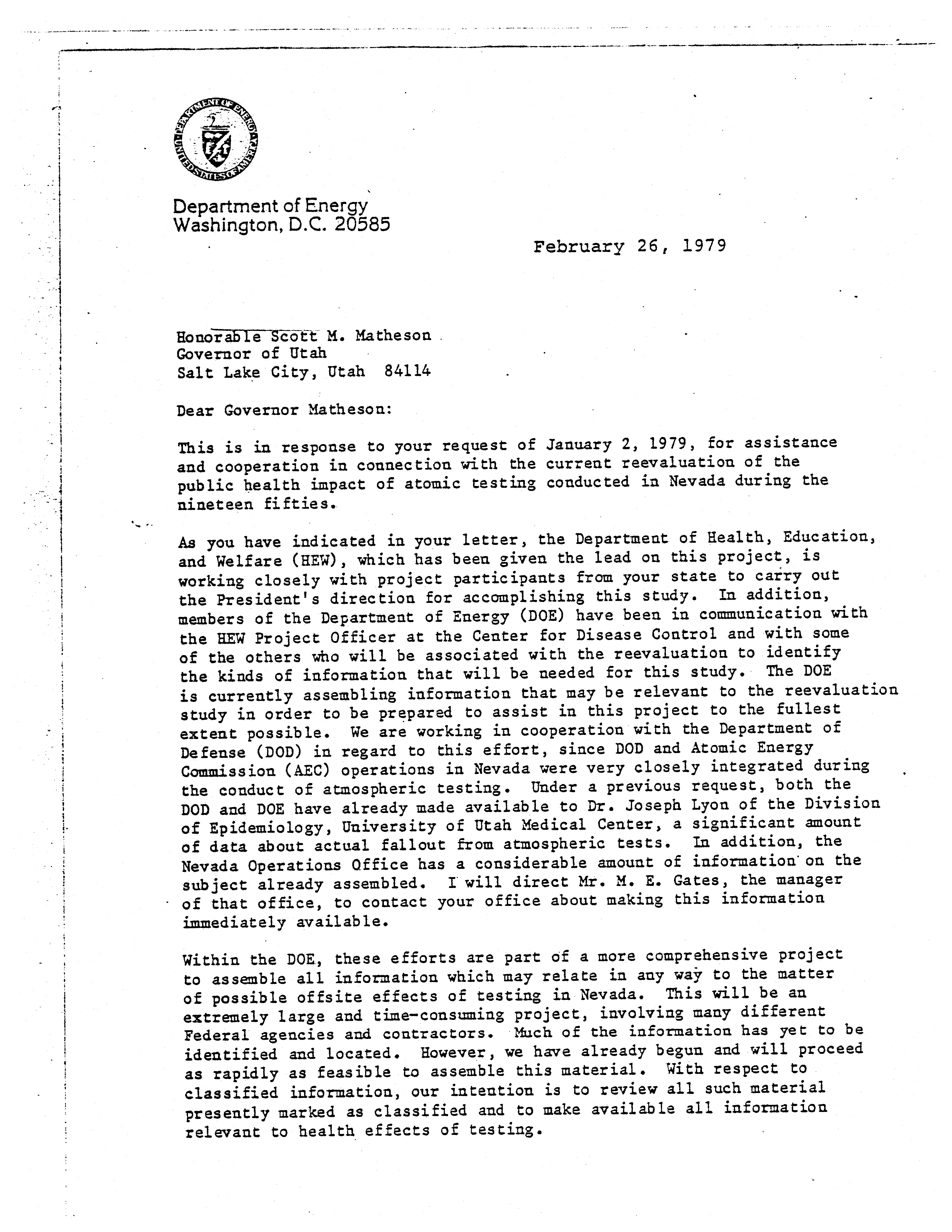 - Dale D. Myers letter to Scott M. Matheson, February 26, 1979