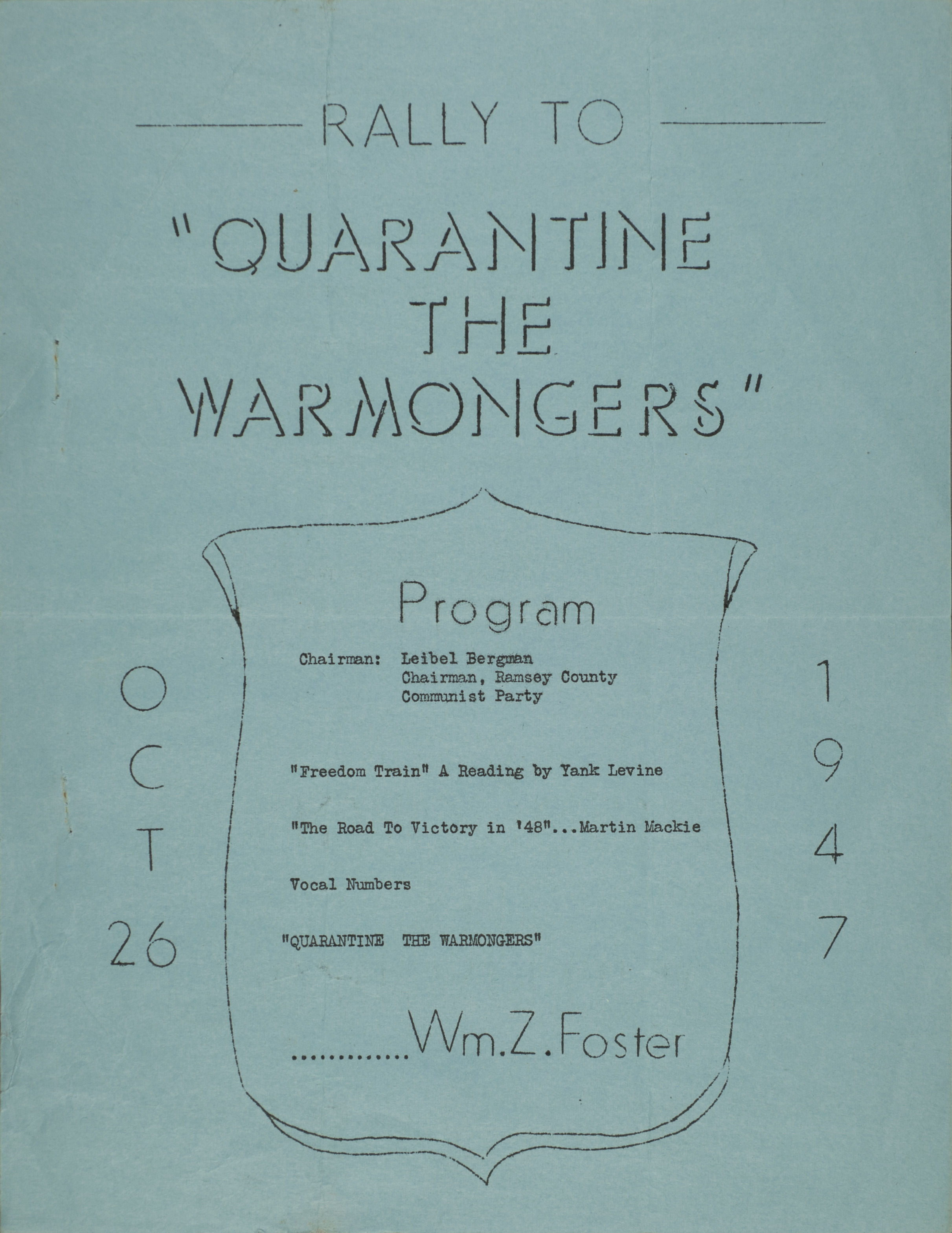- Rally to quarantine the warmongers booklet, October 26, 1947