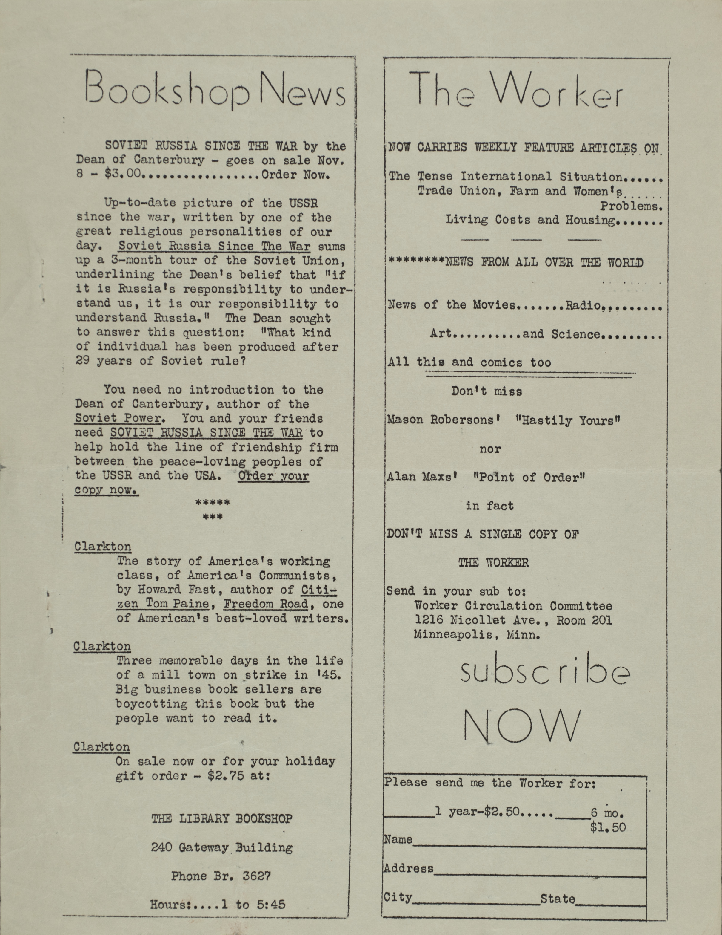 - "Rally to quarantine the warmongers booklet, October 26, 1947", Dwight Ink Collection, Iowa State University Library Digital Collections