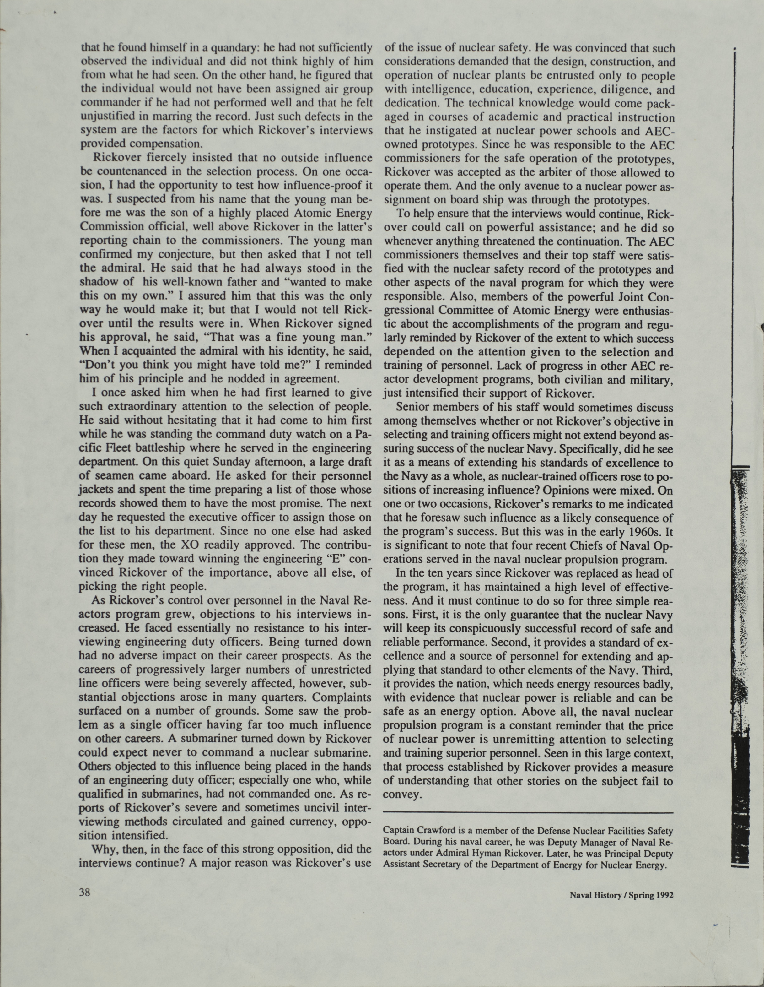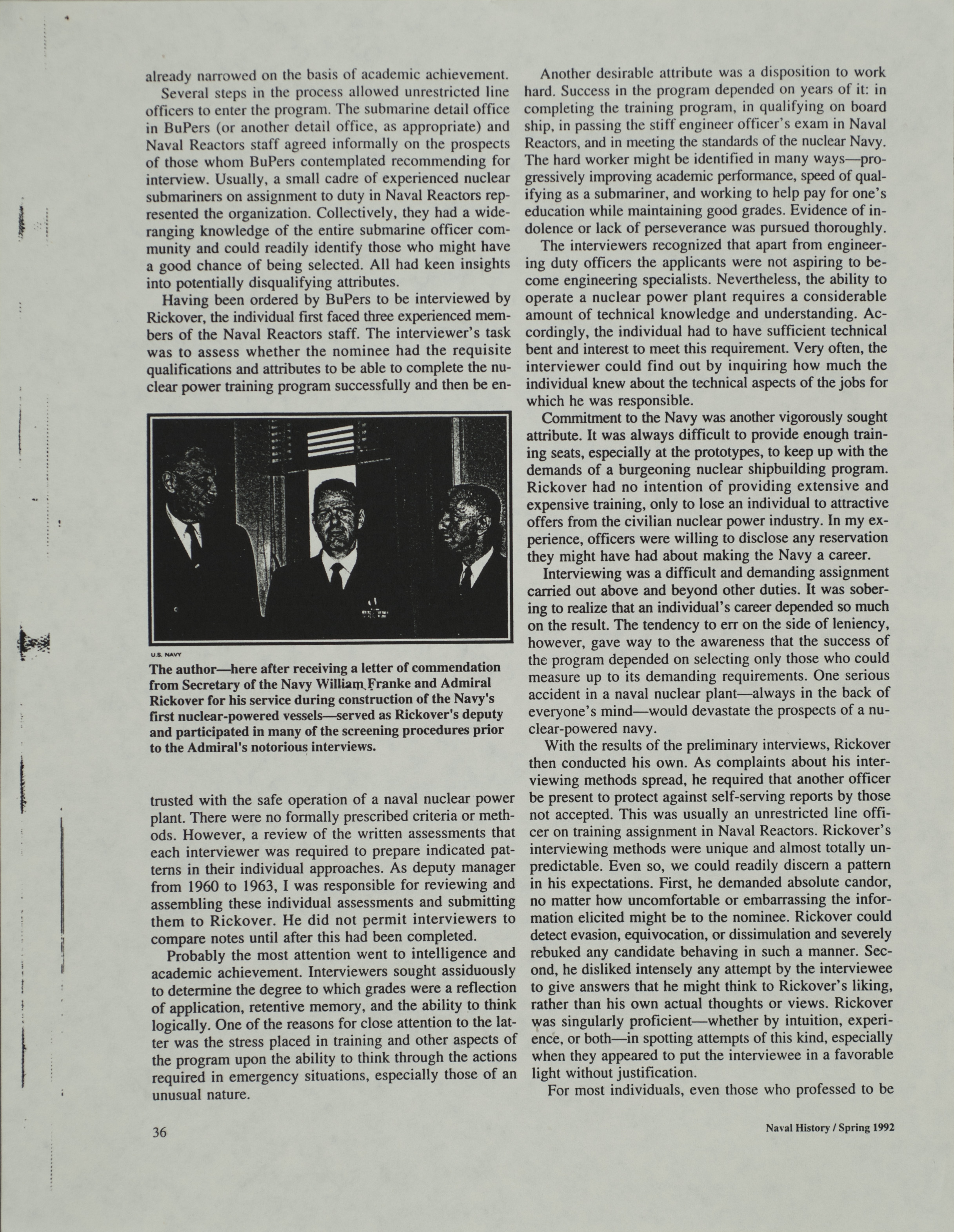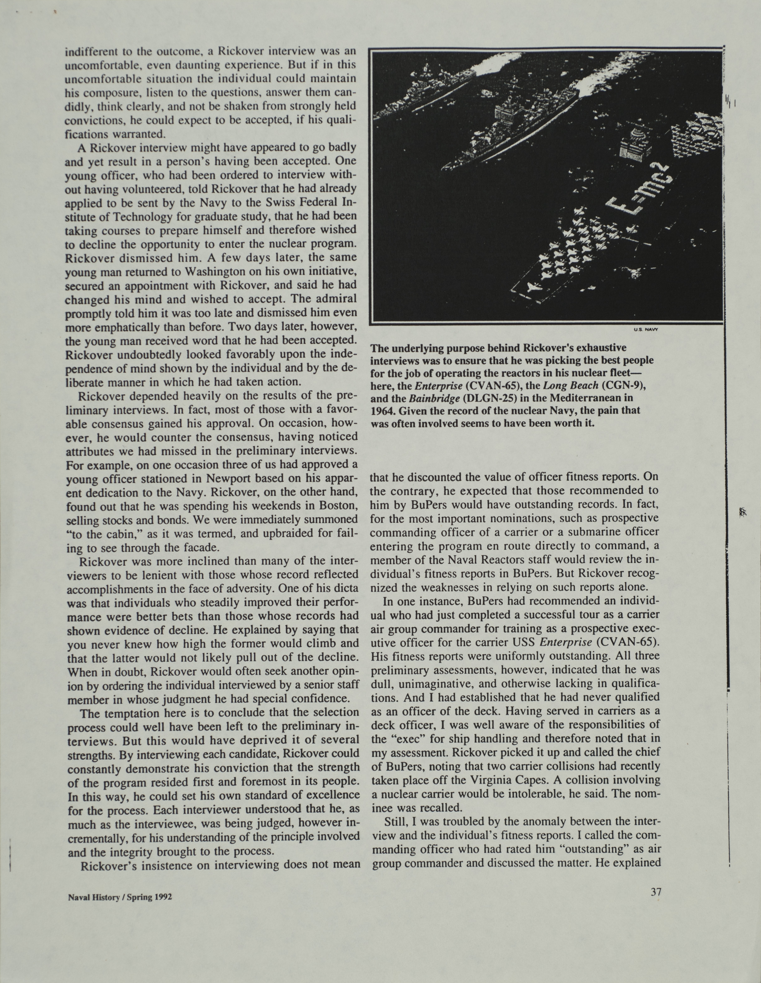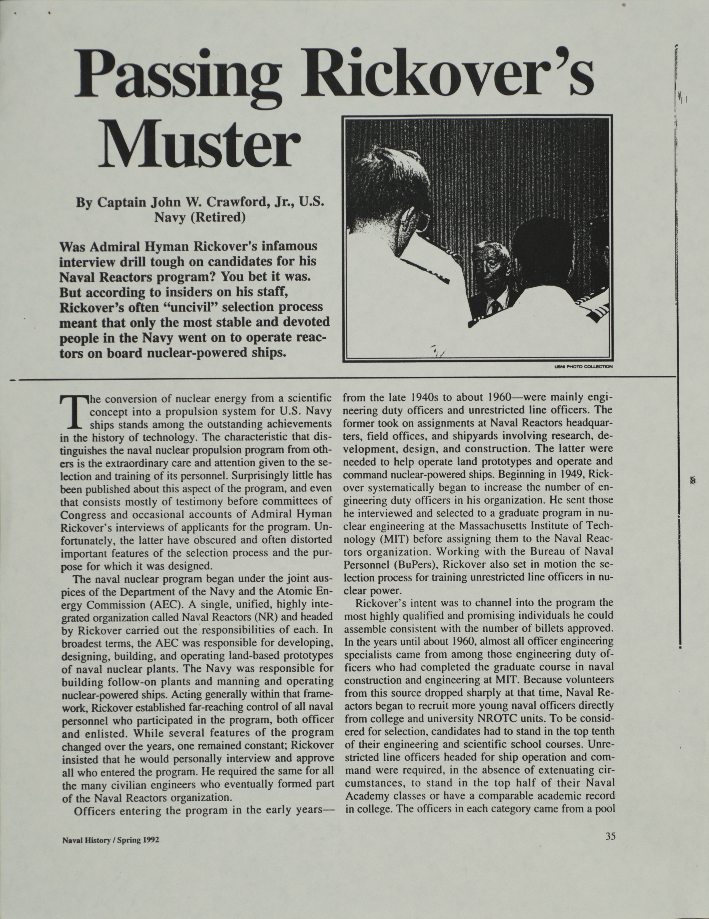 - Naval history magazine: Rickover interviews