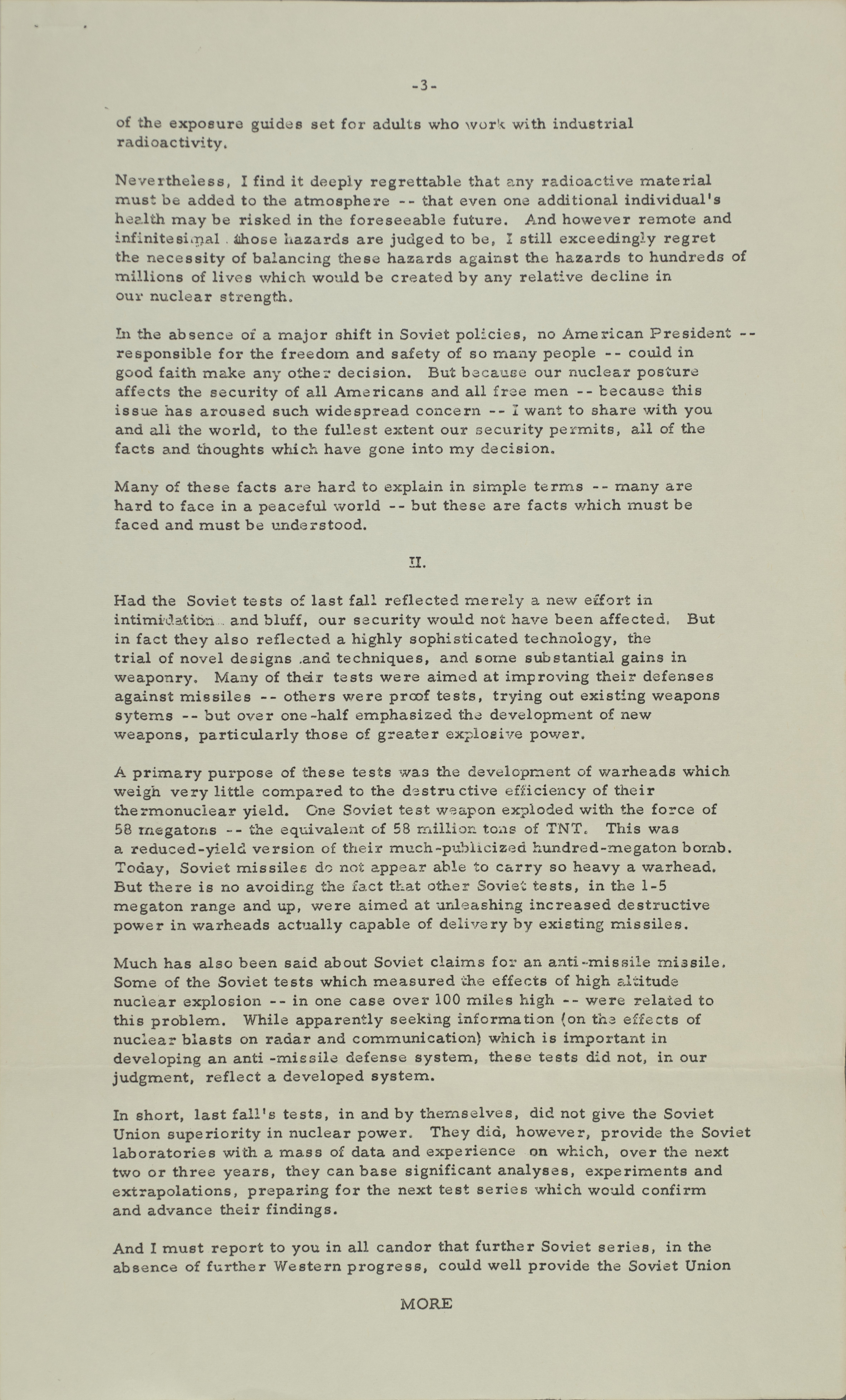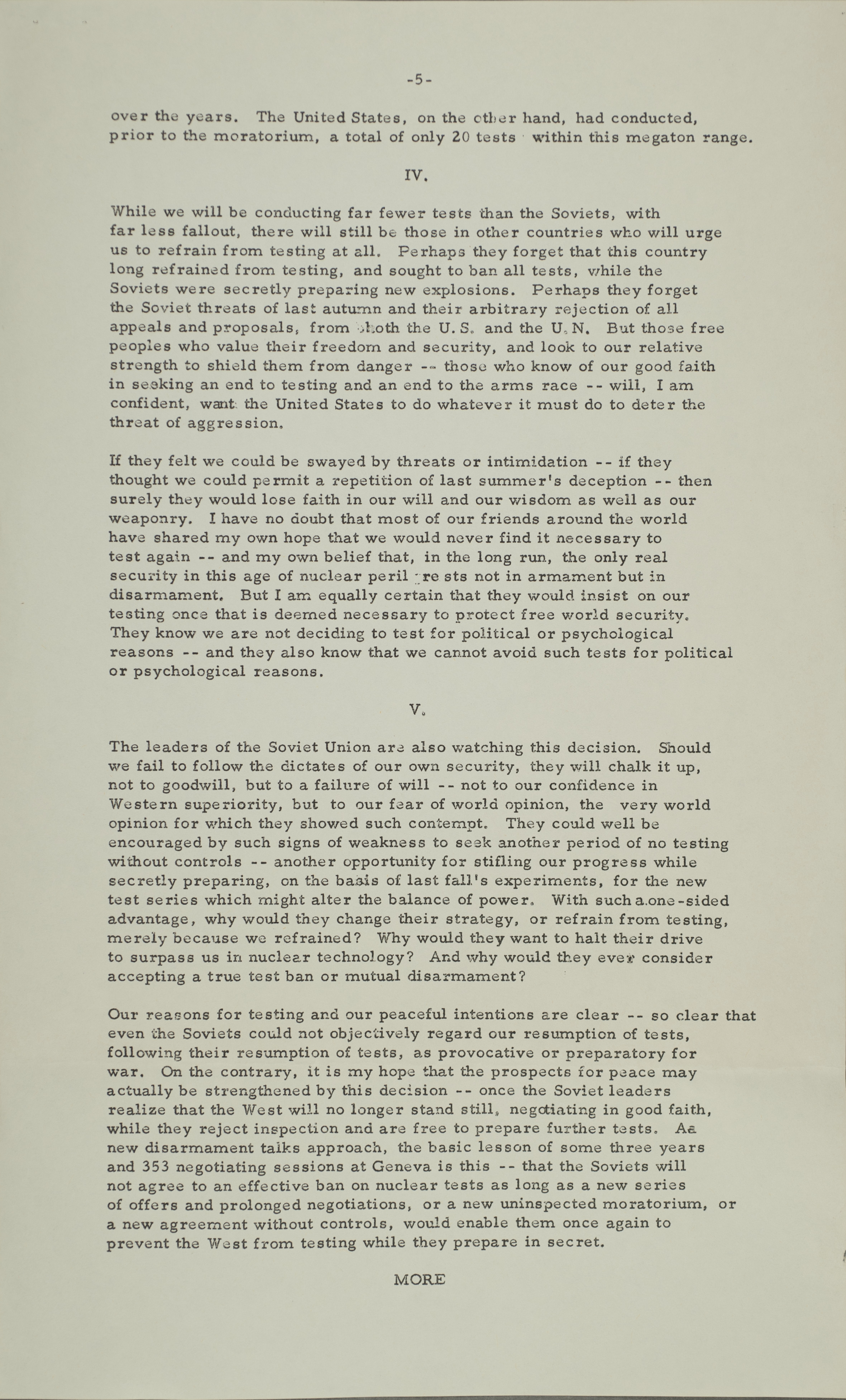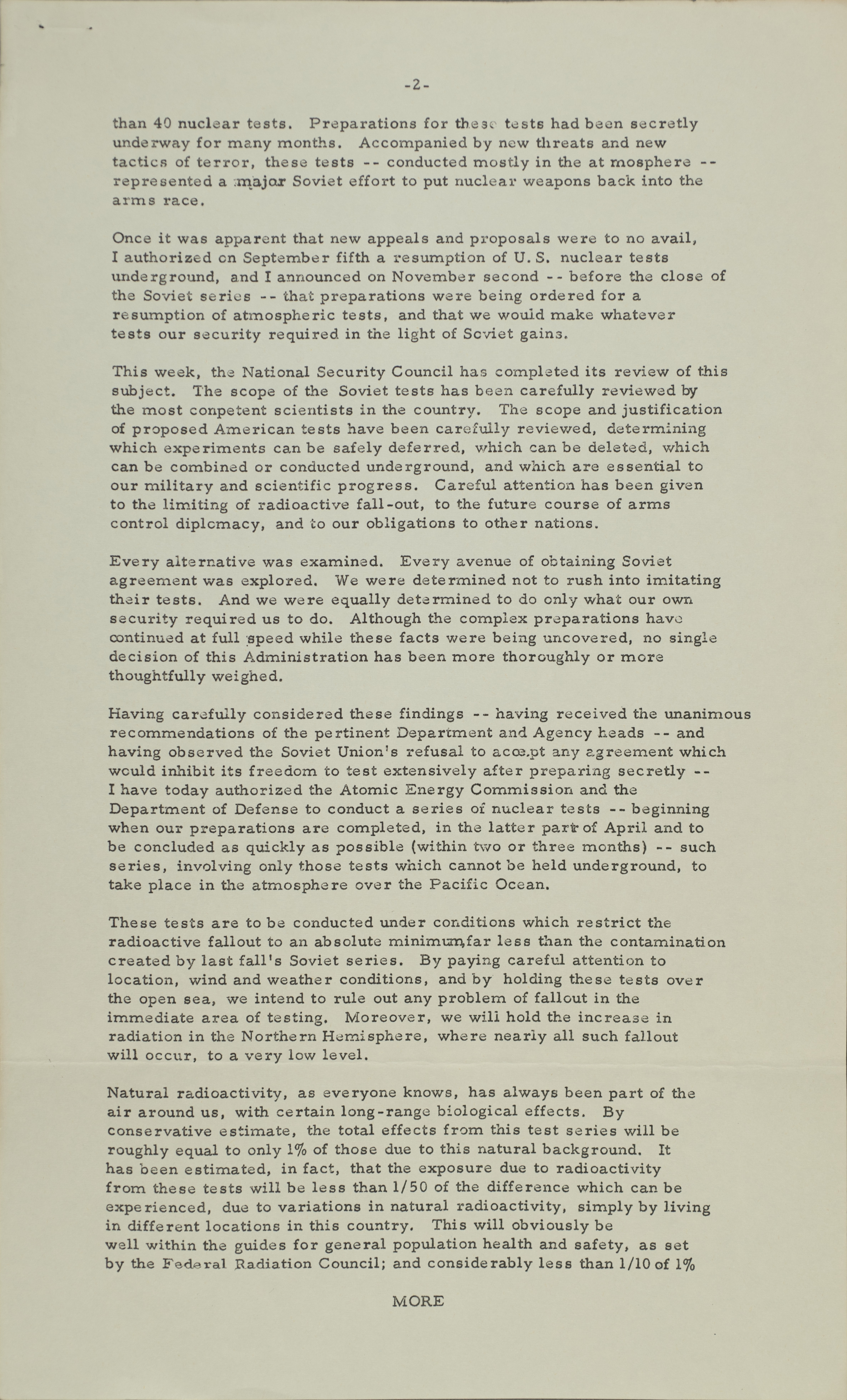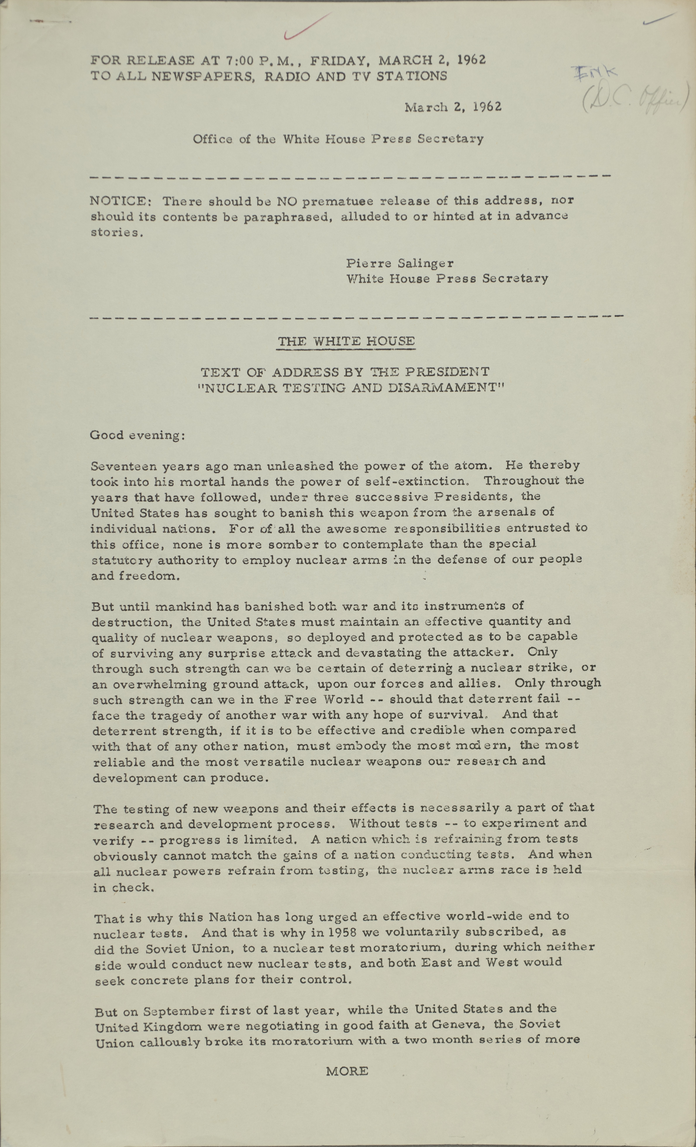 - "Text of address by the president, "Nuclear testing and disarmament," March 2, 1962", Dwight Ink Collection, Iowa State University Library Digital Collections