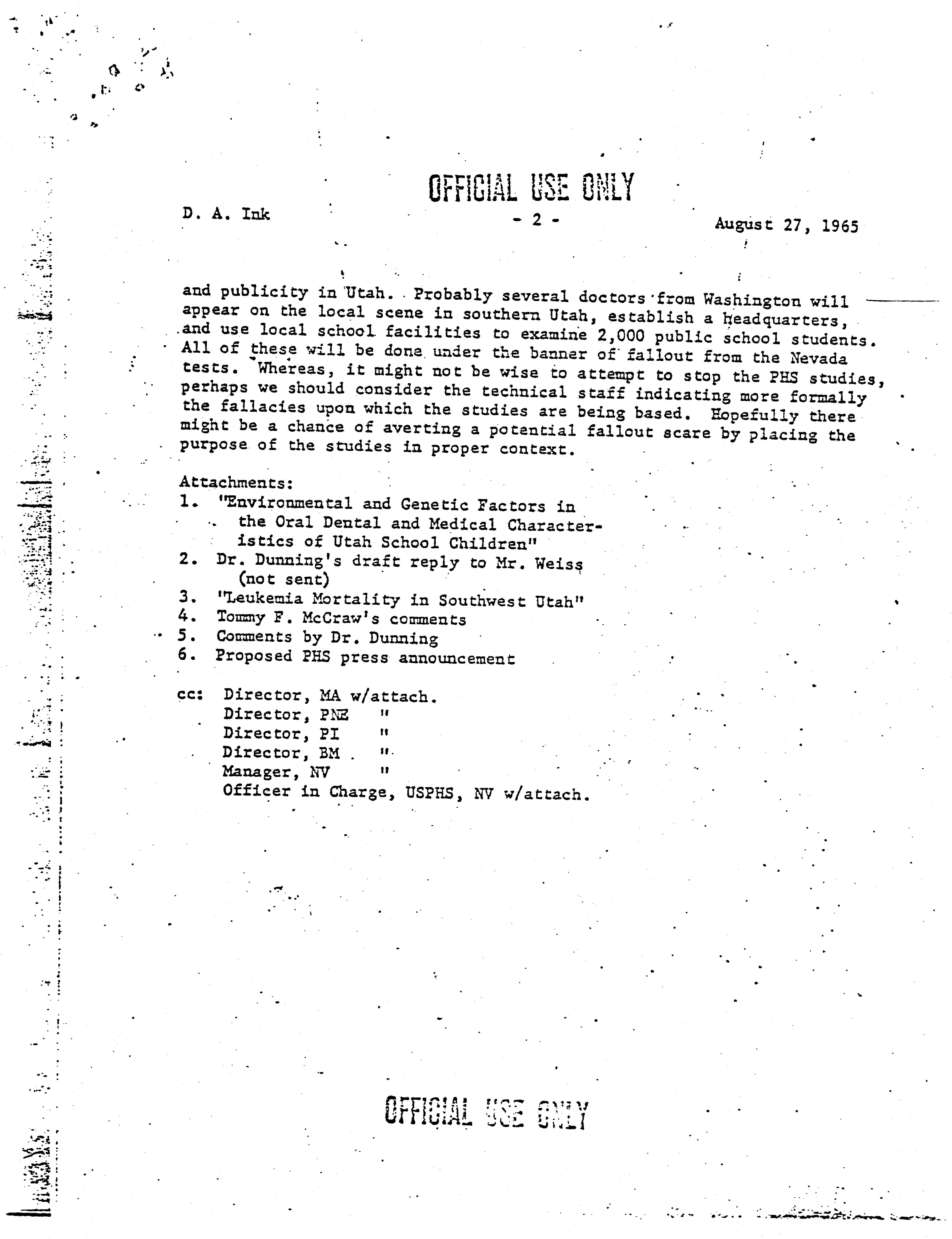 - Annotation: "Official use only. PHS studies in Utah"