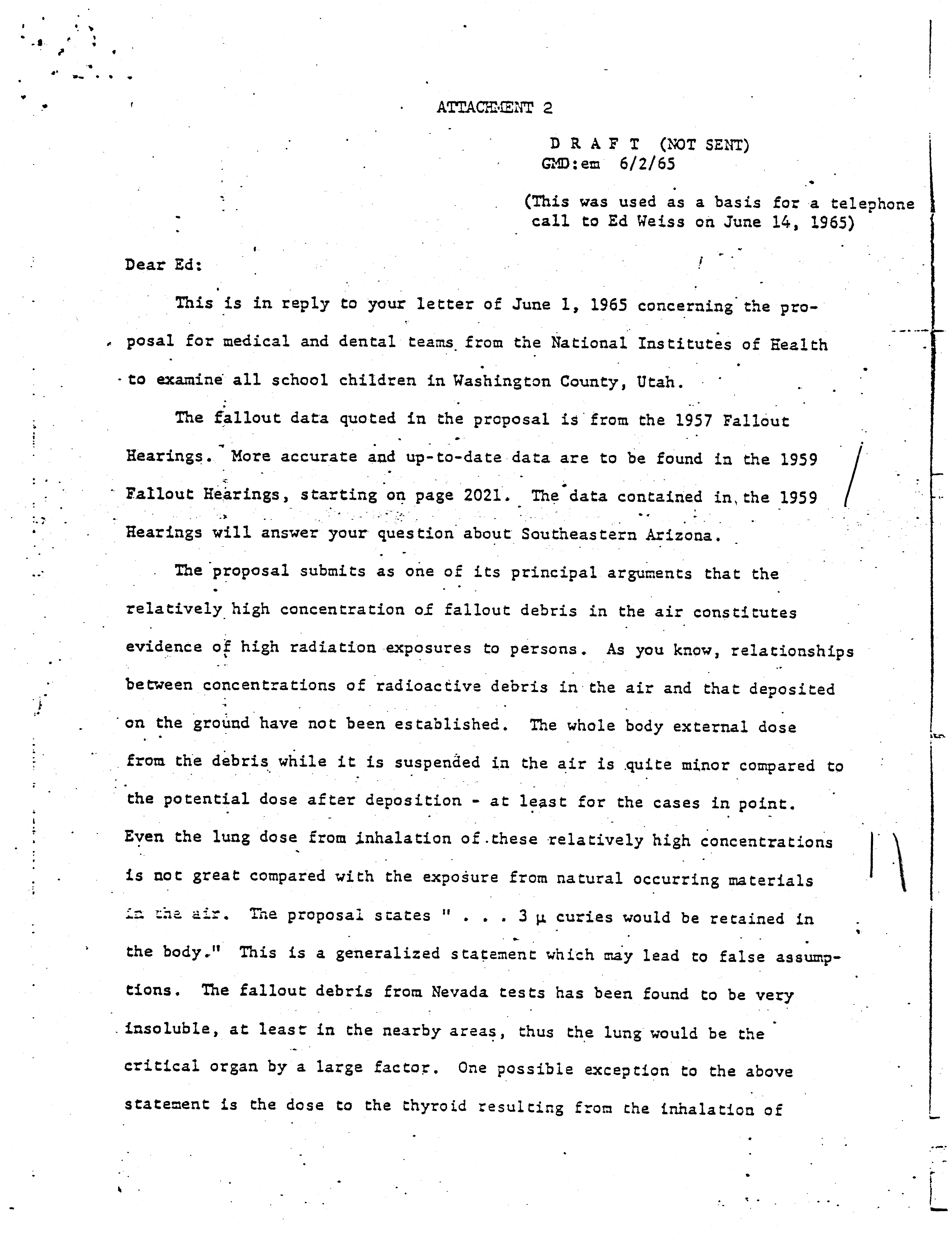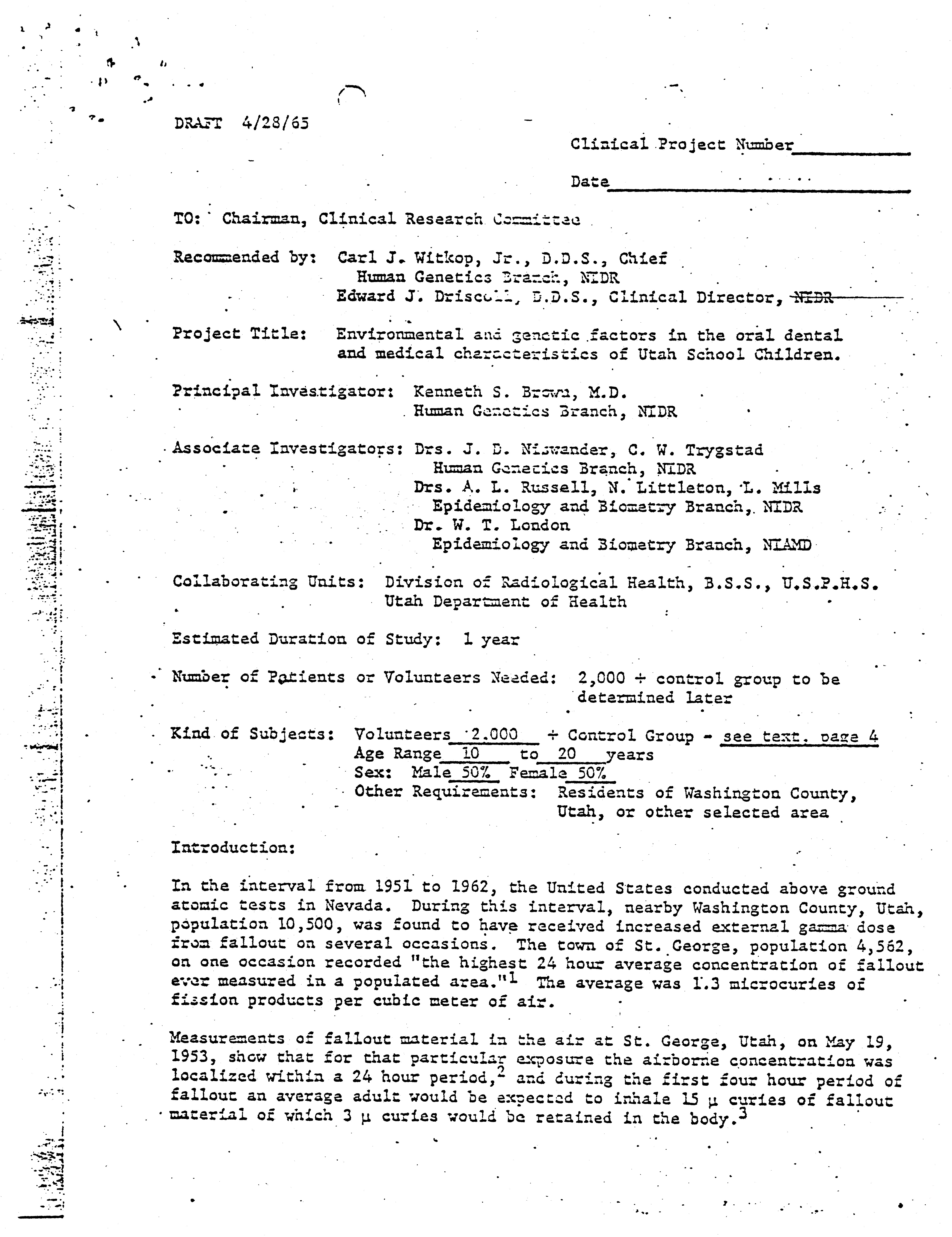- Utah studies on nuclear radiation effects correspondence, 1965
