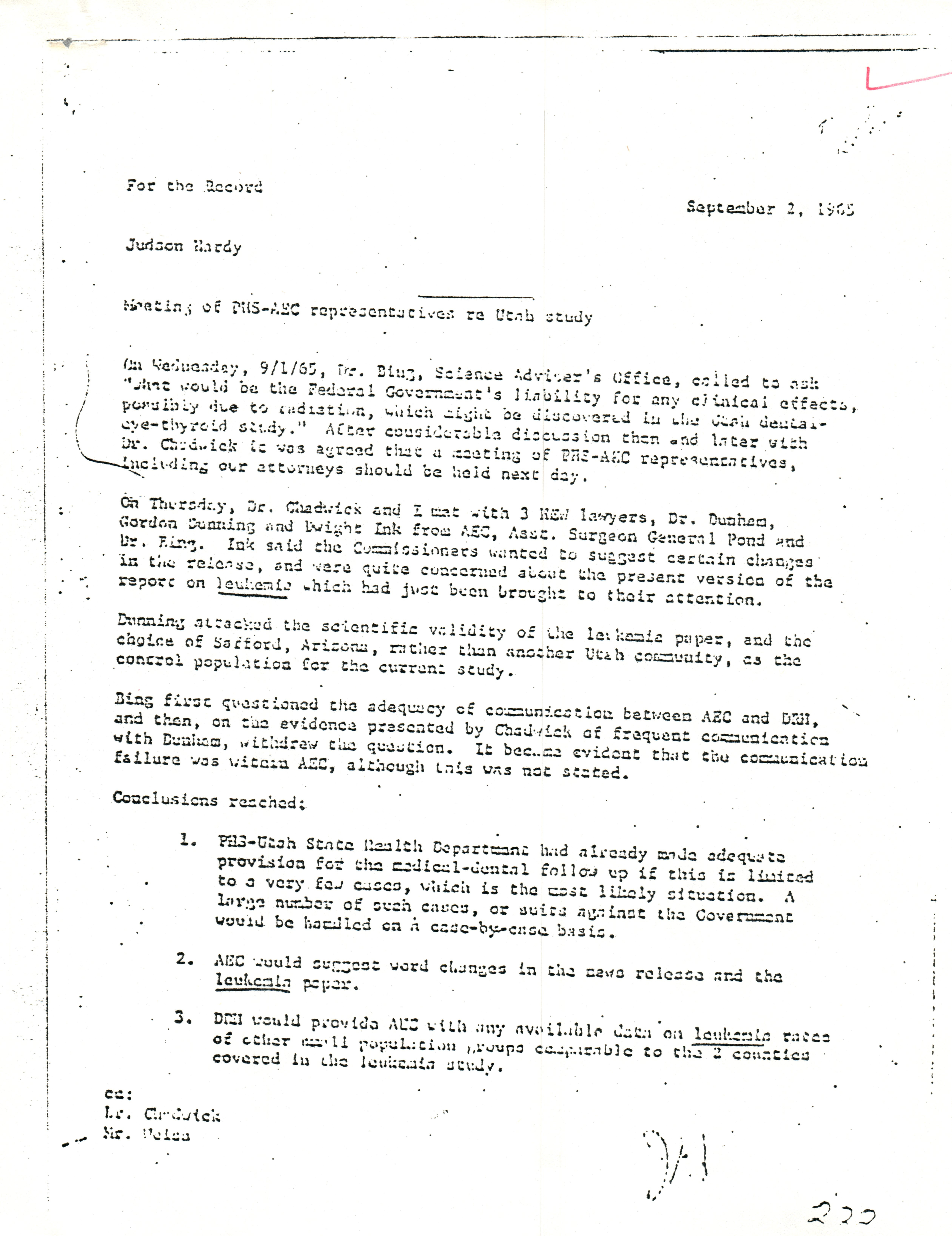 - Annotation: "Meeting of PHS-AEC representatives re Utah study"