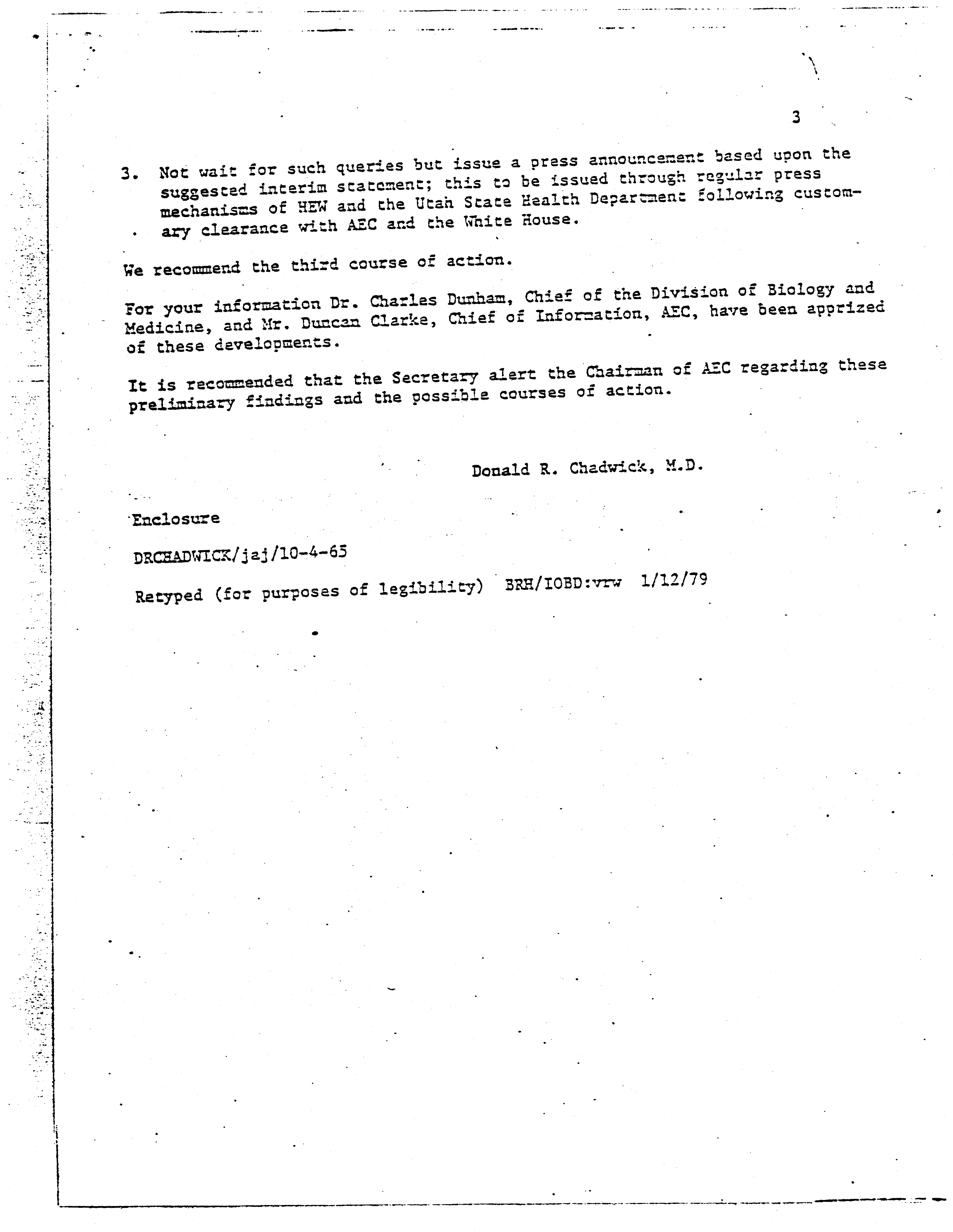 - Utah studies on nuclear radiation effects correspondence, 1965