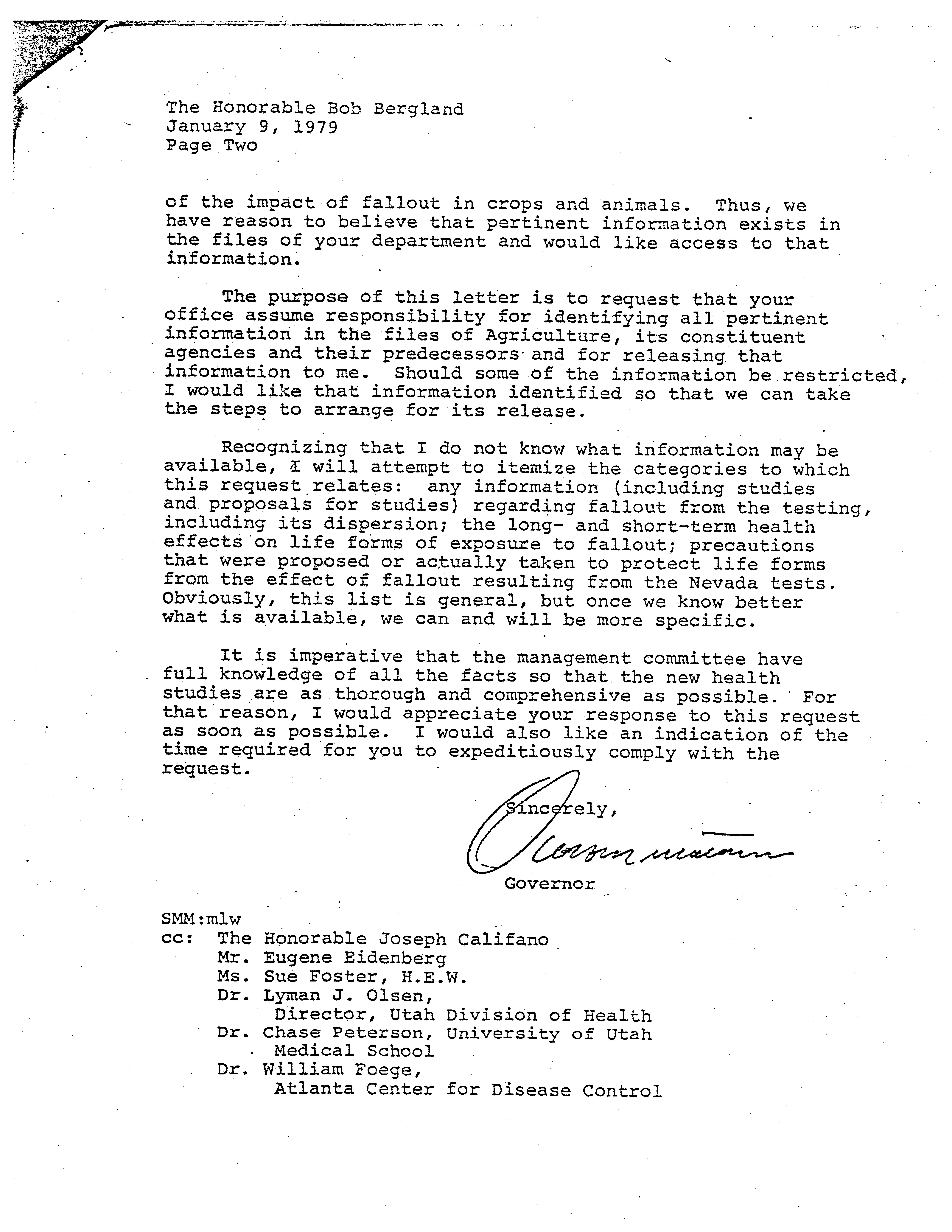 - Scott M. Matheson letter to Bob Bergland, January 9, 1979