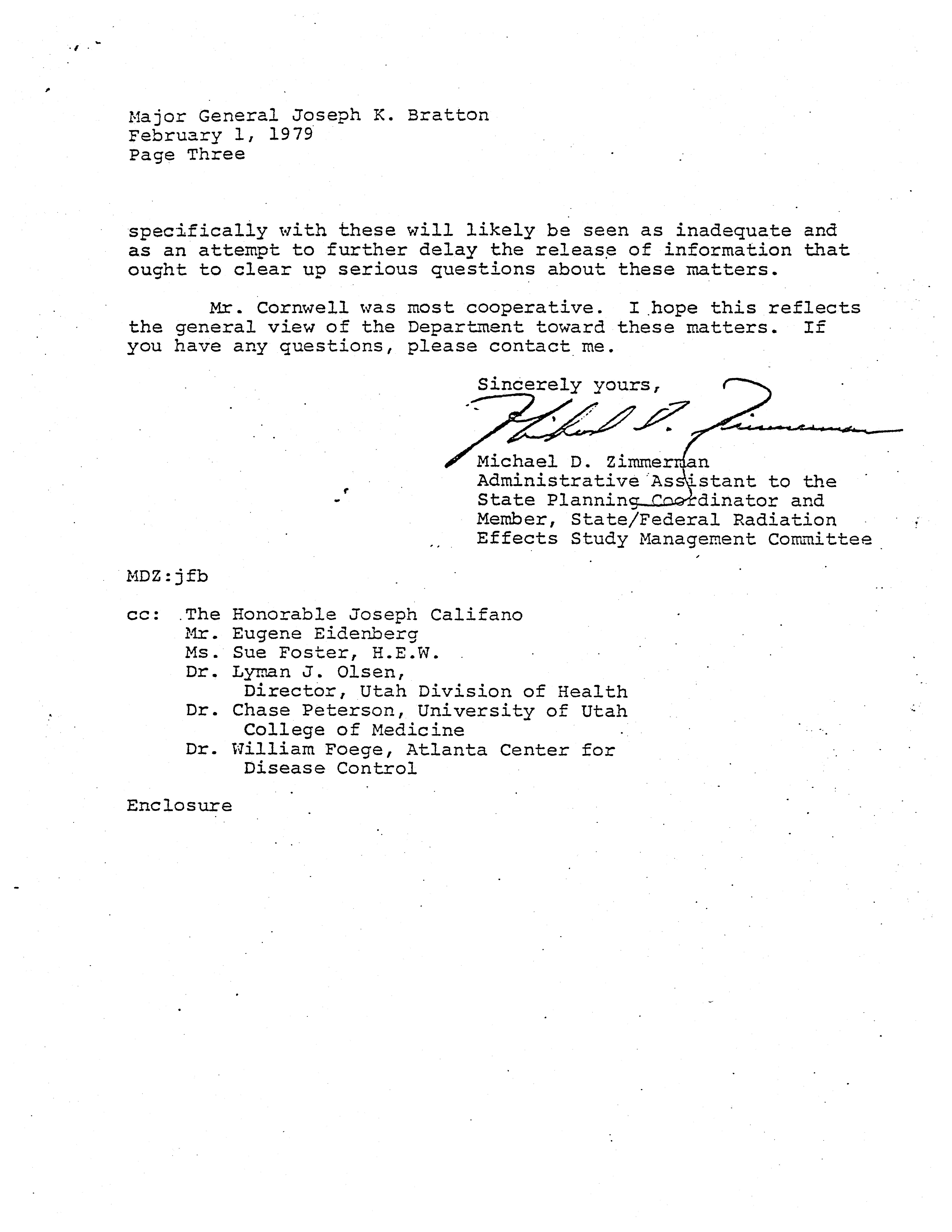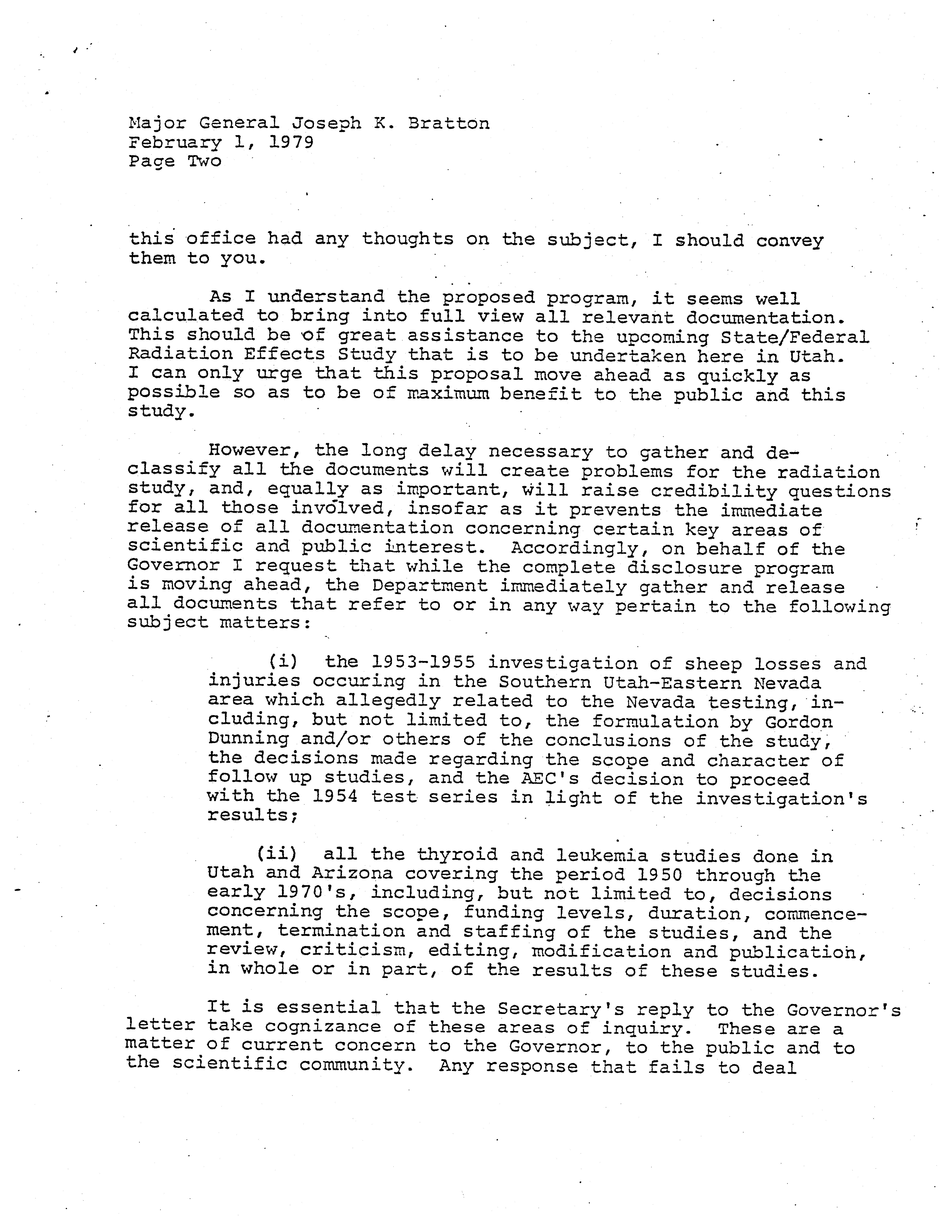 - Scott M. Matheson letter to Joseph K. Bratton, February 2, 1979