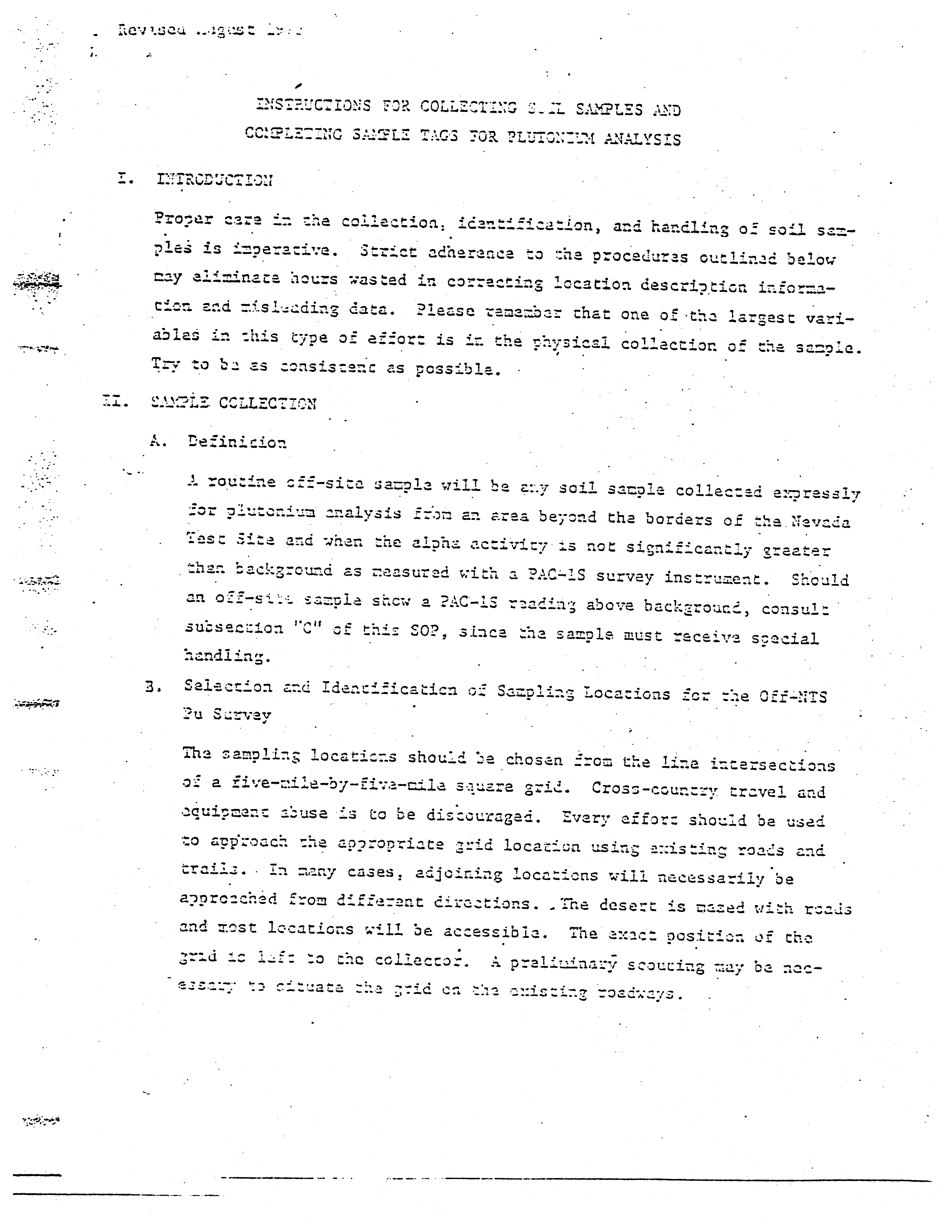 - "Instructions for collecting soil samples and completing sample tags for plutonium analysis", Dwight Ink Collection, Iowa State University Library Digital Collections