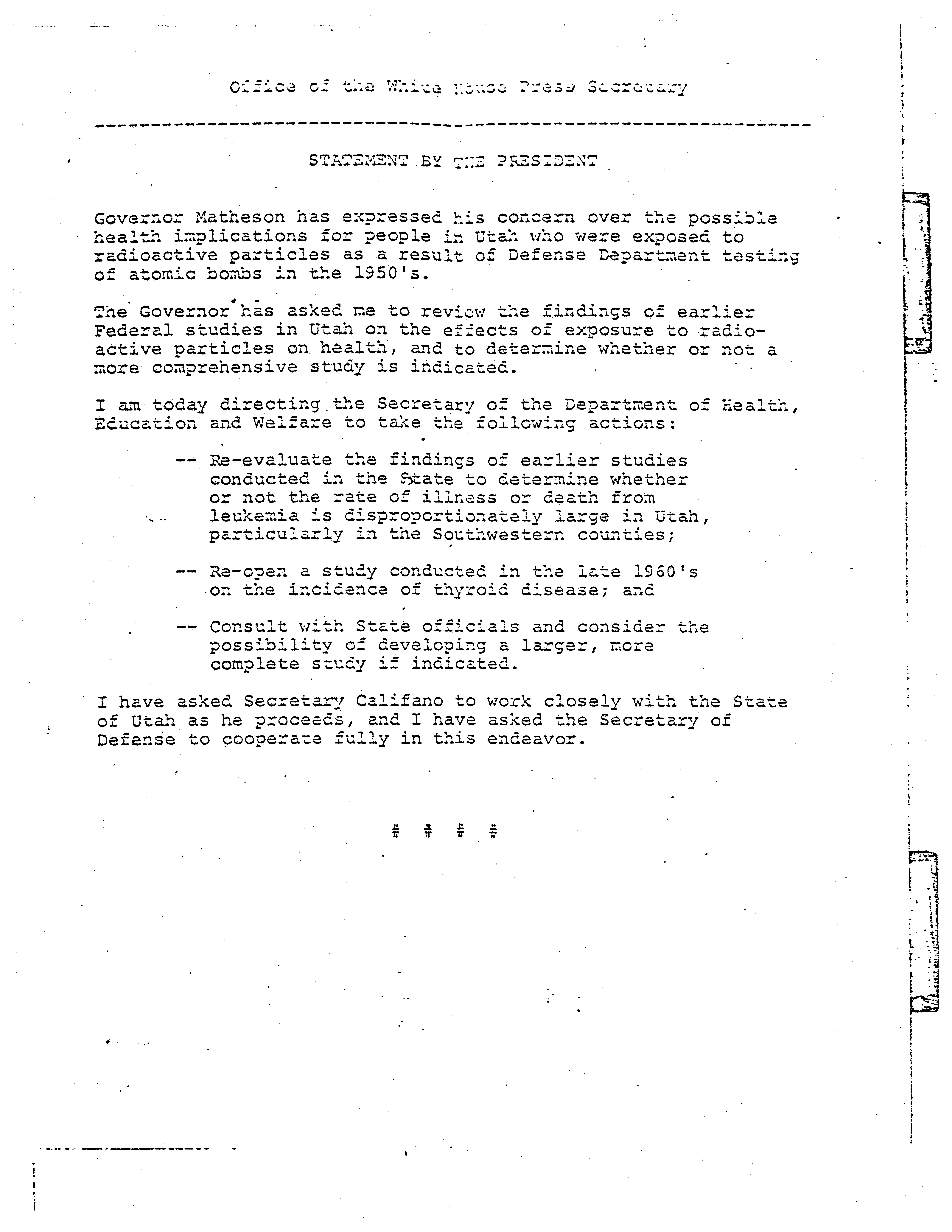- Nuclear fallout's effects on health in Utah: research and correspondence, 1950-1979