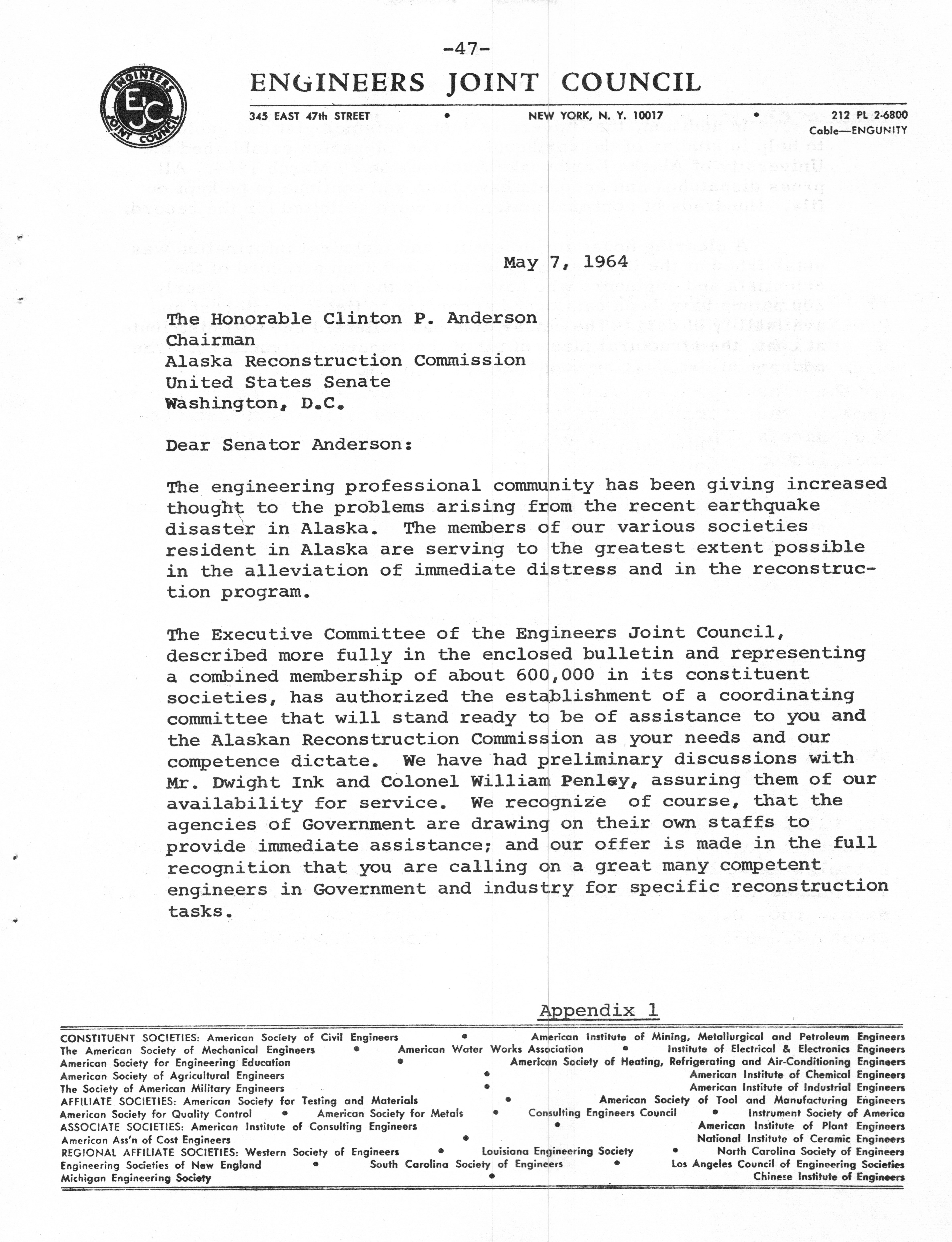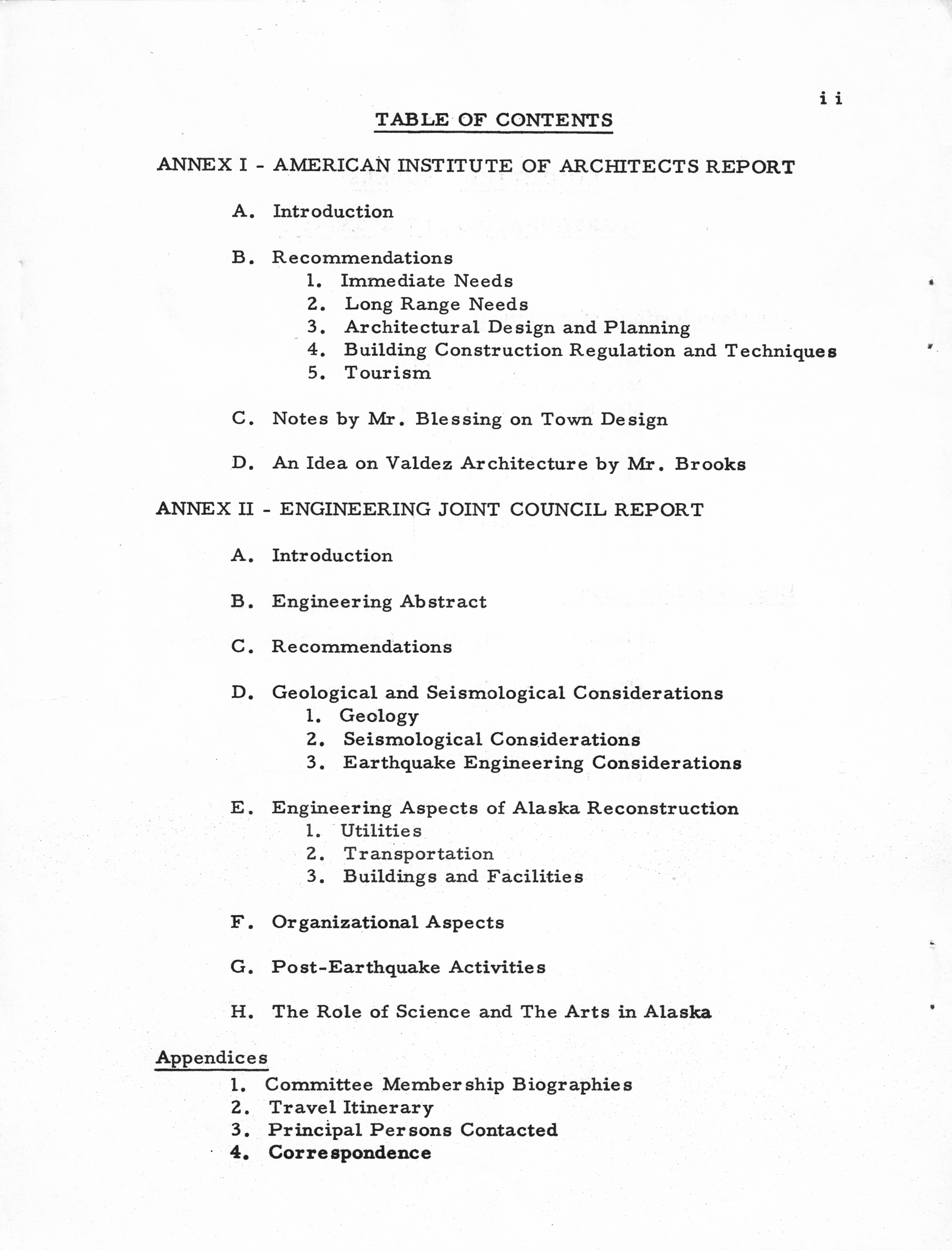 - "Report of the American institute of architects and the engineers joint council committees on the restoration and development of Alaska, June 13, 1964", Dwight Ink Collection, Iowa State University Library Digital Collections