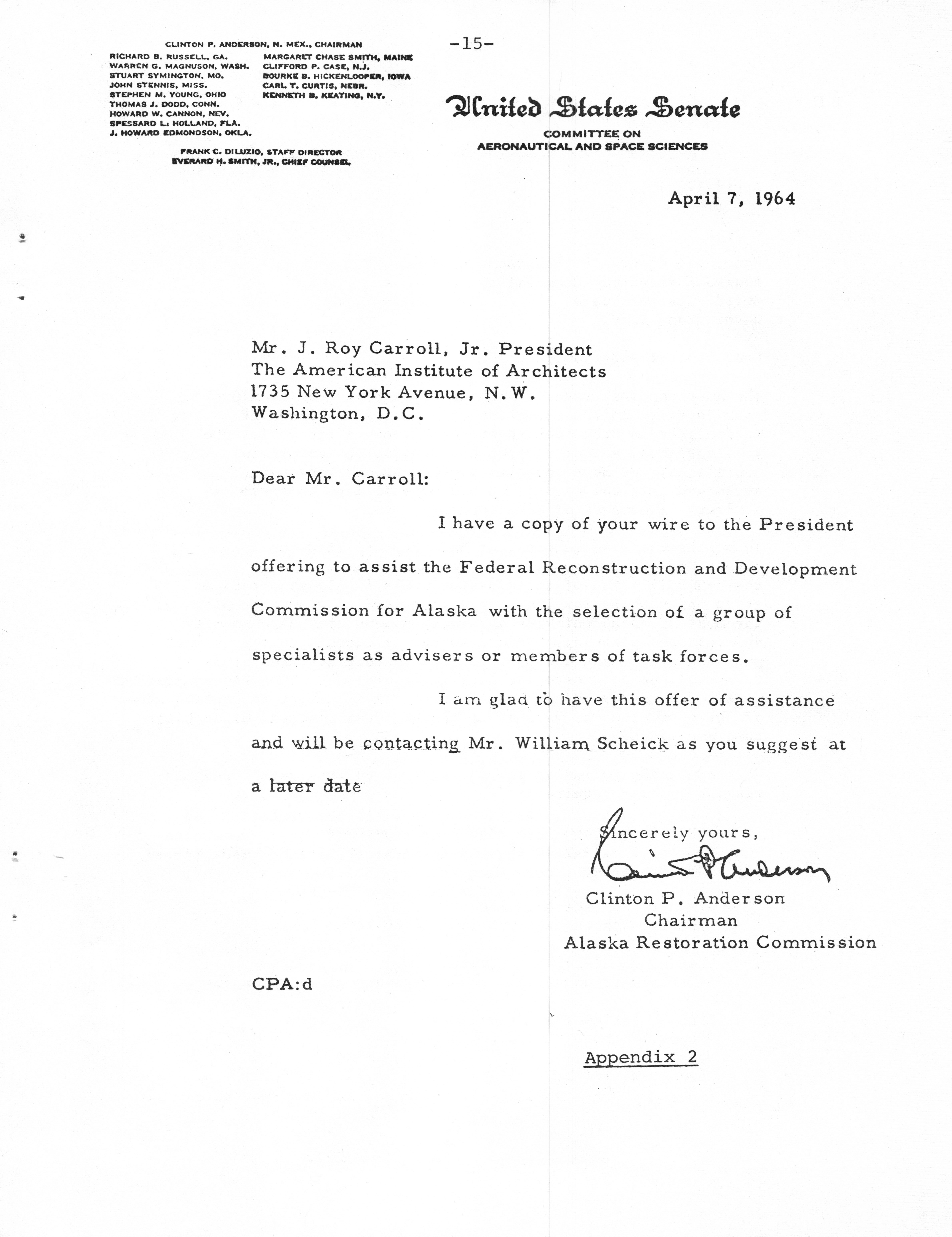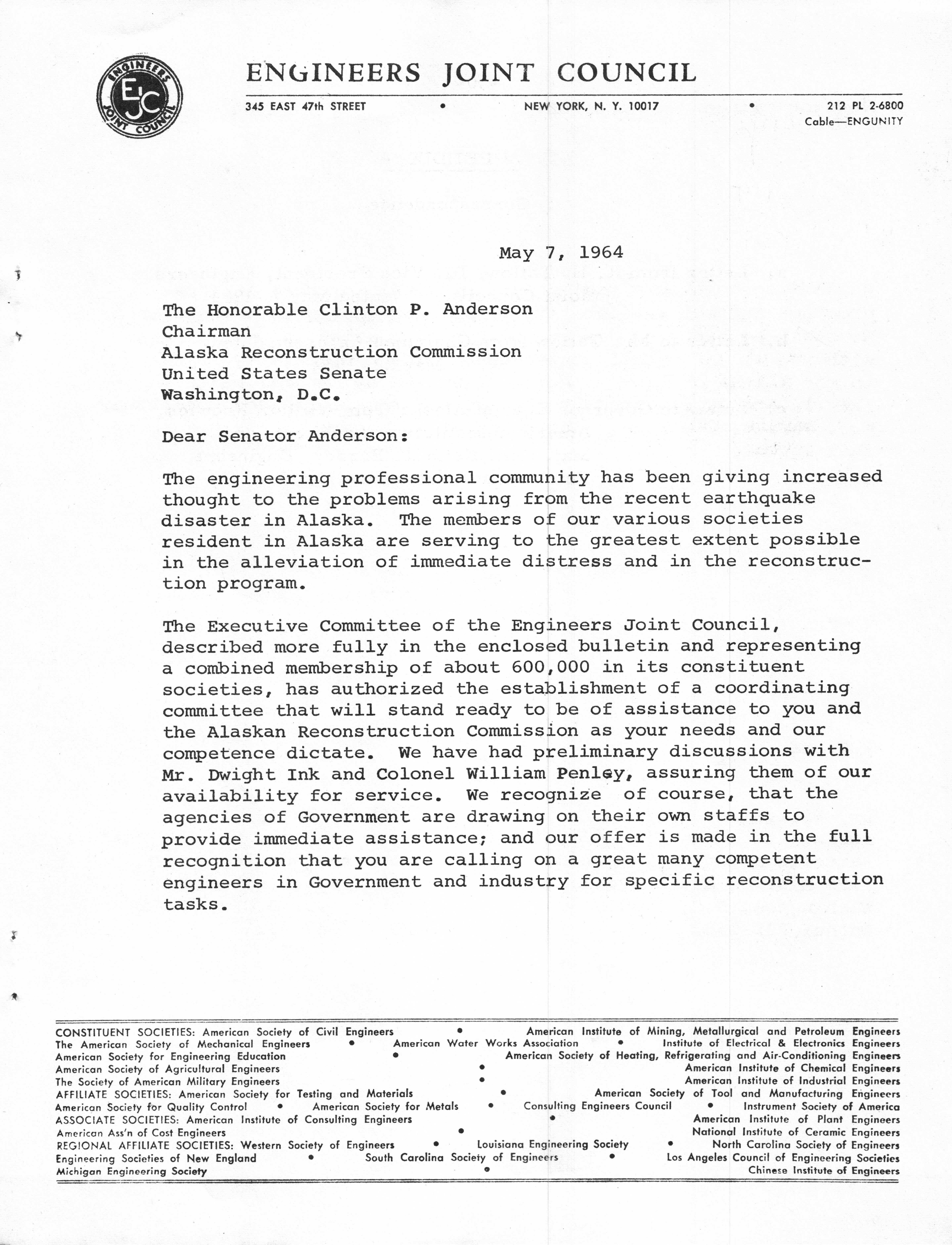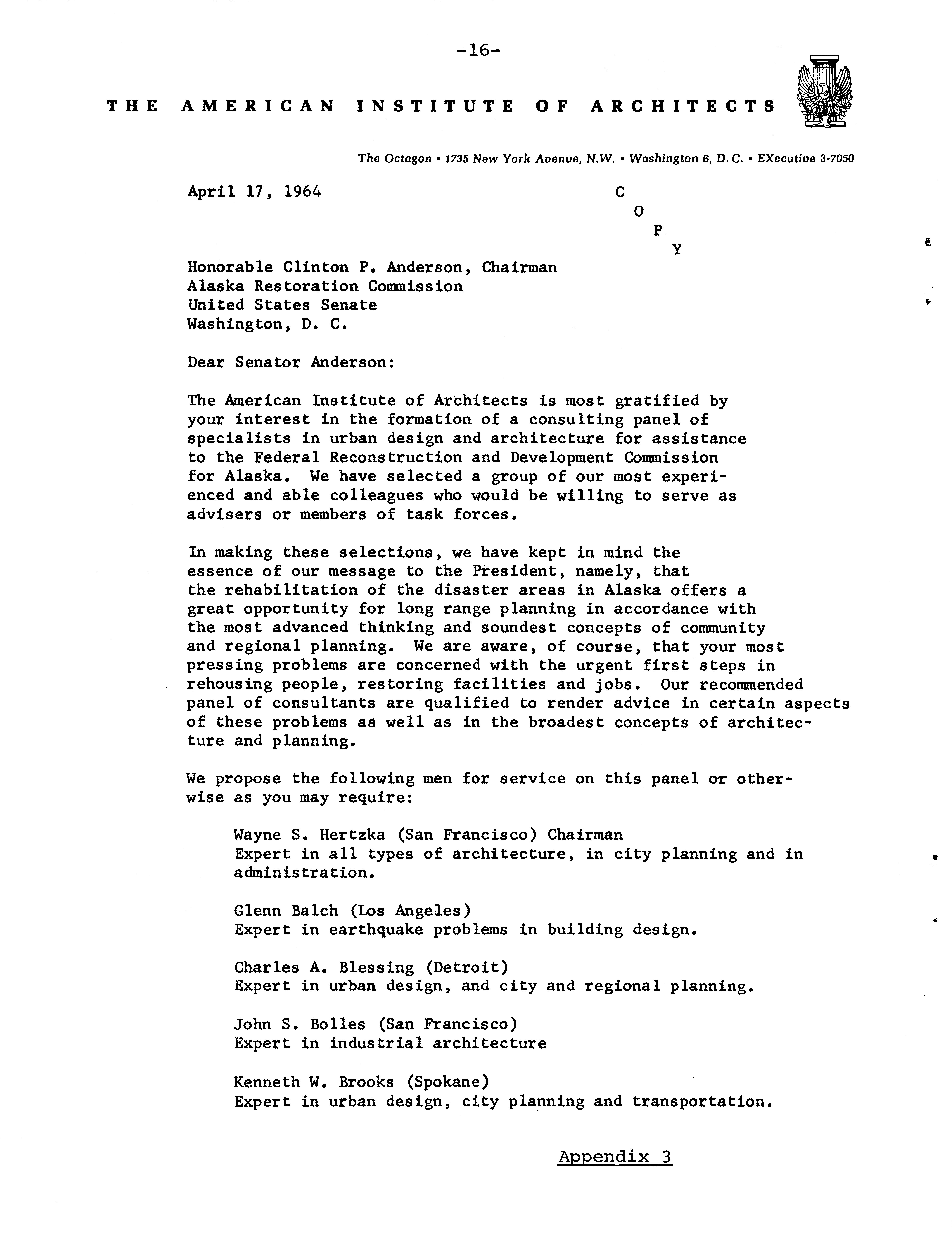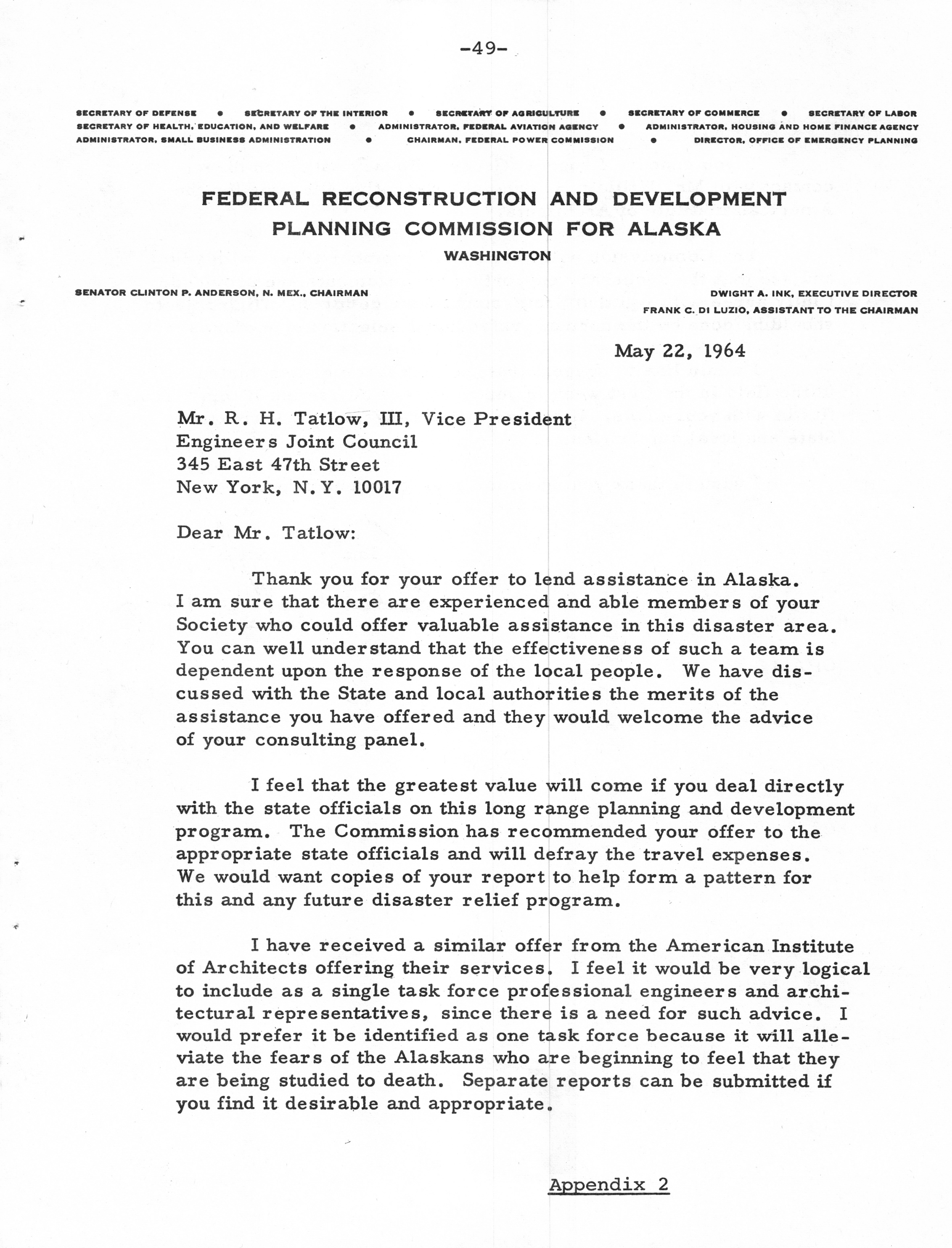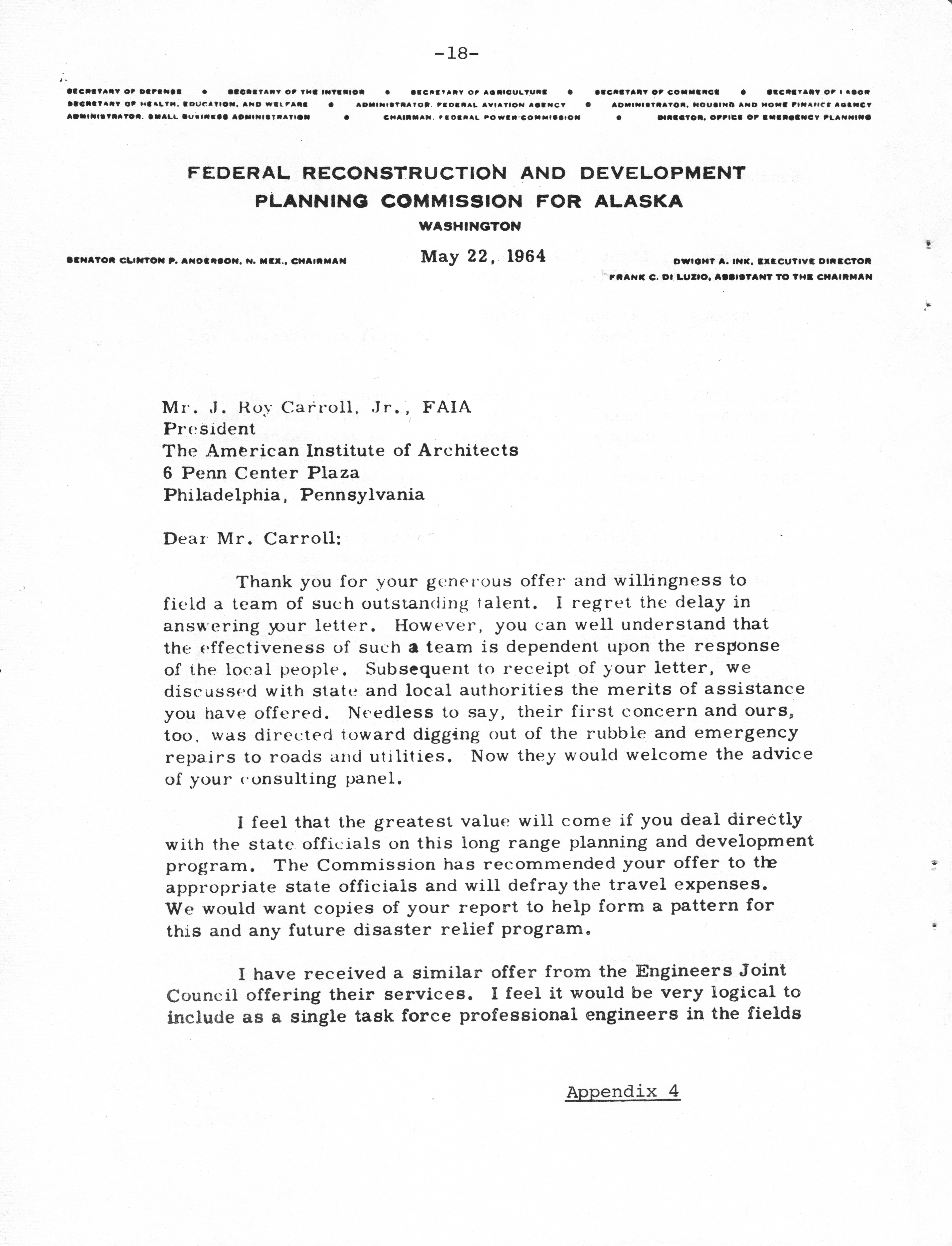 - Report of the American institute of architects and the engineers joint council committees on the restoration and development of Alaska, June 13, 1964