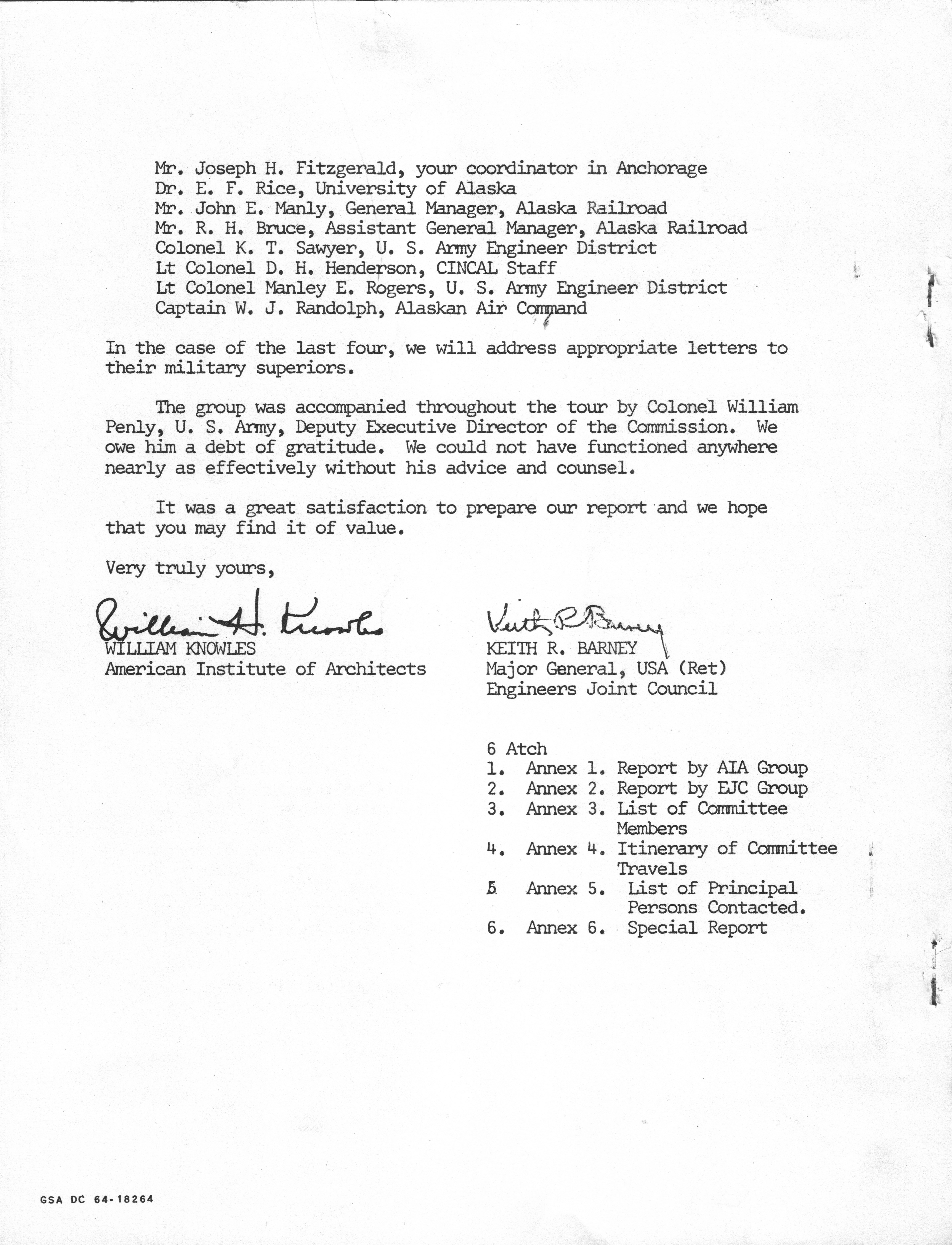 Report of the American institute of architects and the engineers joint council committees on the restoration and development of Alaska, June 13, 1964 Item Info