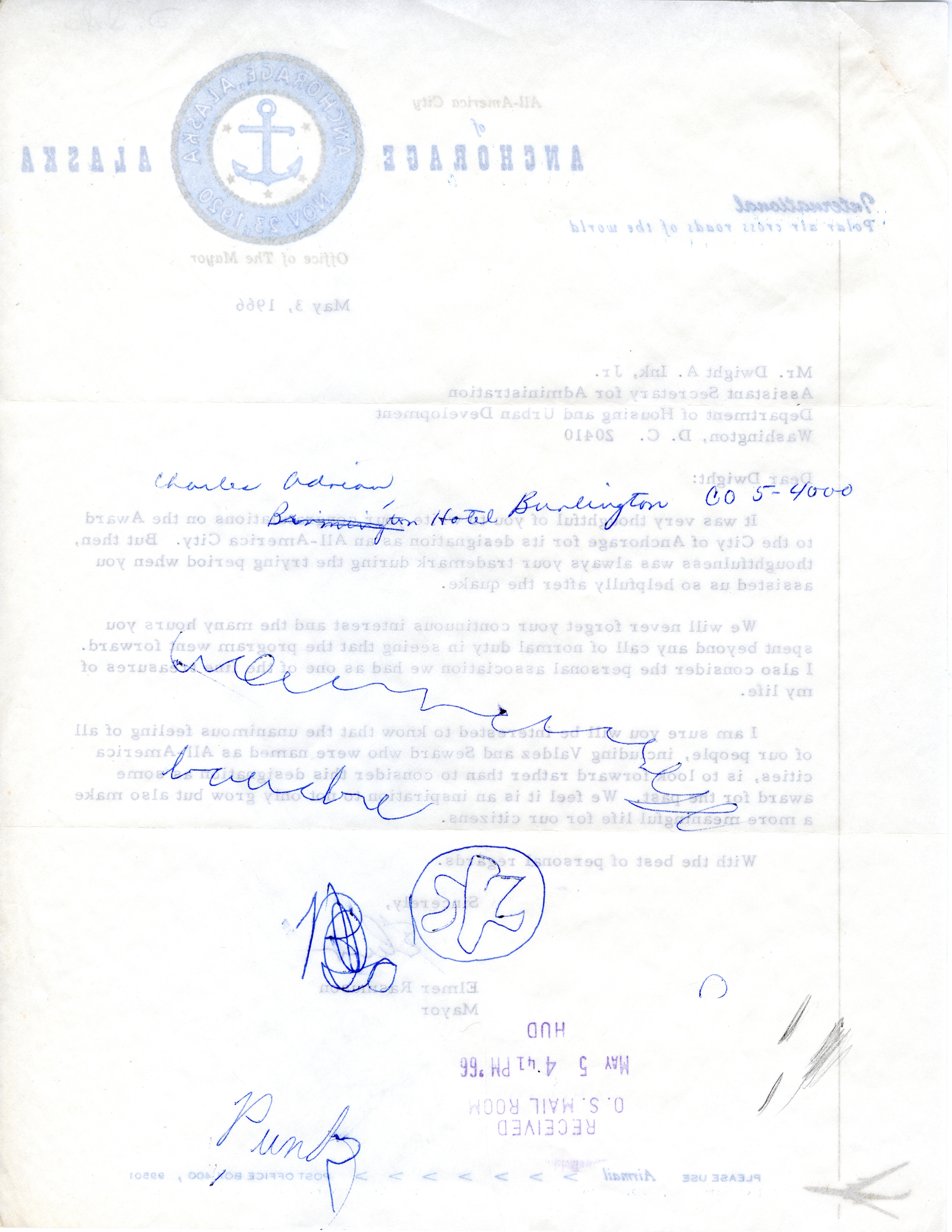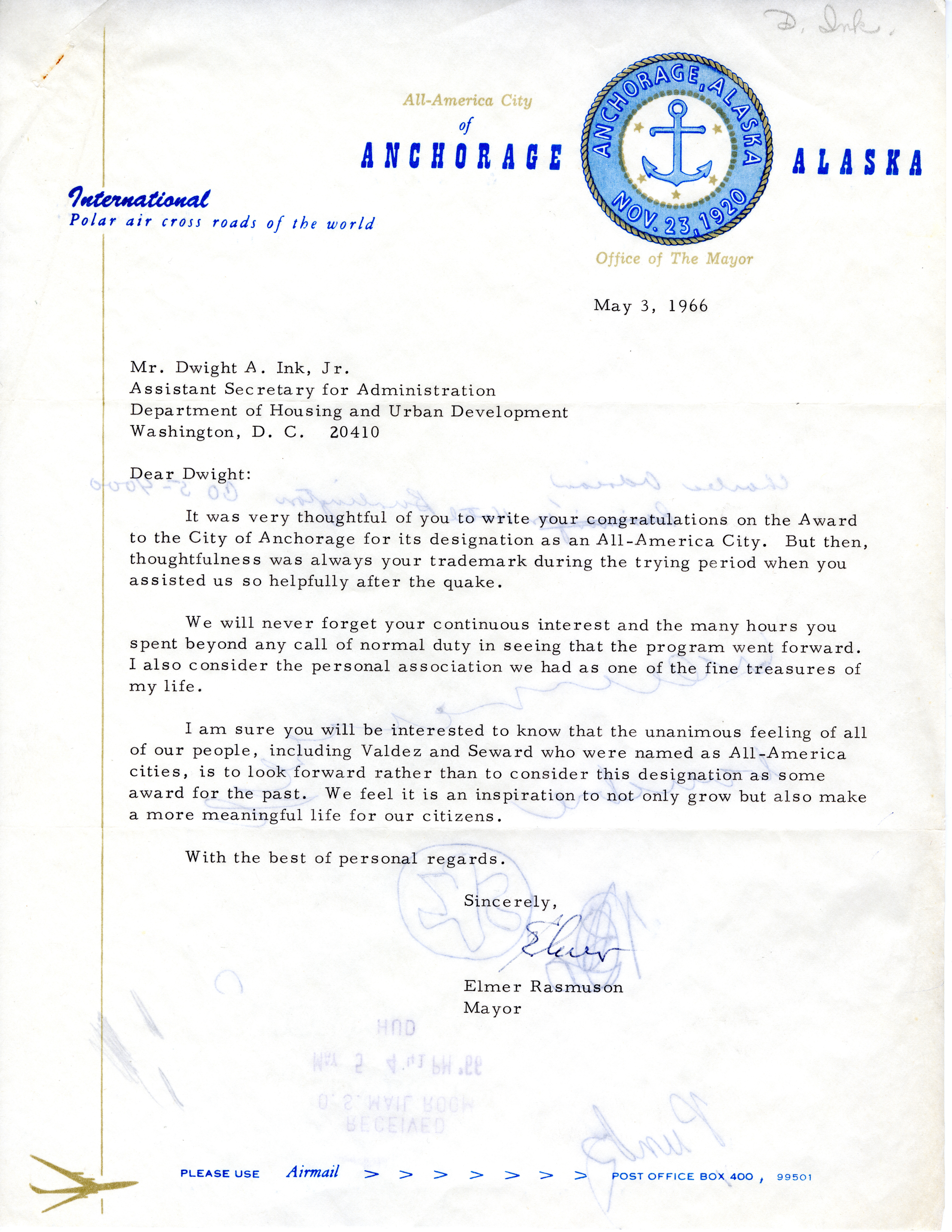 - Elmer Rasmuson letter to Dwight Ink, May 3, 1966